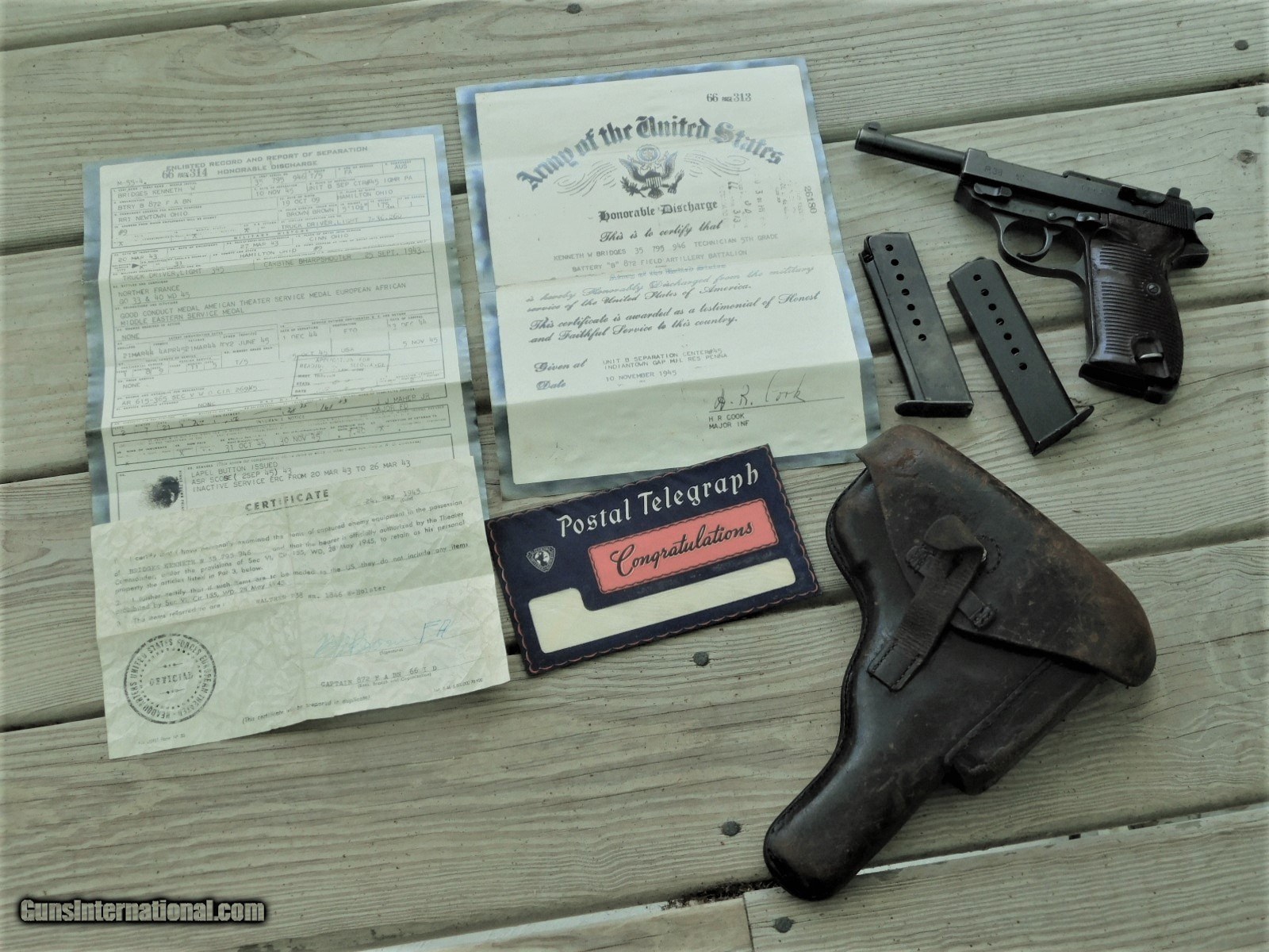 WWII Mauser P38 byf 43 m code with Holster and capture papers and 2 magazines, 66th infantry division