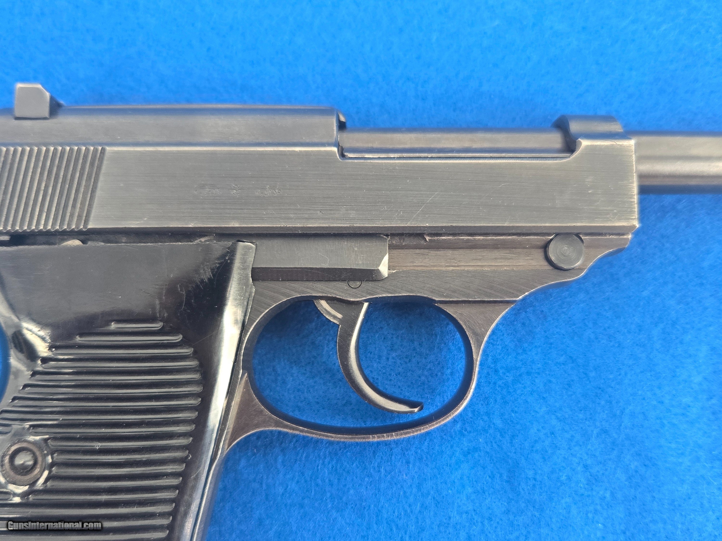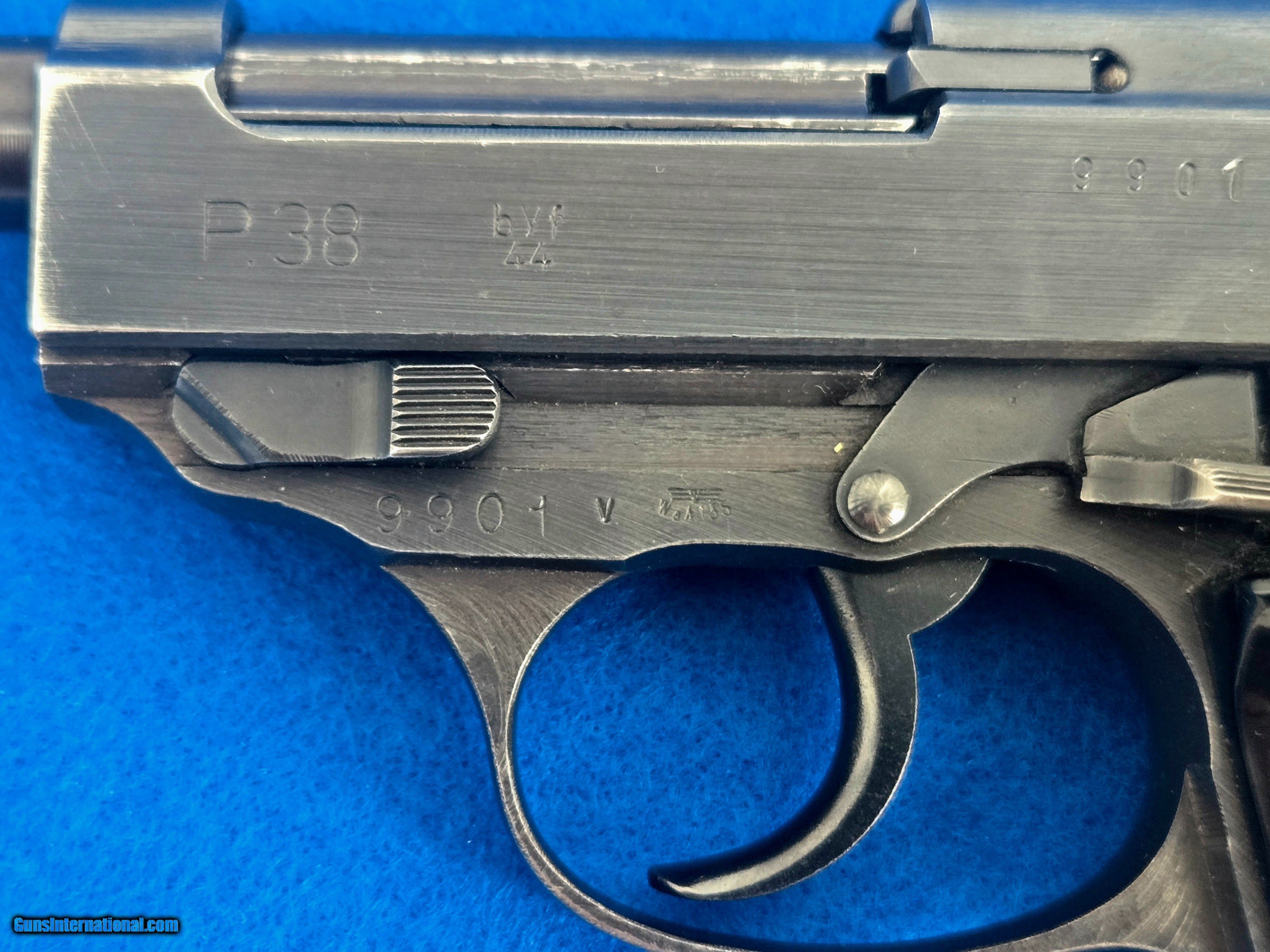 Description: MFG by Mauser in 1944 for NAZI Military during WWII. BYF code was assigned to Mauser-Werke AG to disguise factory's identity from allied intellegence efforts. Adopted in 1938 the P38 proved easier & more efficient to mass produce than the Luger. NAZI era acceptance proofs are on slide and frame in multiple locations. Matching s/n on frame, slide and locking block. Mechanically excellent with shiny bore and one magazine. Grips are black Bakelite and also in excellent condition with no visible cracks. One of the best BYF 44s we have had in years! Curio/Relic: Yes Price: $1,299.00 Shipping: $50.00 Contact Seller |