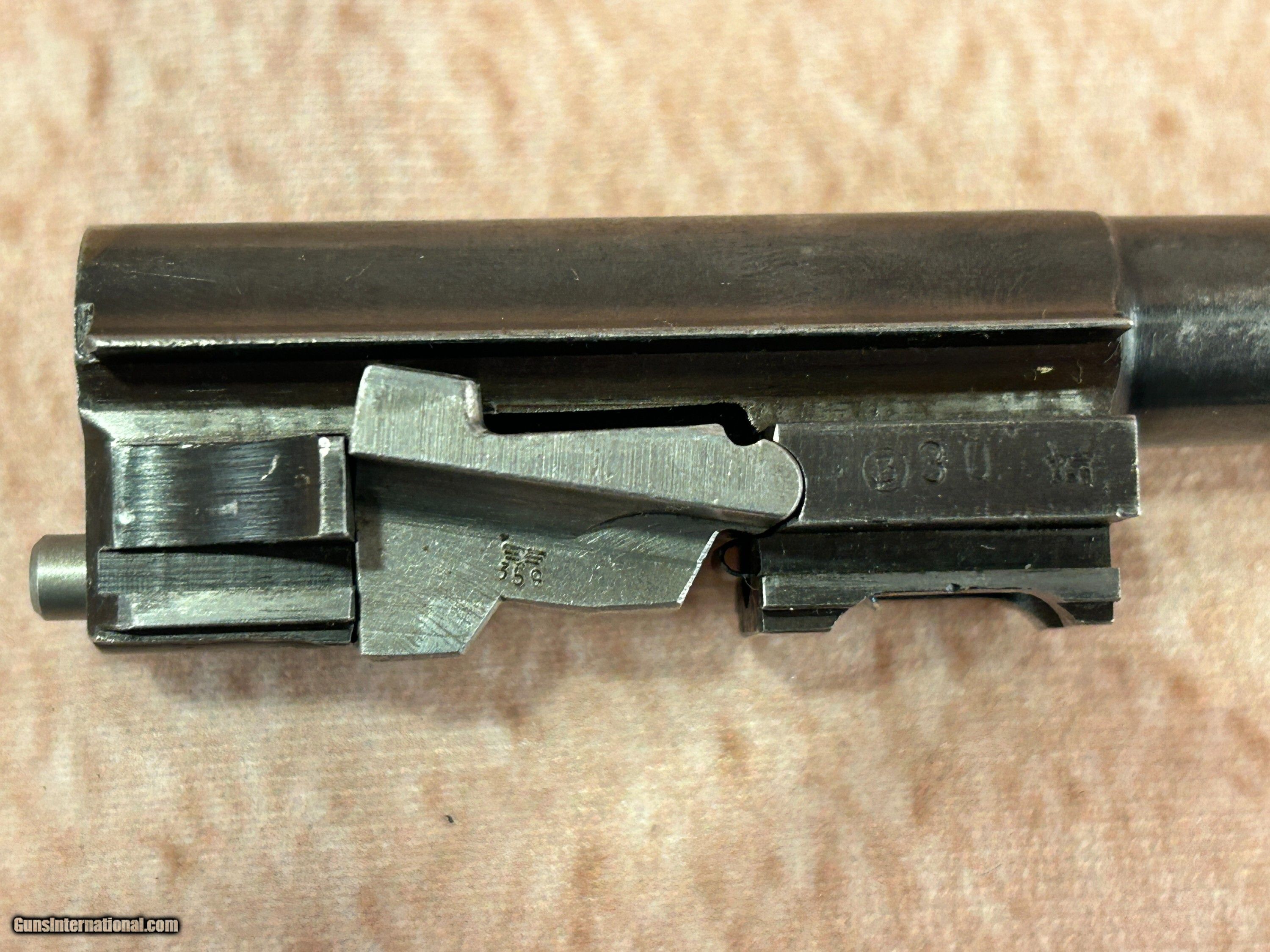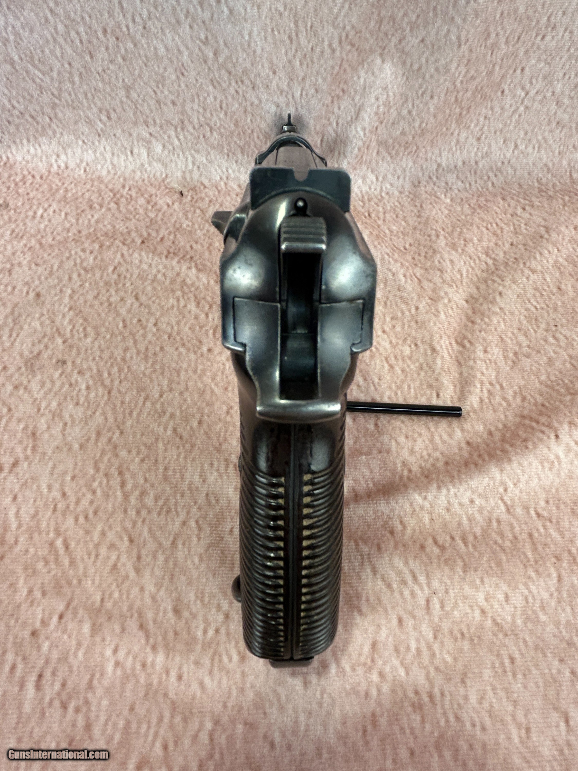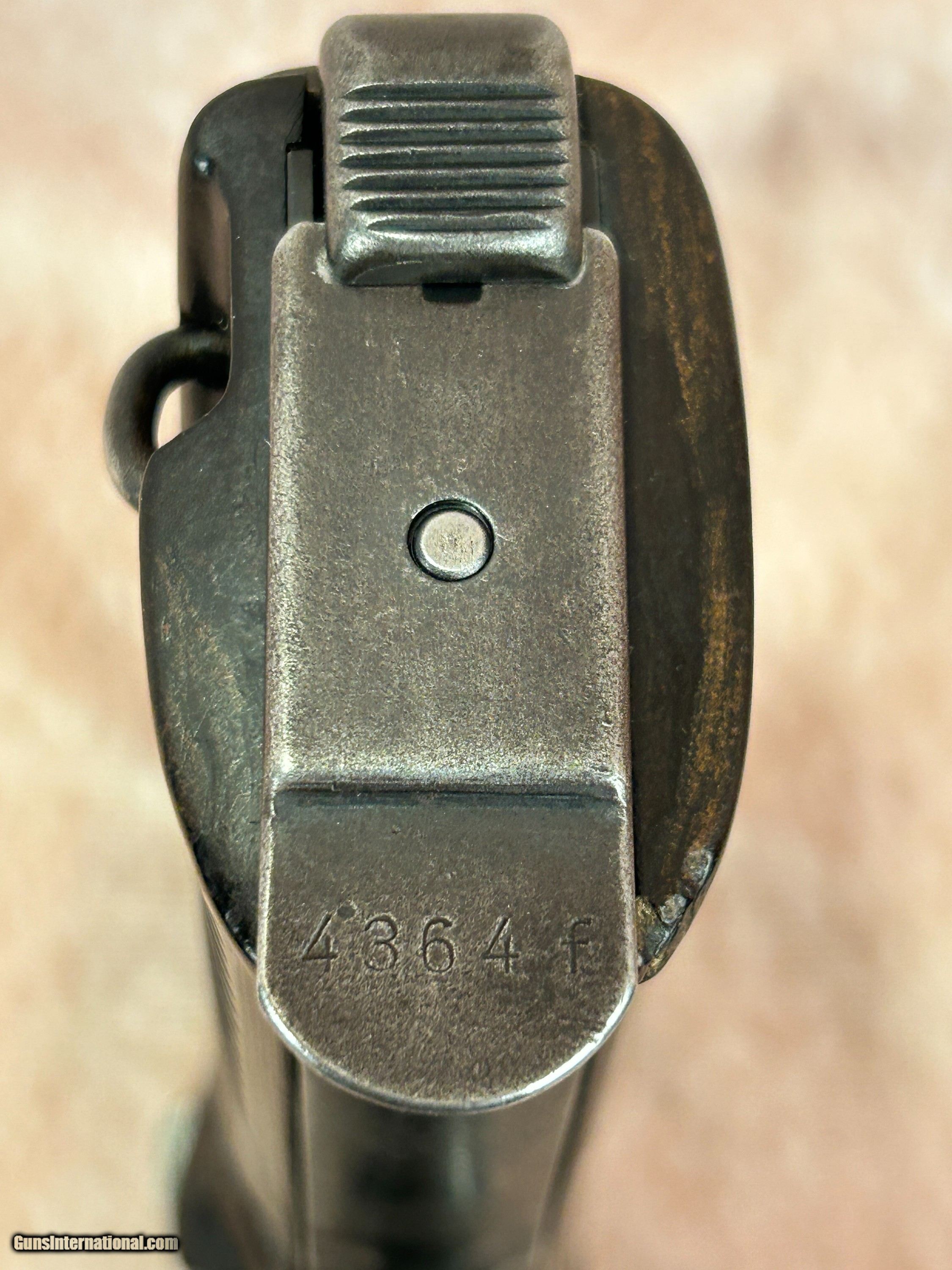 The original finish shows some areas of finish loss, mostly on the slide and muzzle ring. Bore retains good rifling but is somewhat dark with pitting noted. The dark brown Bakelite grips are in good condition with correct markings. Note the U-shaped relief cutout on the inside upper right panel for the open sear. The right panel has a compression crack with an older repair, though barely noticeable. Mechanics are excellent - I did not test fire it but flawlessly cycled a full magazine to test chambering/extraction. Overall, a decent example of a Walther P.38 AC41 “Open Sear” Second Variation w/matching mag for your collection. Ships well-packaged and insured for $40. This item is C&R Eligible. If you have a Curio & Relic License, we can ship this item directly to you (except where prohibited). A photo ID with an address that matches your C&R is required. Thanks for looking! Please read the conditions below… It is the buyer’s responsibility to provide a copy of their FFL’s license. It may be emailed or included with payment. Sales tax collection/remittance (if required) will be the responsibility of your FFL at the point of transfer. I will provide a sales receipt upon request. I am registered with the state of California for approved gun transfers. Please check with your FFL if this firearm is approved before purchasing. All firearms have a 3-day, no firing inspection period from the date the item is received at your FFL Dealer or C&R. The firearm cannot leave the FFL premises prior to inspection/acceptance. The date received is the date the item is shown as delivered by the tracking information provided by the shipping entity. Returns are only accepted for items that arrive at the transfer agent in a condition other than advertised in the listing. Returns must be left with the transfer agent. Firearms returned for other than damage or misrepresentation will have all shipping/ fees and a restocking fee of 15% subtracted from the refund. Any damage incurred in transit is the responsibility of the shipping agent (USPS, UPS, etc.). I will assist with any claim, but any damages will be paid by the shipping agent. Disclaimers - Used guns, unless stated otherwise, are believed to be functional. However, they are not test fired nor evaluated by a gunsmith. All firearms and ammunition sold by Warthog Arms are considered collector’s items only and are under no circumstances warrantied as to function or safety. No warranty is expressed or implied by the contents of any individual item listing or description. Buyer agrees to release seller and/or consignor from all liability, whether criminal or civil, arising from the purchase, ownership, possession, use or misuse of this item. All firearms should be inspected by a certified gunsmith prior to loading or firing. Always wear eye and ear protection when shooting firearms. Treat every firearm as if it is loaded. Safety is no accident. Curio/Relic: Yes Handgun Caliber: 9x19mm Parabellum (9mm Luger, 9x19mm NATO) Manufacturer: Walther Model: P.38 Serial Number: 4364f Barrel Length: 5 Condition: Very Good Bore Condition: Good Grips: Dark Brown Bakelite Price: $2,095.00 Contact Seller |