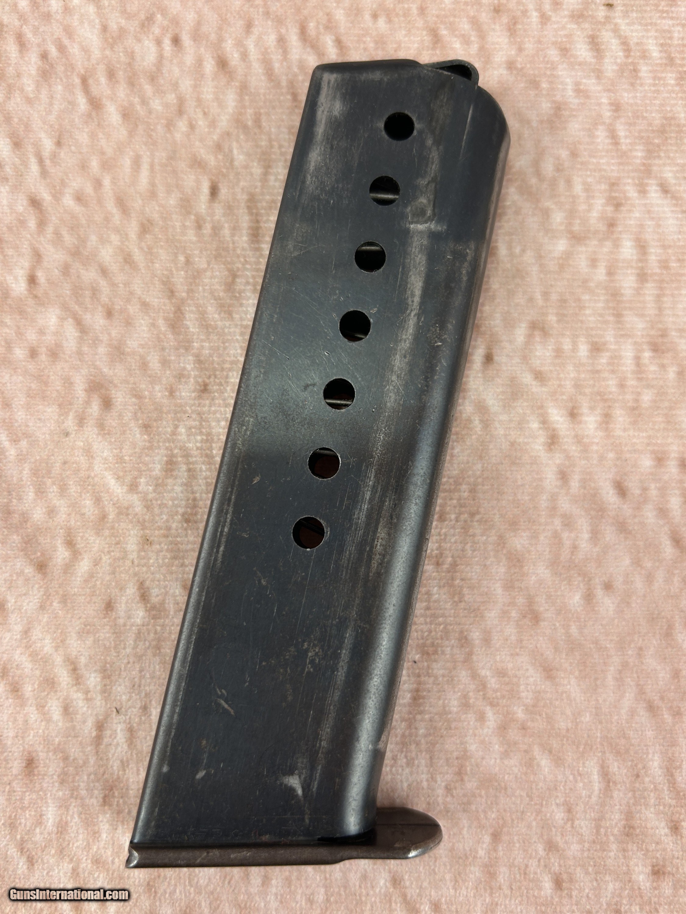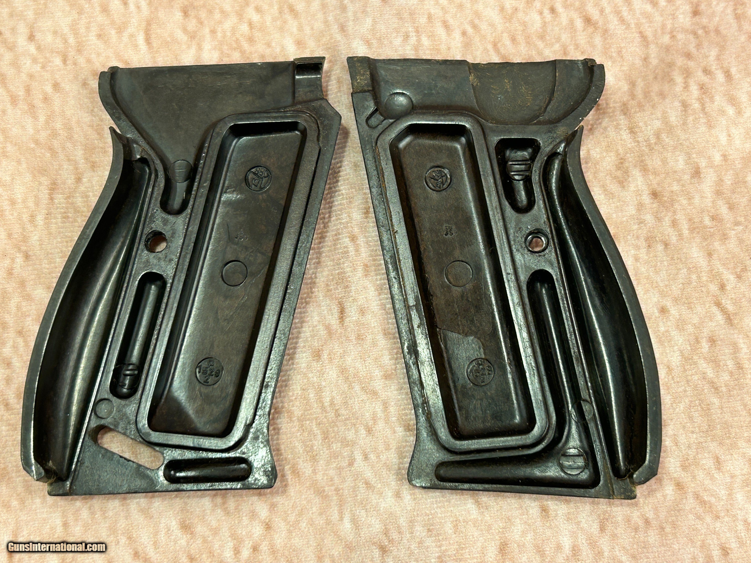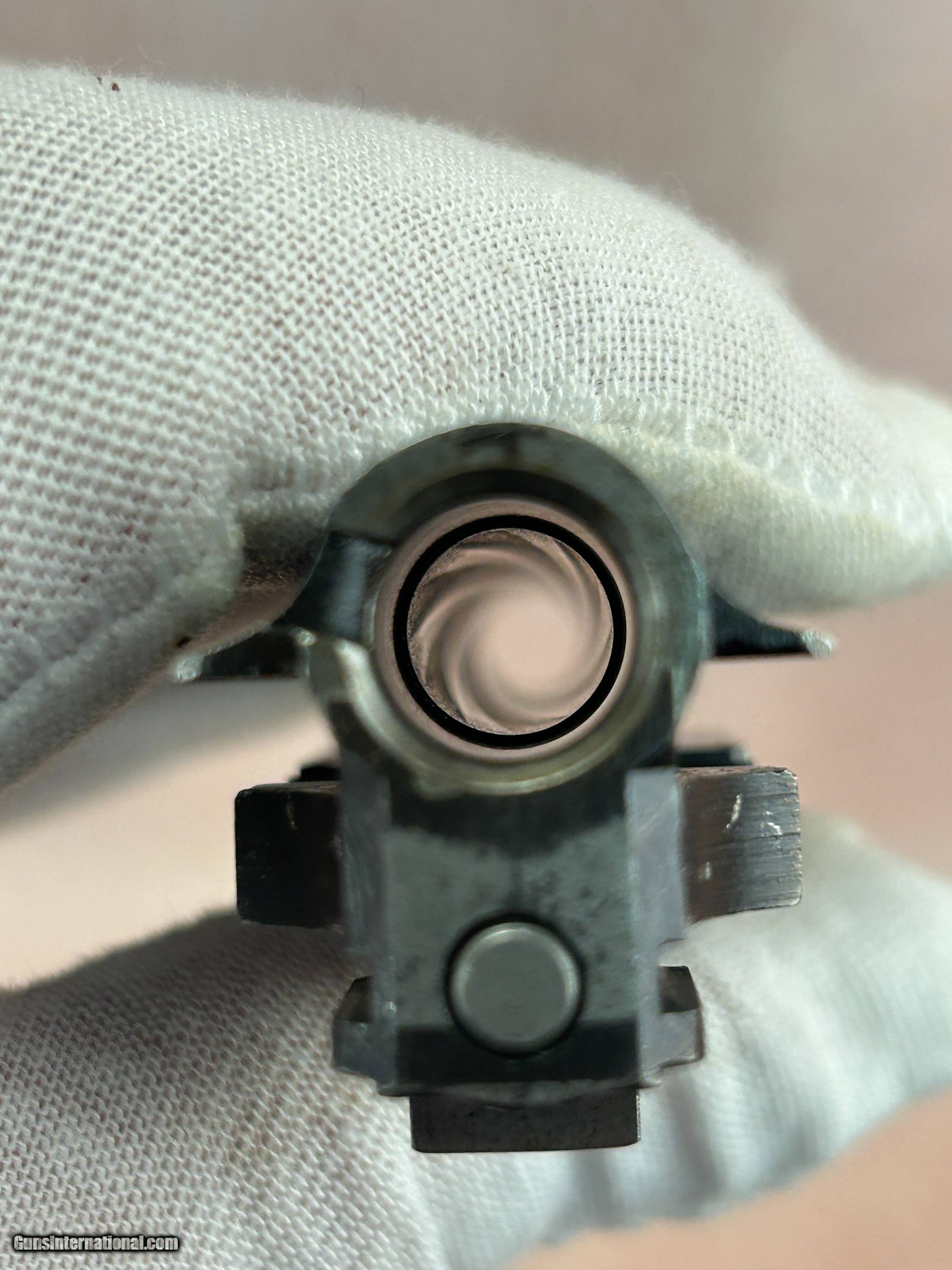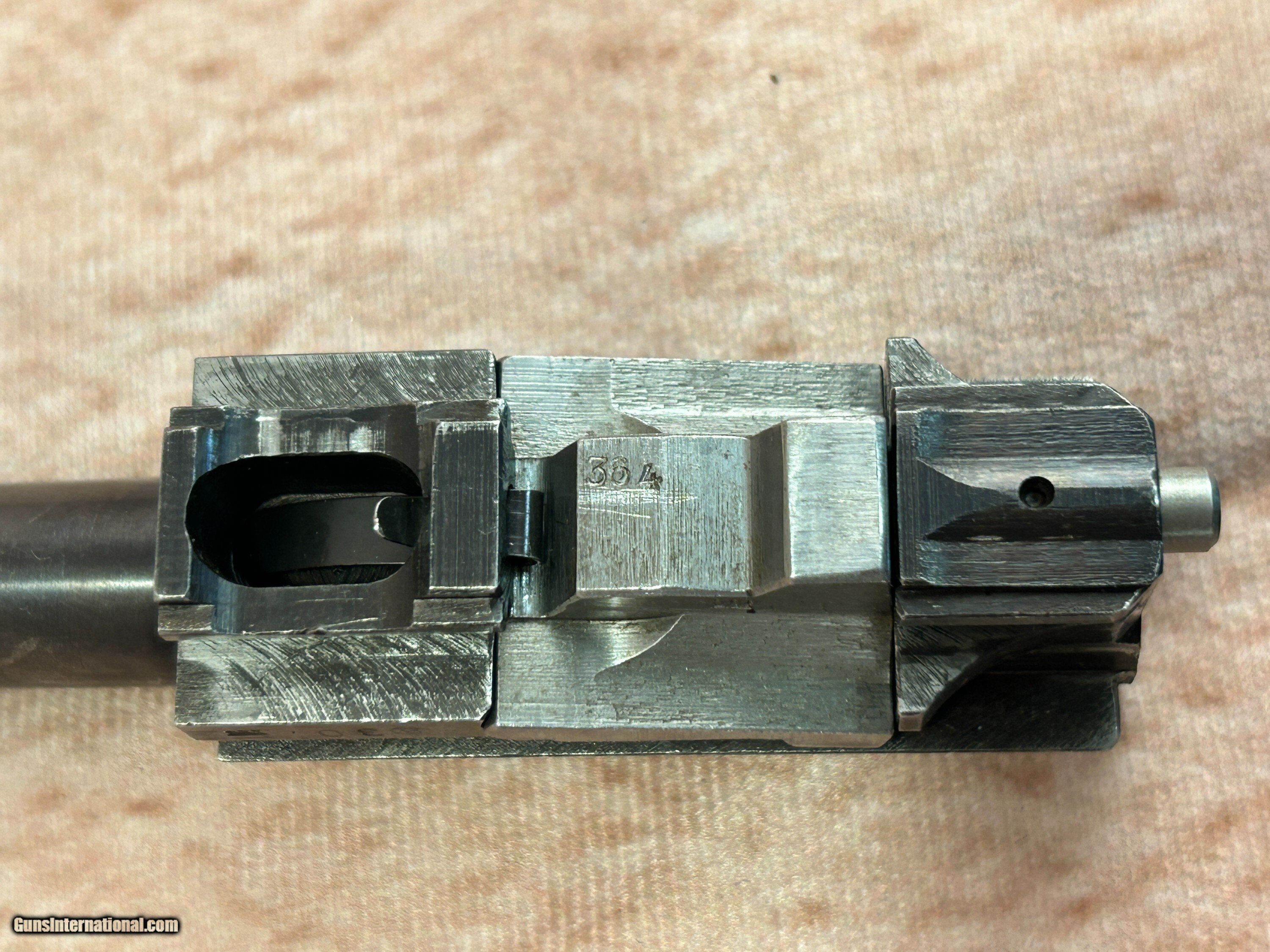 The original finish shows some areas of finish loss, mostly on the slide and muzzle ring. Bore retains good rifling but is somewhat dark with pitting noted. The dark brown Bakelite grips are in good condition with correct markings. Note the U-shaped relief cutout on the inside upper right panel for the open sear. The right panel has a compression crack with an older repair, though barely noticeable. Mechanics are excellent - I did not test fire it but flawlessly cycled a full magazine to test chambering/extraction. Overall, a decent example of a Walther P.38 AC41 “Open Sear” Second Variation w/matching mag for your collection. Ships well-packaged and insured for $40. This item is C&R Eligible. If you have a Curio & Relic License, we can ship this item directly to you (except where prohibited). A photo ID with an address that matches your C&R is required. Thanks for looking! Please read the conditions below… It is the buyer’s responsibility to provide a copy of their FFL’s license. It may be emailed or included with payment. Sales tax collection/remittance (if required) will be the responsibility of your FFL at the point of transfer. I will provide a sales receipt upon request. I am registered with the state of California for approved gun transfers. Please check with your FFL if this firearm is approved before purchasing. All firearms have a 3-day, no firing inspection period from the date the item is received at your FFL Dealer or C&R. The firearm cannot leave the FFL premises prior to inspection/acceptance. The date received is the date the item is shown as delivered by the tracking information provided by the shipping entity. Returns are only accepted for items that arrive at the transfer agent in a condition other than advertised in the listing. Returns must be left with the transfer agent. Firearms returned for other than damage or misrepresentation will have all shipping/ fees and a restocking fee of 15% subtracted from the refund. Any damage incurred in transit is the responsibility of the shipping agent (USPS, UPS, etc.). I will assist with any claim, but any damages will be paid by the shipping agent. Disclaimers - Used guns, unless stated otherwise, are believed to be functional. However, they are not test fired nor evaluated by a gunsmith. All firearms and ammunition sold by Warthog Arms are considered collector’s items only and are under no circumstances warrantied as to function or safety. No warranty is expressed or implied by the contents of any individual item listing or description. Buyer agrees to release seller and/or consignor from all liability, whether criminal or civil, arising from the purchase, ownership, possession, use or misuse of this item. All firearms should be inspected by a certified gunsmith prior to loading or firing. Always wear eye and ear protection when shooting firearms. Treat every firearm as if it is loaded. Safety is no accident. Curio/Relic: Yes Handgun Caliber: 9x19mm Parabellum (9mm Luger, 9x19mm NATO) Manufacturer: Walther Model: P.38 Serial Number: 4364f Barrel Length: 5 Condition: Very Good Bore Condition: Good Grips: Dark Brown Bakelite Price: $2,095.00 Contact Seller |