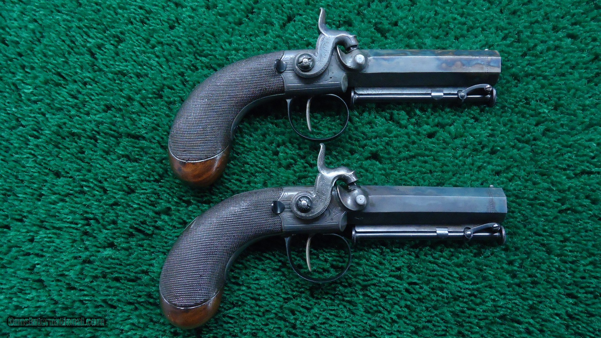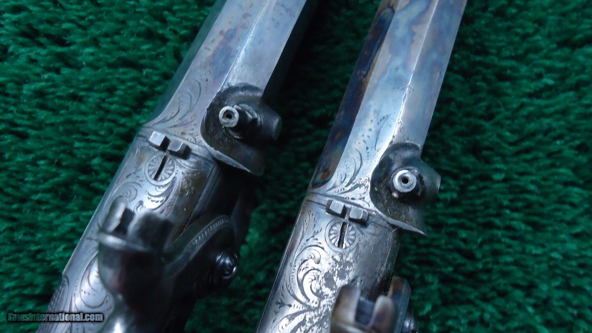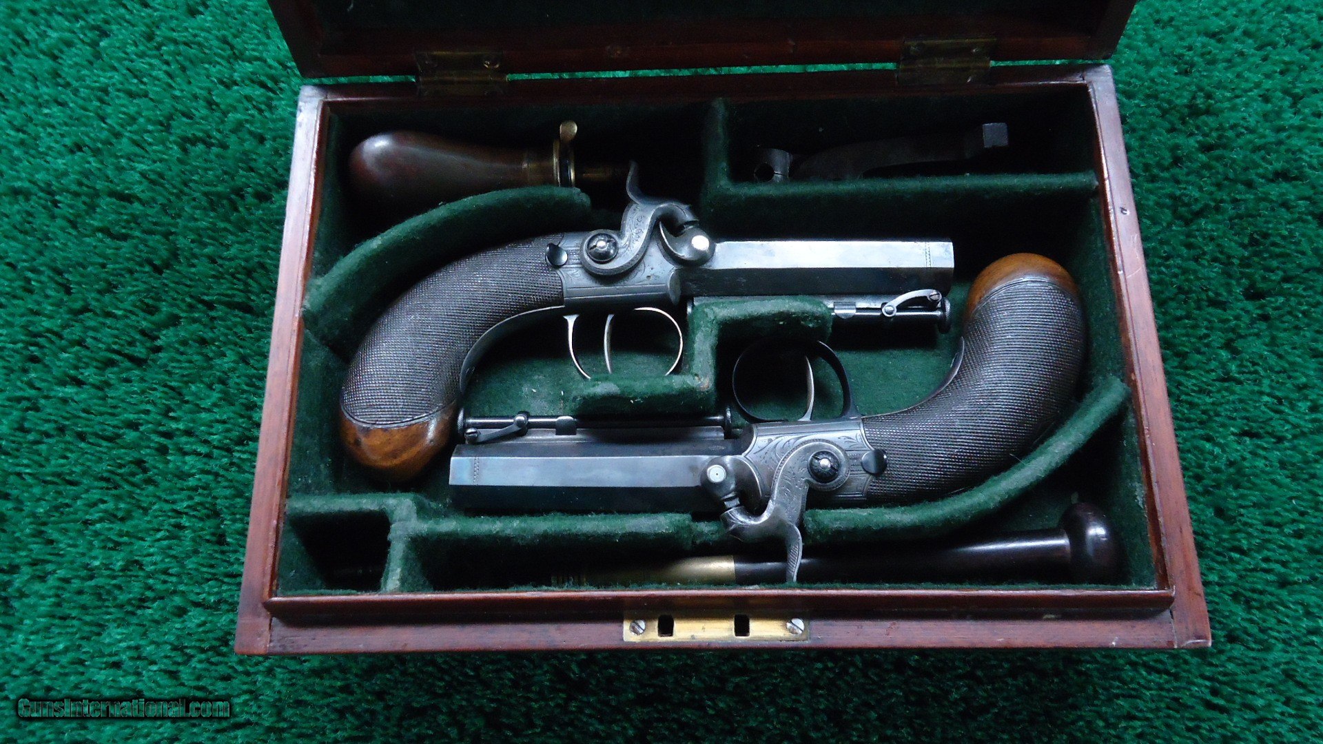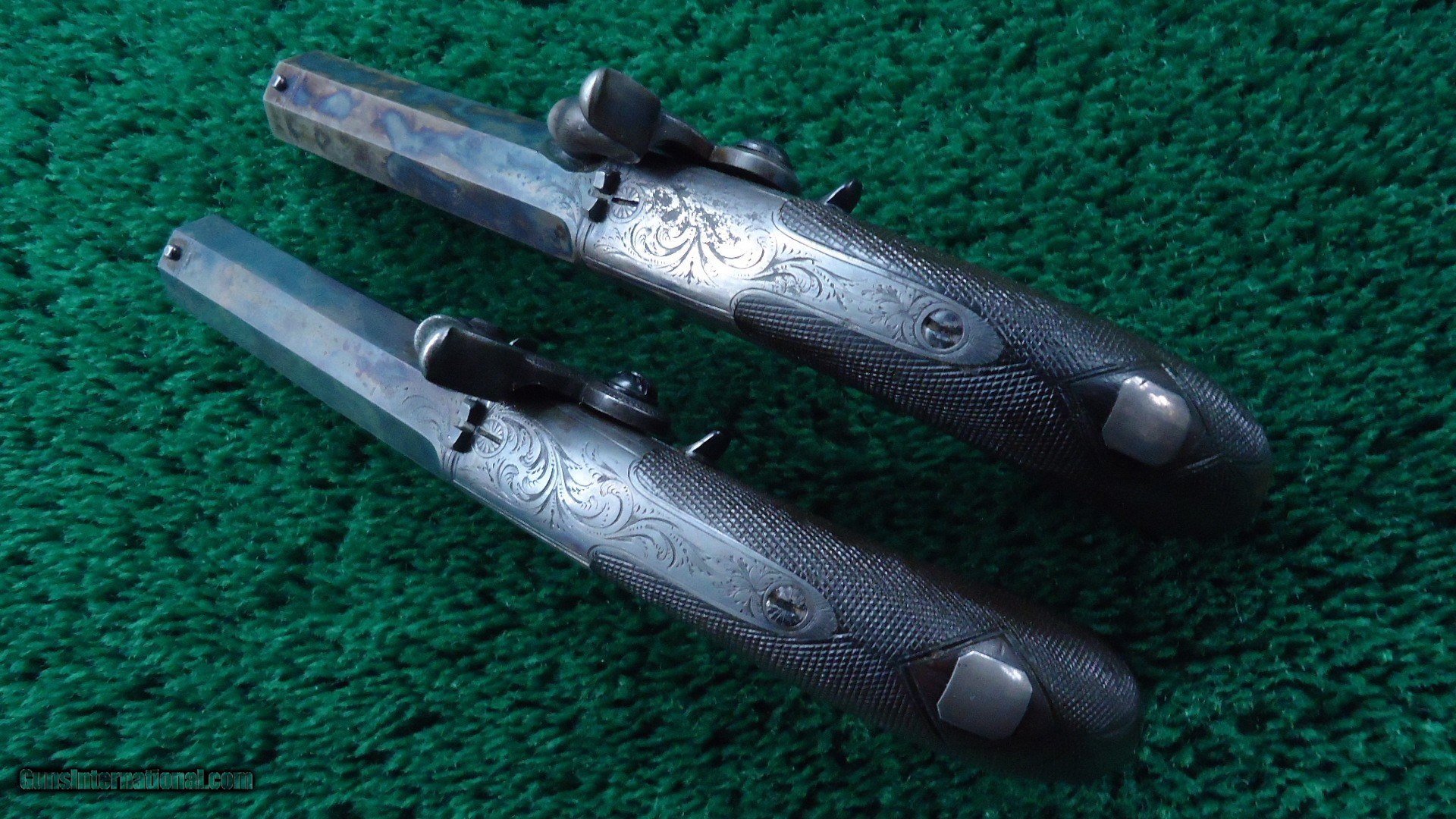 **Sale Pending** CASED PAIR OF PEACOCK LONDON MARKED PERCUSSION PISTOLS