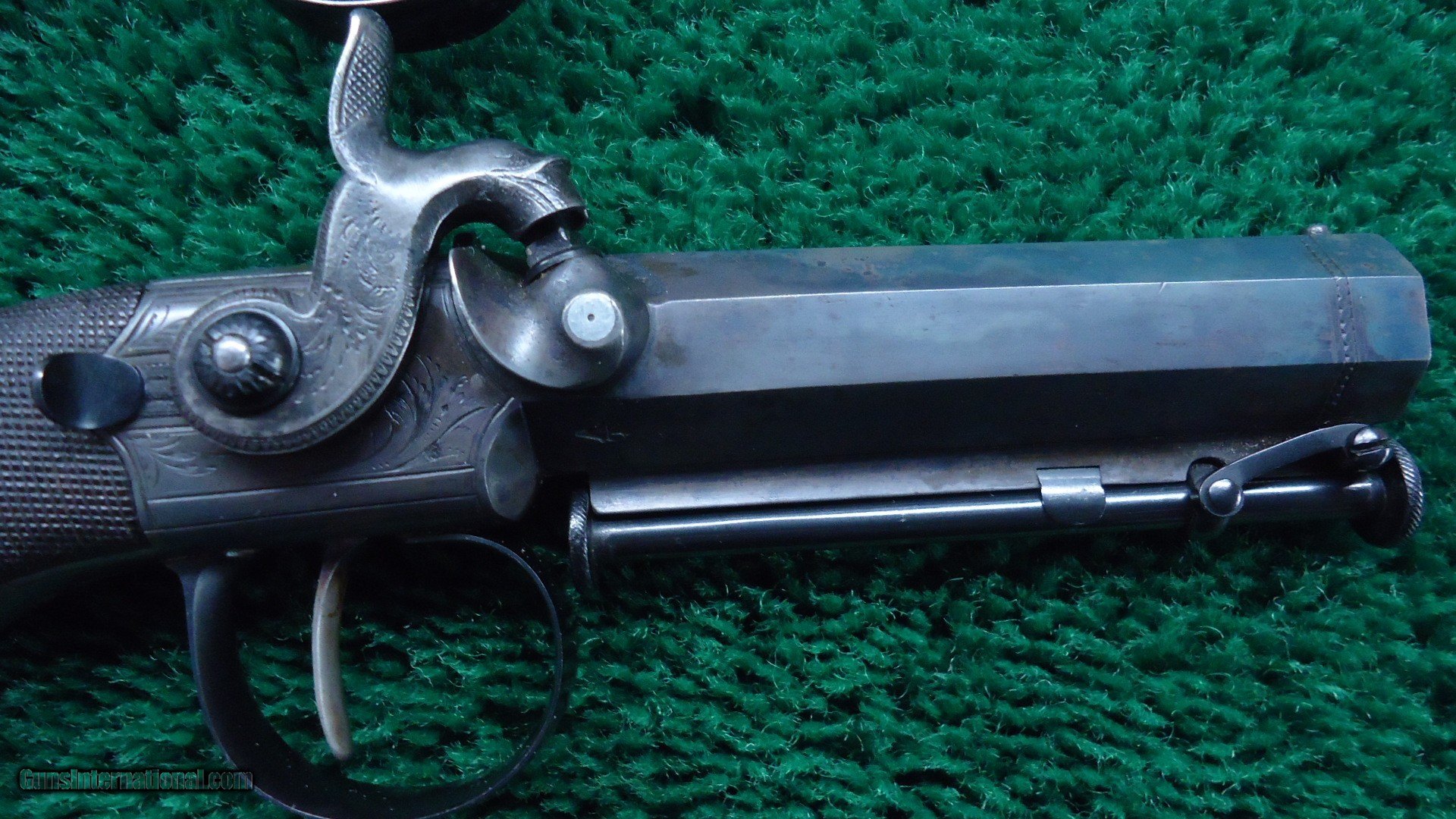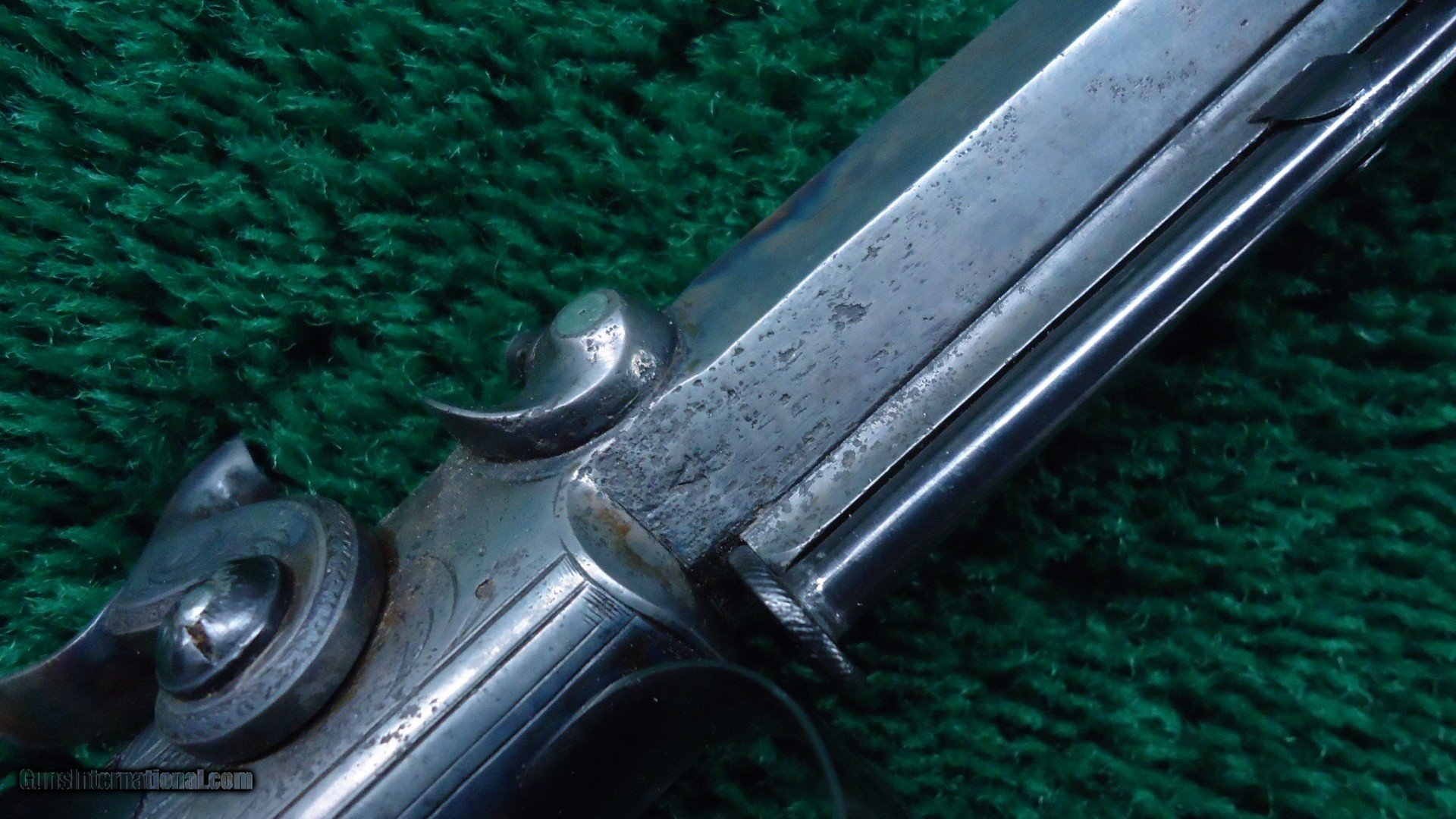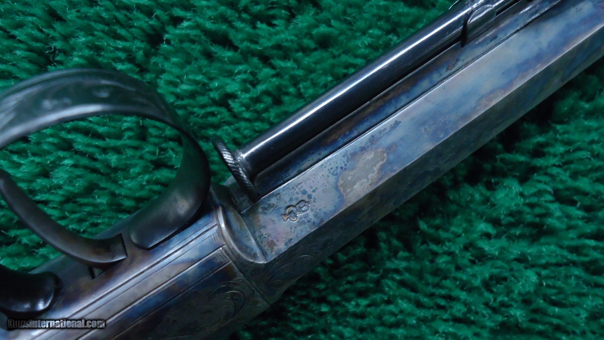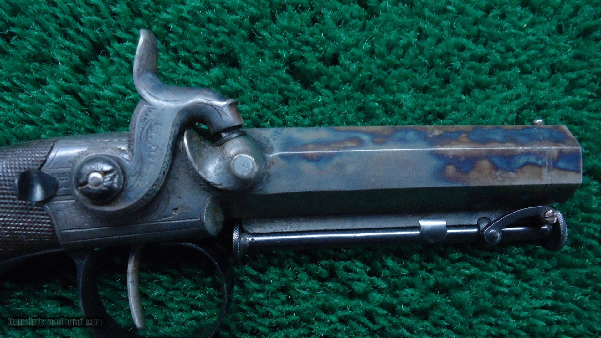 Description: 3-1/2 inch octagon barrels with dimming case colors and delicate engraving. Case colored frame is nicely engraved with most finish remaining. Engraved trigger guard is blued with most of that finish remaining. Nice checkered grips. Both have a swivel ramrod. Actions are excellent. These are fitted in a correct case with accoutrements. Case shows some minor wear. This is a nice pair of pistols. Leroy Merz Antique Firearms specializes in antique and vintage Winchesters and other fine American firearms. Since 1965 Mr. Merz has taken part in the world of firearms and has been a contributor to many well known reference books. We have hundreds of additional guns in every price range at our home online. Search for Merz Antiques in google. SOLD Antique: Yes |