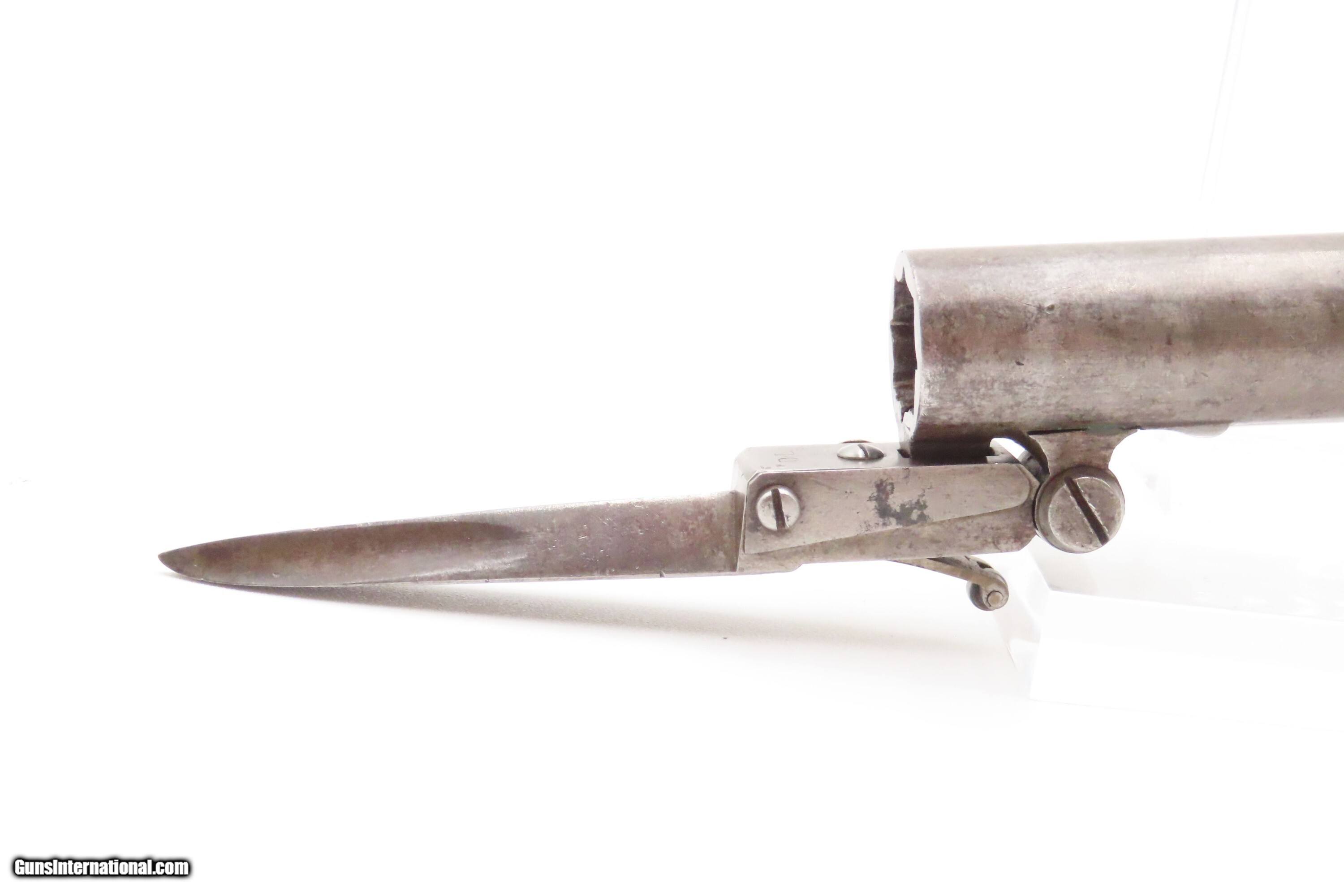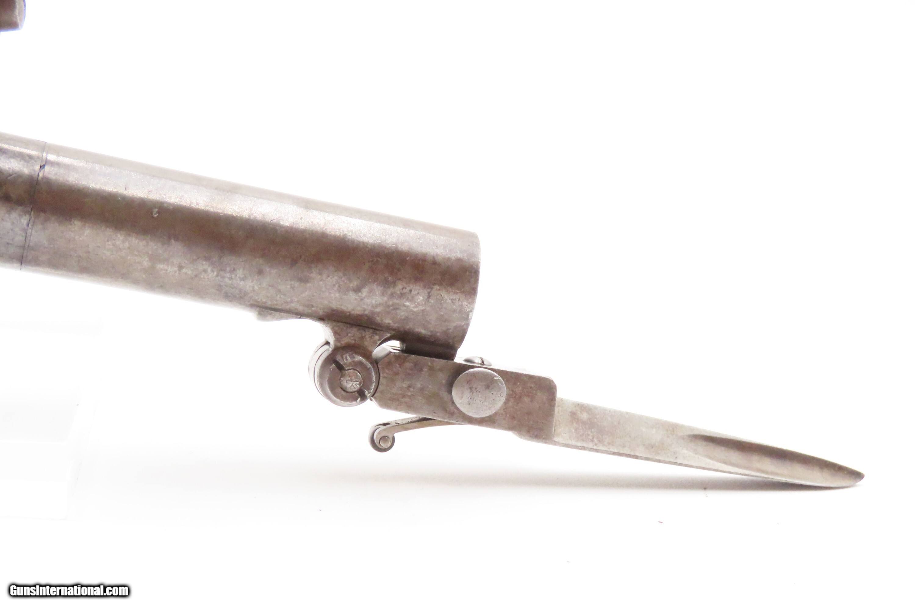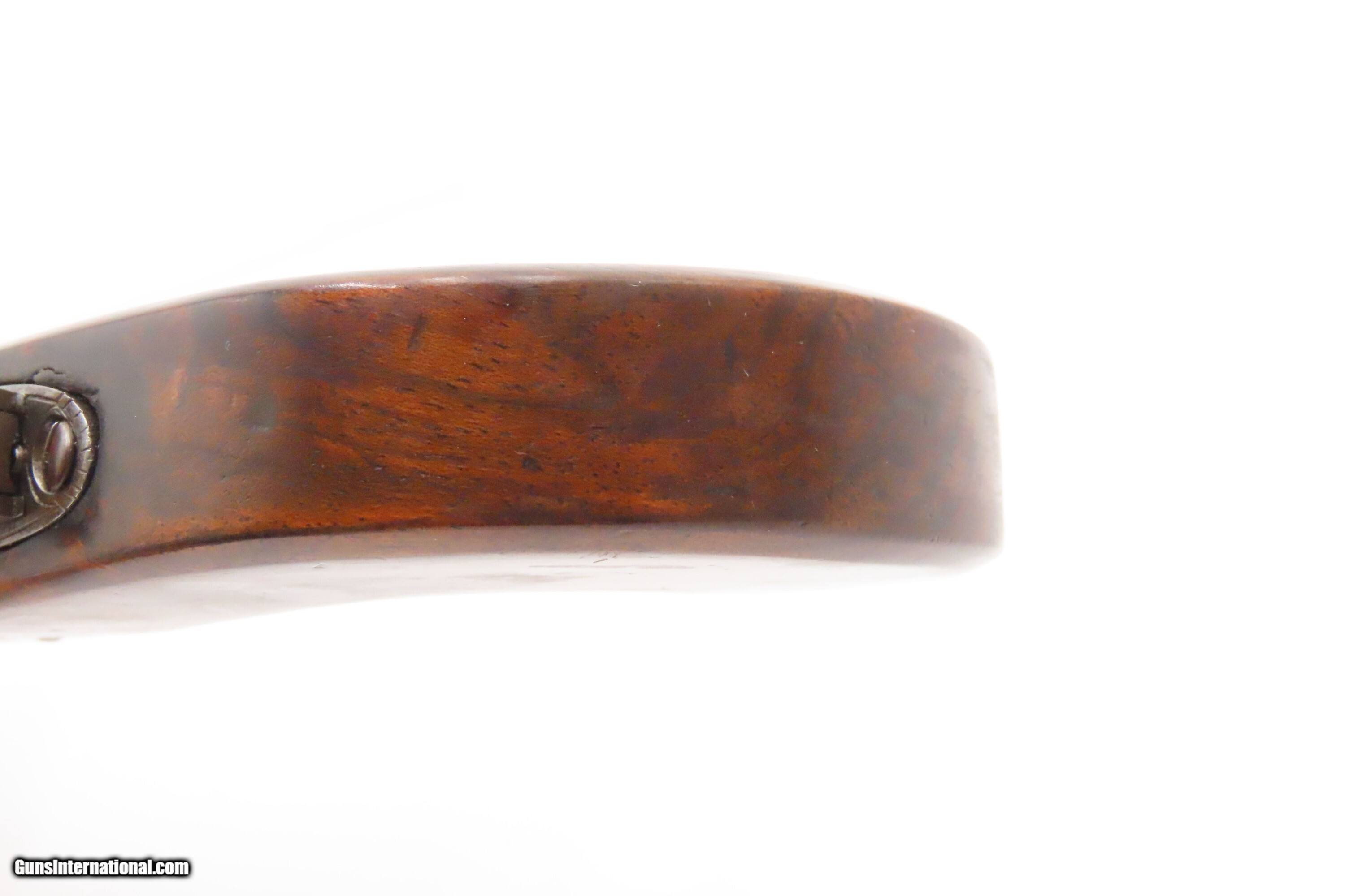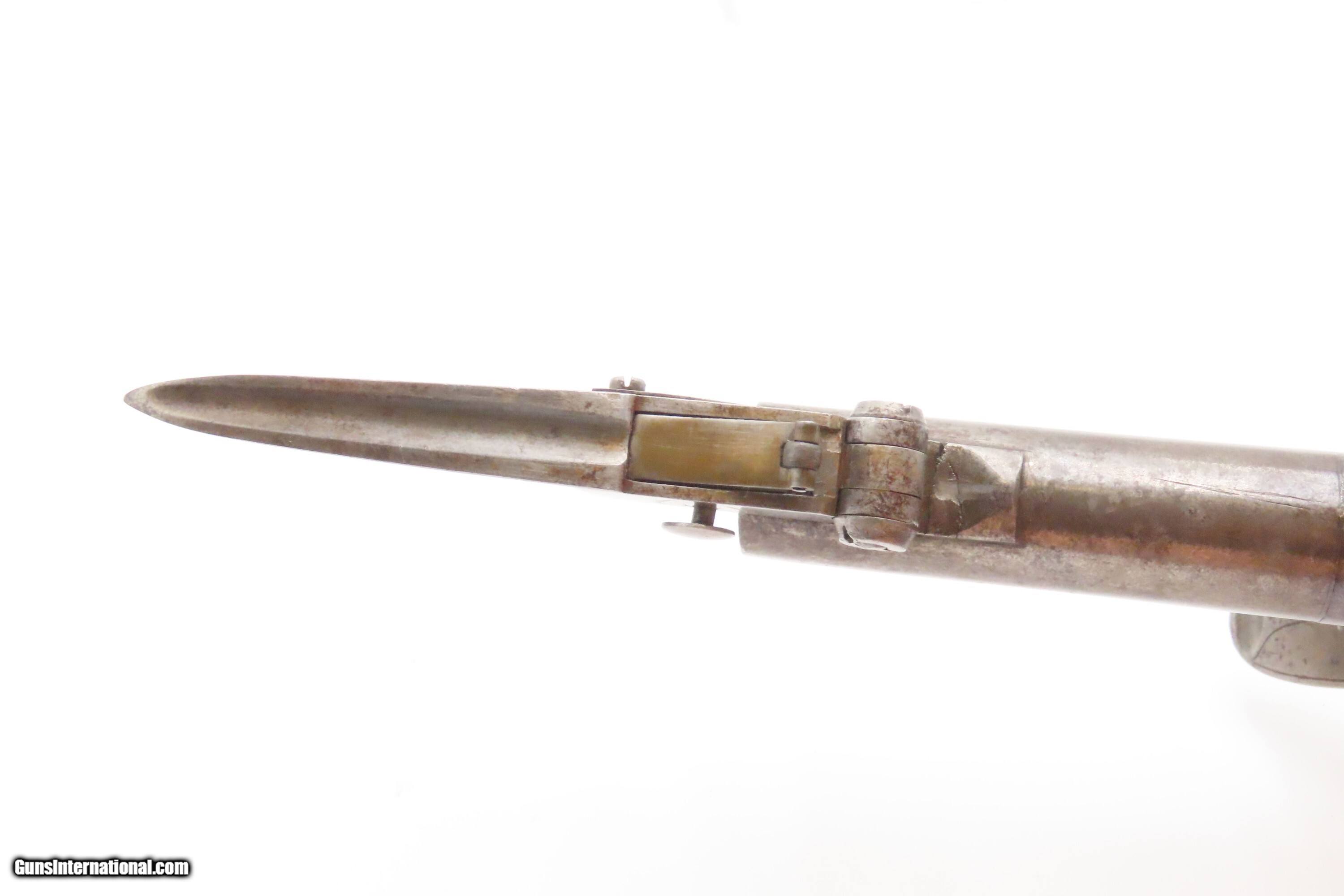Description: ENGRAVED PAIR British Antique NOCK FLINTLOCK Boxlock Pistols SNAP BAYONETS LONDON Marked with PRE-1813 BIRMINGHAM PROOFS Here we present an antique Pair of Engraved Nock of London Flintlock Pocket Pistols, both with snap bayonets, made circa the early 1800 in London, England. These guns were manufactured by either Henry Nock or Samuel Nock, who was the nephew of famed innovative gunmaker Henry Nock and apprenticed under him. Samuel was first listed as a gunmaker in 1804 at Hawkesbury Place in London before moving to 180 Fleet Street between 1806 and 1822, and then between 1823 and 1852 he was in business at Regents Circus. After he died in 1851, the business was carried on by the executors from 1853 to 1858. He was also an accomplished gunmaker and worked through the transitional period from flintlocks to percussion systems. He served as a royal gunmaker to the English monarchy from King George III in 1805 up to Queen Victoria starting in 1837. These little self-defense pistols would have been most at home in the pocket of anyone in the busy cities of London, Paris and Liege during the early to mid-1800s. These style pistols are small, light and simple. The “Pocket Pistol” name says it all. They were the "Saturday Night Specials" of the 18th-19th century. Before the Deringer, they were "Gentleman's" or "Muff Pistols", typically, a smaller pistol that was easily concealed. They were favored among the gentry and women because of these traits. Men would carry them concealed in a waistcoat pocket and women would hide them in a hand muff. The overall condition is good. Various traces of original finish can be found, but mostly appear as a gray patina. Strong actions. Both bores have dimmed and remain smooth. Solid grips, both contain light handling evidence. Lightly engraved locks. The bayonets on both pistols “snap” and latch properly! Own the original! This is a legitimate antique and not a reproduction. Barrels are 2-3/8 inches. Calibers are both .45 Flintlock Overall condition as seen in photos. Very Fast. Very Safe. FREE SHIPPING WORLDWIDE. Delivered directly to your door by express mail! Guaranteed AUTHENTIC & Includes CERTIFICATE OF AUTHENTICITY. ancestryguns $3300 #250547 Antique: Yes Price: $3,300.00 Buy Now Pay with