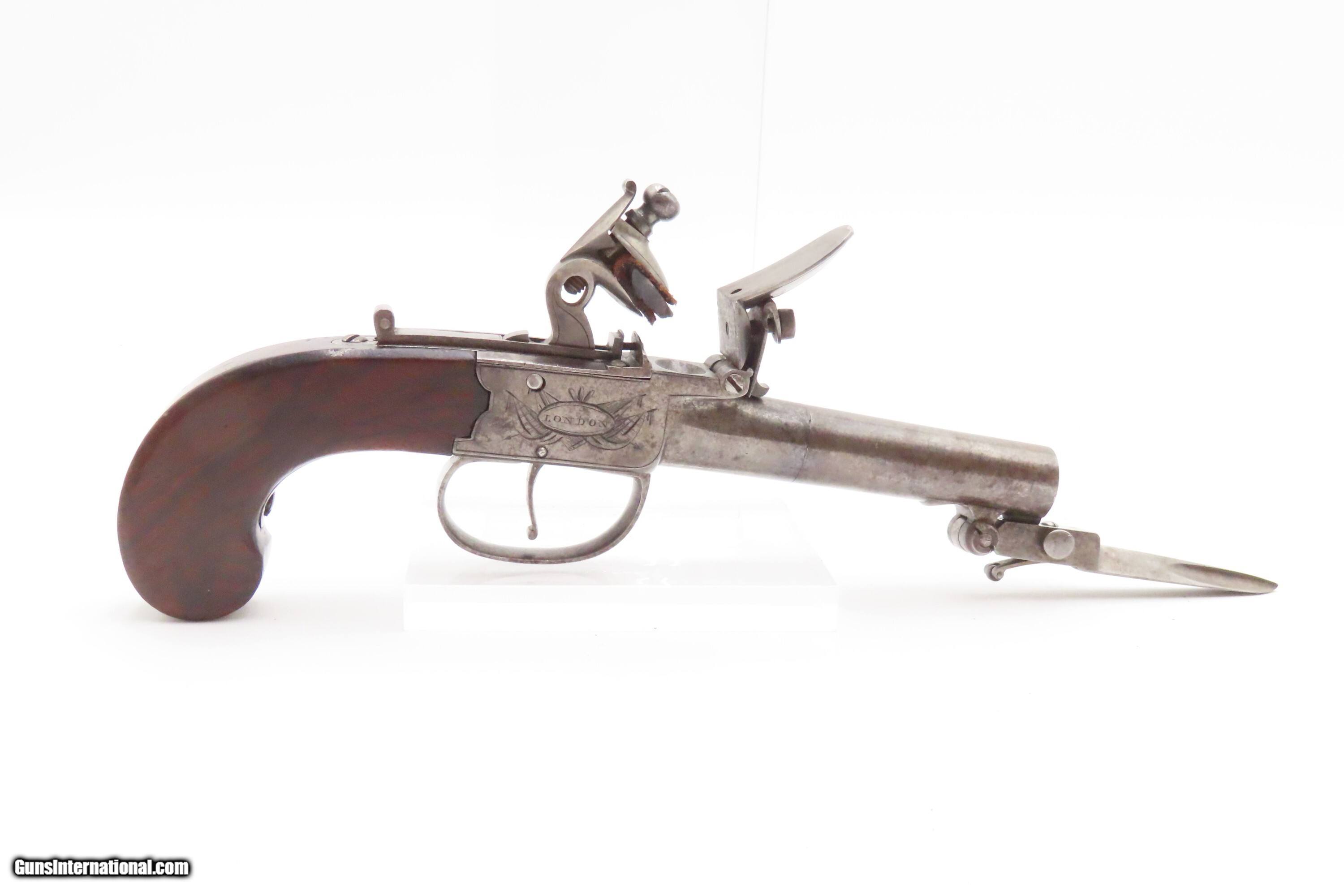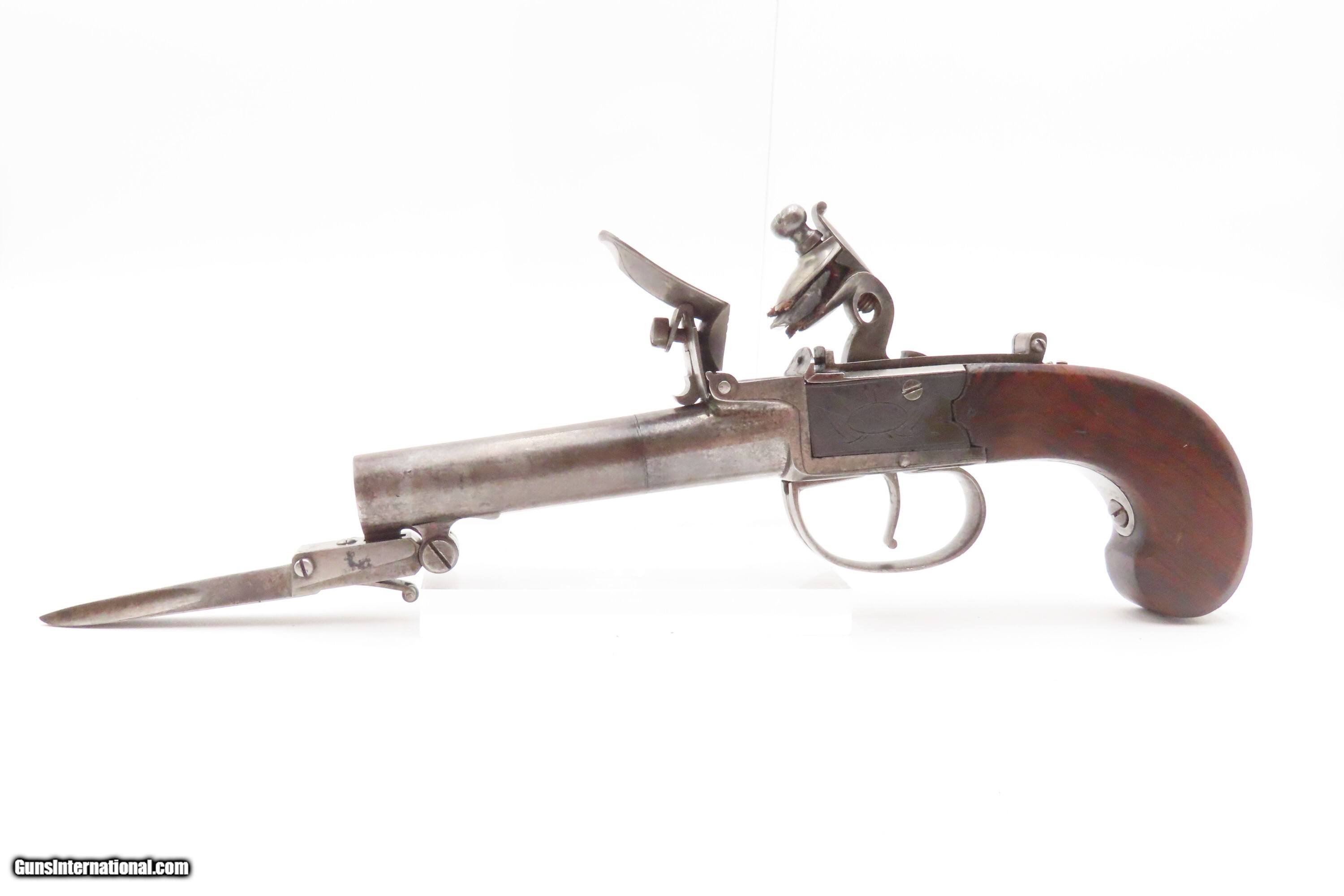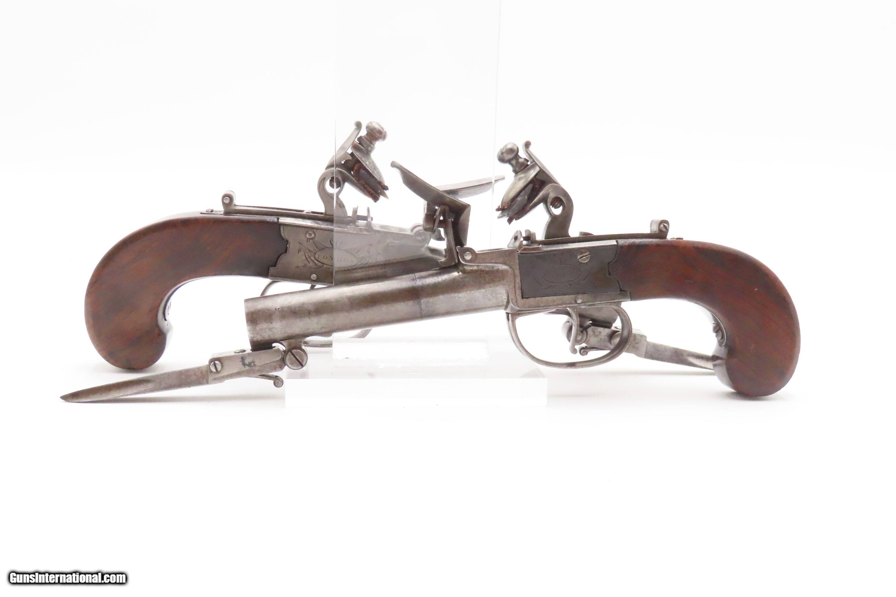 ENGRAVED PAIR British Antique NOCK FLINTLOCK Boxlock Pistols SNAP BAYONETS