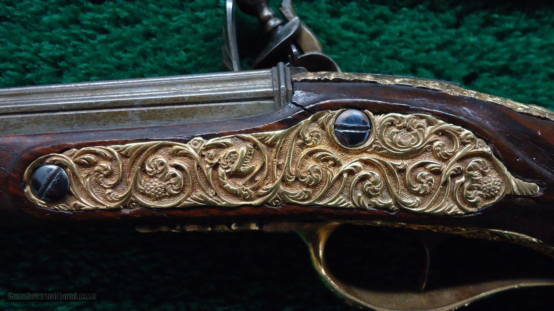 Description: A Garniture is a group of 3 guns manufactured by the same artist or manufacture. Fowling piece has a .60 bore, 30 inch barrel and superb gilt bronz mounts. The pistols match the fowler. This garniture was ordred in the second quarter of the 18th century, nearly 300 years ago. It is believed to have been ordered by Ernst August Grand Duke of Saxe-Weimer and created by court gun maker Johan Martin Laun from parts supplied by Giovanni Botti of Brescia. Barrels are stamped with signature of Lazarino Cominazzo, one of Italy's most renowned barrel makers. The locks, cocks and frizzens are all signed Gio. Botti and are chiseled in relief manner. The figured walnut stocks are carved with scrolls.They have spurred pommels, blued screws and triggers, gilt bronze caps and ramrod pipes and wooden ramrods with gilt bronze tips. This group is Museum quality and are a beautiful representation of historical art in gun making! Leroy Merz Antique Firearms specializes in antique and vintage Winchesters and other fine American firearms. Since 1965 Mr. Merz has taken part in the world of firearms and has been a contributor to many well known reference books. Just recently we mailed the 129th edition of our privately-published catalog. We have hundreds of additional guns in every price range at our home online. Search for Merz Antiques in google. SOLD Antique: Yes |