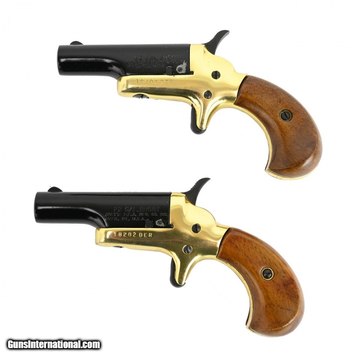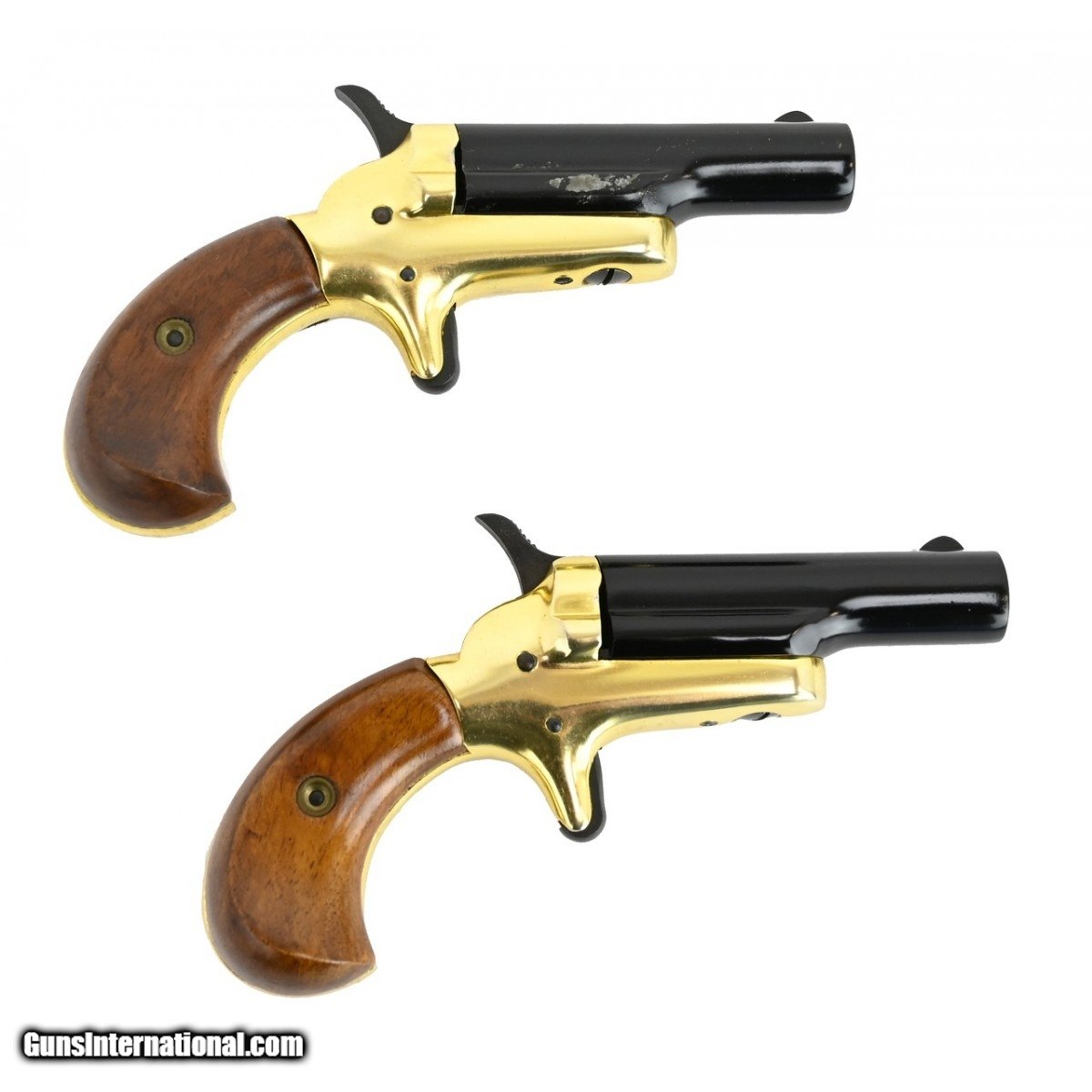 Description: " Cased Set of Lord Derringers. One of the pair has an area of minor flaking, otherwise near excellent overall condition.
