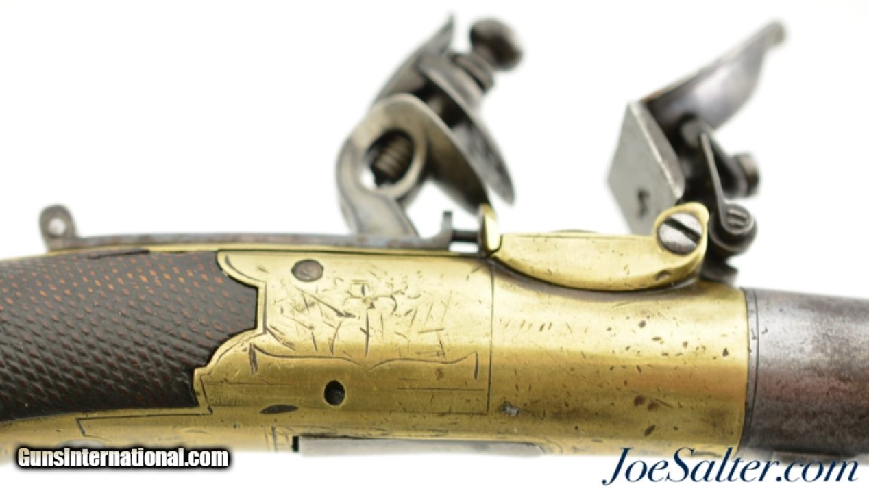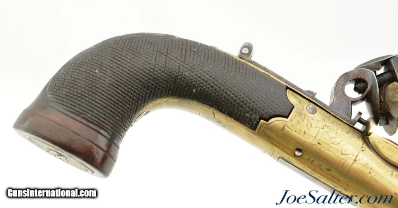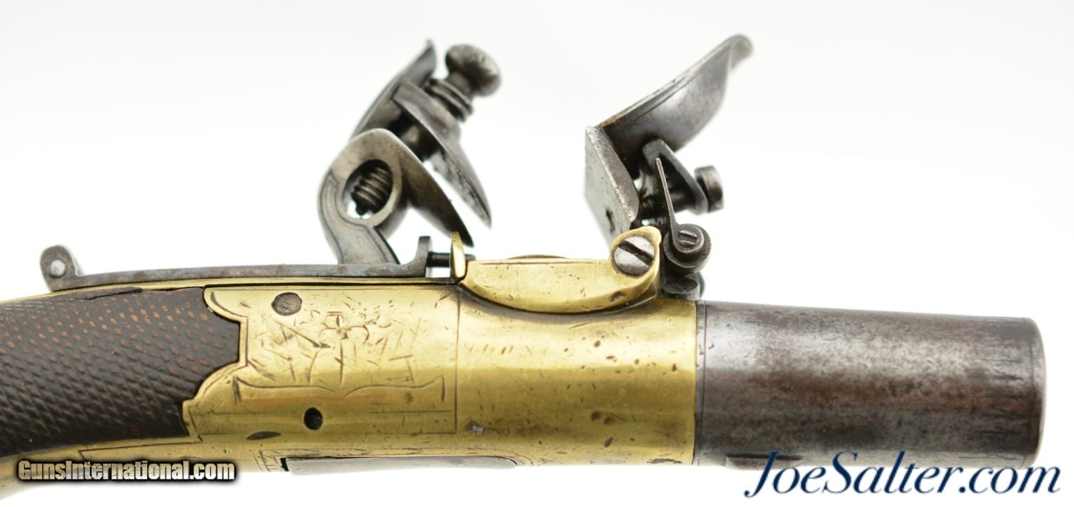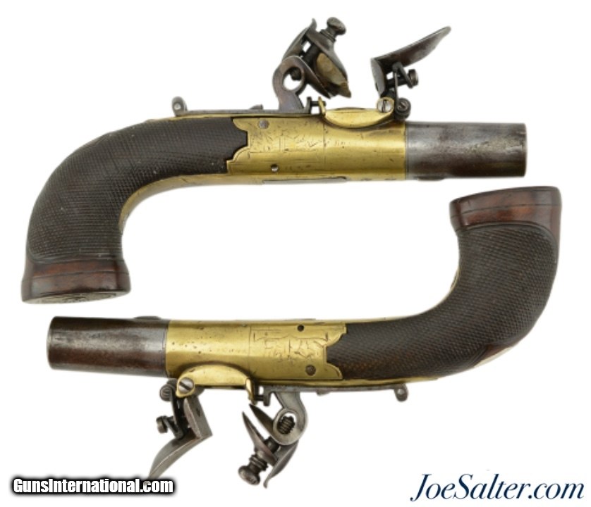 Antique Pair of London Brass Frame Flintlock Turn-Off Pistols