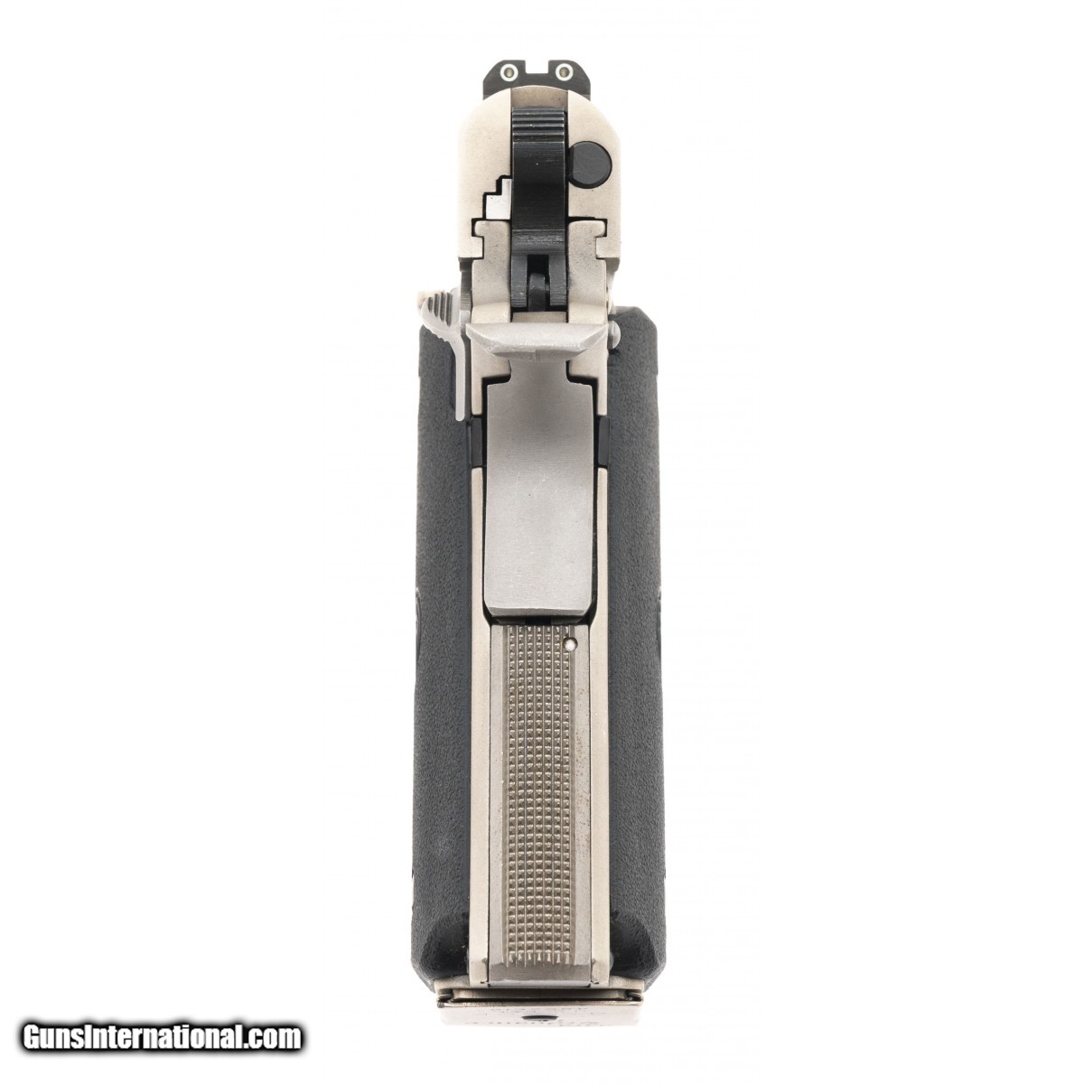 Description: " SN: PG013166. Custom built Commander 4.25"" size 1911 with Para double stack frame. The slide and barrel are unmarked. Has a satin nickel finish. Excellent condition. SOLD |