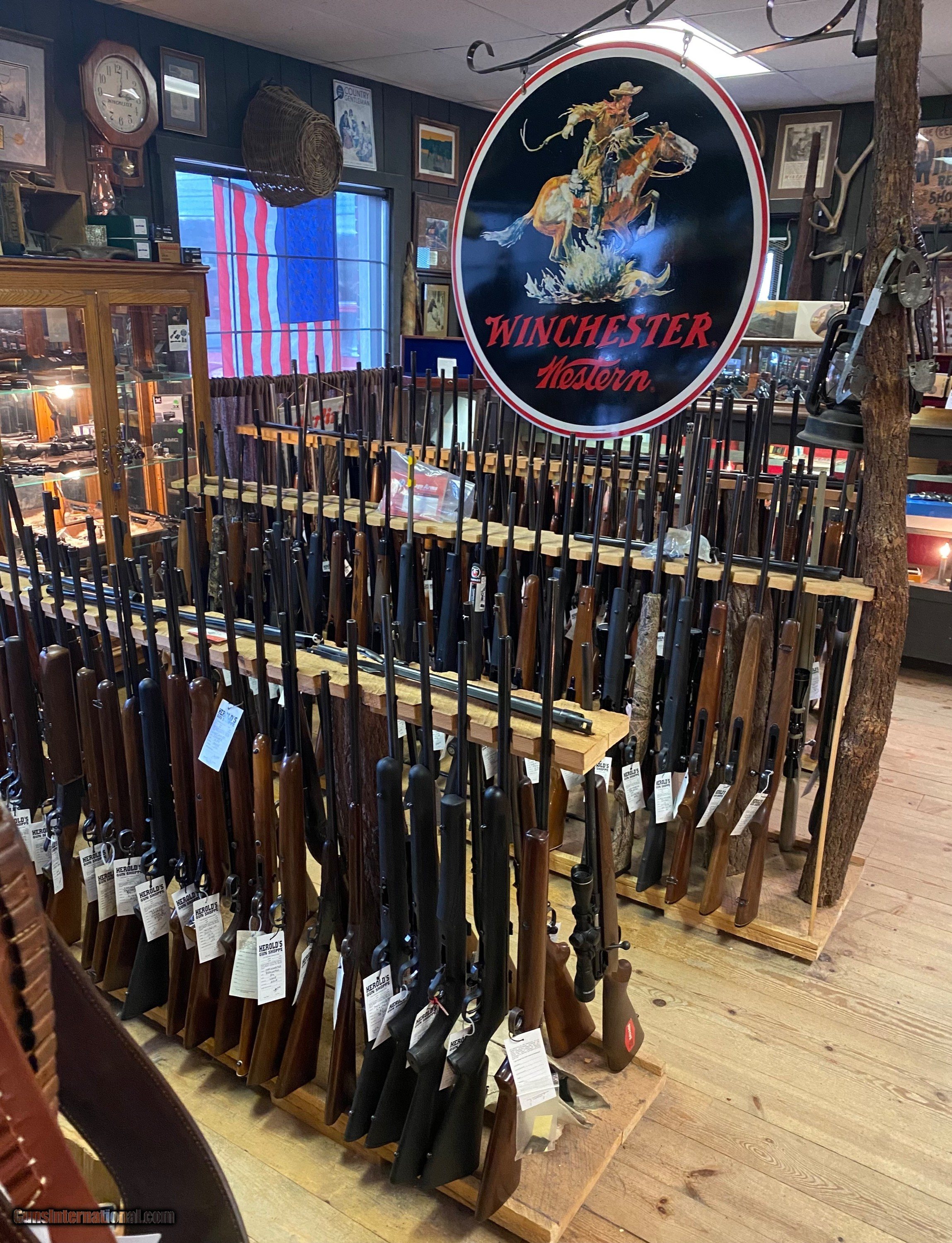 About Us: We are an “Old School” gun store with a vintage Western style. We do carry various modern pistols, revolvers and long guns. However, our specialty is vintage firearms including bolt action, lever action and semi automatic rifles. For example, we usually have at least two or three M-1 Garand rifles at any given moment. Other times we may have one or two Springfield 1903 rifles. Also in stock are a few dozen lever action rifles available in different calibers & barrel lengths. Lastly, we have a wide variety of Colt Single Action Army revolvers in different calibers and barrel lengths. (NOTE: we try & remove items from Guns International ASAP if they are sold through our retail location, but there may be a slight delay in doing so)