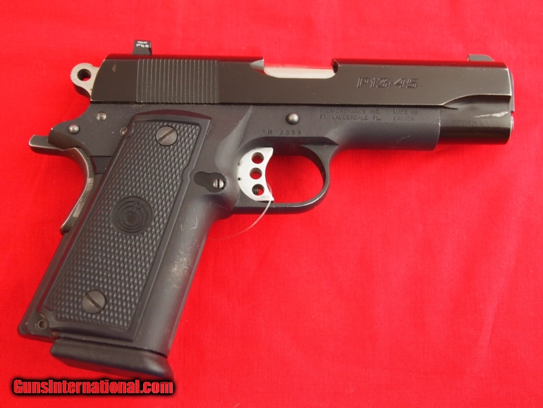 Description: Para Ordance P-13 .45 ACP, 4.25 inch barrel, magazine holds 13 rounds, 3 sights, single action, beavertail grip safety, gloss bluing on slide flat black on frame. Add 3% for credit cards $25.00 S&H SOLD |