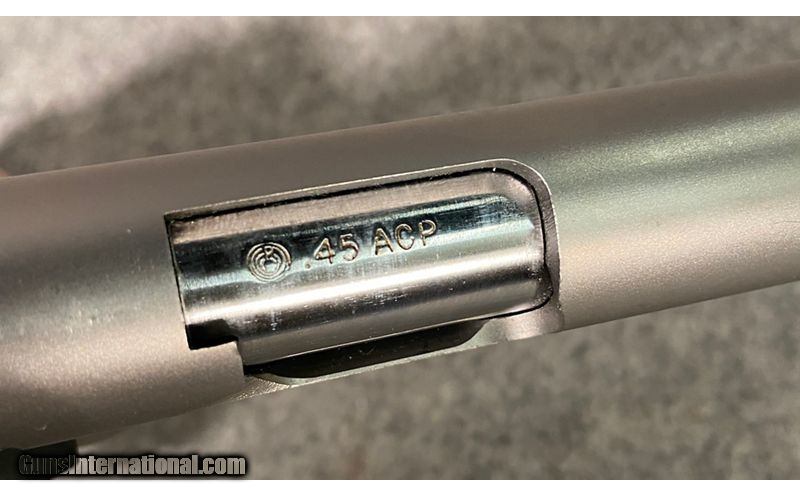 Description: .45 automatic recoil operated semi-automatic. Comes equipped with a grip and thumb safety. Very light trigger. Double stacked. .45 Auto SOLD Metal Condition: Stainless Barrels: 4.25 in Triggers: Single Action. Weight: 2 lbs Sights: "Dovetail front, adjustable rear Item Location: Lexington, KY |