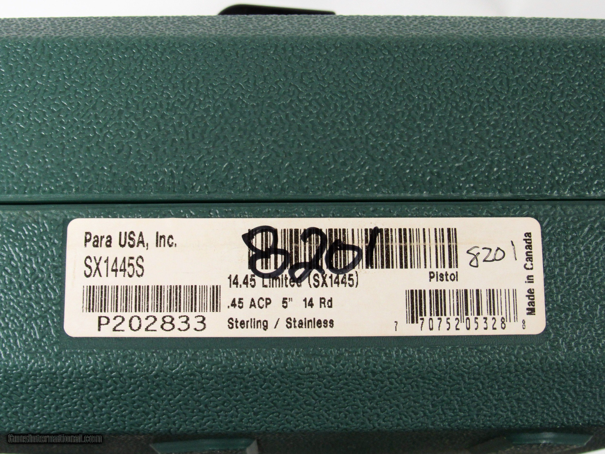 Description: PARA ORDNANCE 14.45 LIMITED. NIB. SOLD Handgun Caliber: .45 ACP (.45 Auto) |