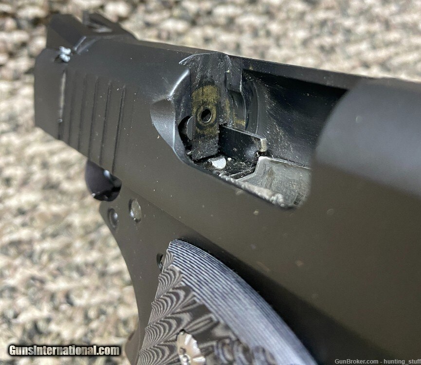 Description: Guns Listing ID: 1076566 Para Ordnance Black Ops 1911 45 ACP Black Finish G10 Grips 5” BBL 7+1 This listing is for a USED Para Ordnance Black Ops 1911 45 ACP Black Finish G10 Grips 5” BBL 7+1. This is a used gun, it has been fired and will have residue present. This Para Ordnance 1911 is chambered in 45 ACP, and it will hold 7 rounds in the magazine. This pistol comes with a 5 inch barrel. It comes equipped with a fixed rear Trijicon Night Sight, but it does not come with a front sight. There are a few scratches on the frame, and some of the finish has worn off on the frame. There is a small spot of rust on top of the rear sight. The included magazine has several scratches present. This pistol does not come with a box. The action appears to be in good condition, the finish on the slide appears to be in good condition, and the bore appears to be in good condition. This would be a great plinking pistol. ** DISCLAIMER** THIS FIREARM HAS NOT BEEN TEST FIRED*** SOLD Manufacturer: PARA-ORDNANCE Model: BLACK OPS Caliber Info: .45 ACP Condition: Used - Non-Certified Barrels: 5 BARREL Finish: BLACK |