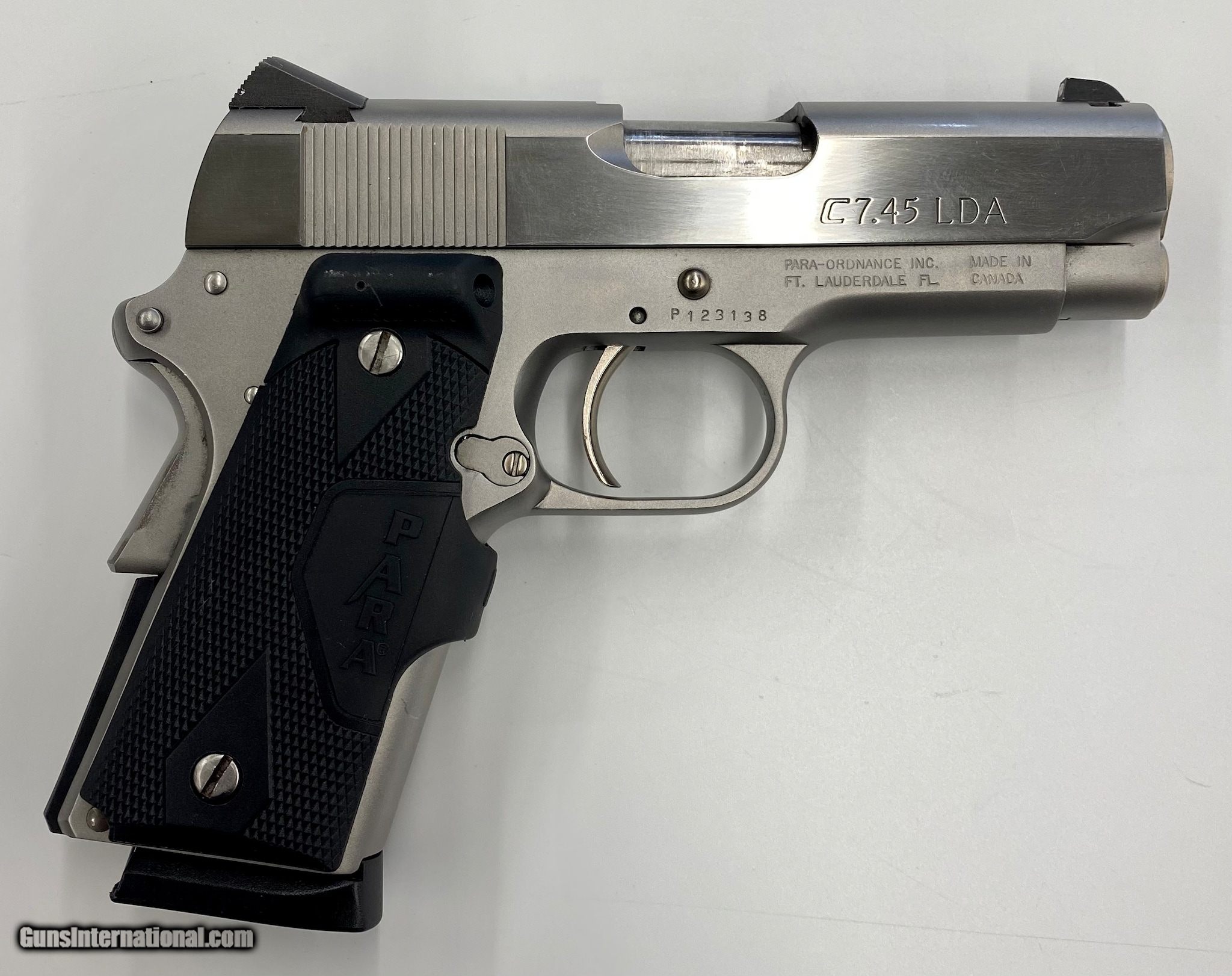 Description: Guns Listing ID: 333819 Great para .45 in original box with original grips and laser grips. SOLD Manufacturer: PARA ORDNANCE Model: C7.45 LDA Companion Laser Grip Caliber Info: .45 ACP Condition: Used - Non-Certified Barrels: 3.5 BARREL Finish: STAINLESS |