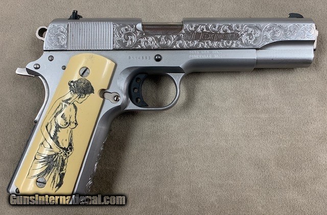 Description: This is a Para Ordnance model Expert .45 that was custom engraved and fitted with custom grips. All is just about unused since engraving was done, in the original box, etc. A very handsome handgun with quality engraving.... SOLD |