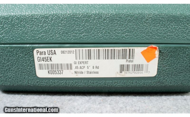 Description: Para Ordnance GI Expert 1911 45 ACP 5 in barrel Single stack 8 round factory mags Extra Magazine, case included .45 ACP SOLD Chambers: 45 ACP Metal Condition: Very Good Bore Condition: Bright Barrels: 5 inch Item Location: short pump |