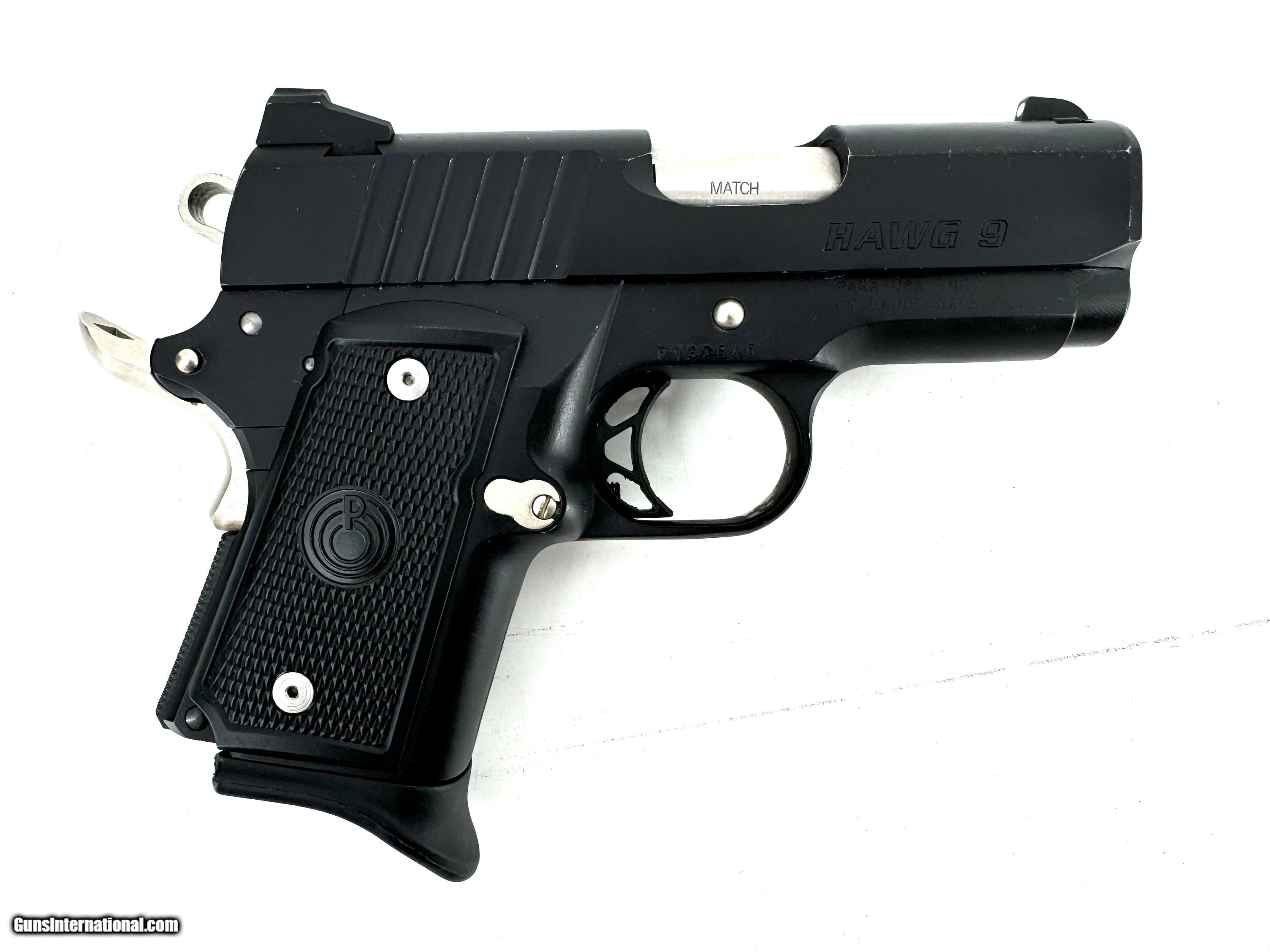 Description: Para-Ordnance Hawg 9 semi-automatic handgun 9mm caliber 3" barrel 12 +1 capacity Beavertail grip safety Single-action Spurred hammer 3-dot sights Black synthetic grips Regal black finish Alloy receiver 6.5" overall length 4.5" tall 24 oz. When you need the most rounds in the smallest package, you need a Hawg. The pistol's compact frame makes it easy to carry into any situation, yet the small size won't mean a sacrifice in stopping power. The contoured grip and beavertail grip safety give you control over the pistol, without having to risk hammer bite. Regardless of the situation, you can find the right Para Hawg to back you up. The Slim Hawg, true to it's name, gives you the timeless reliability of a single stack, single-action 1911, while the Hawg 9 has 12+1 rounds of 9mm. SOLD Handgun Caliber: 9x19mm Parabellum (9mm Luger, 9x19mm NATO) Manufacturer: PARA ORDNANCE Model: HI CAP Serial Number: P190548 Barrel Length: 3 |