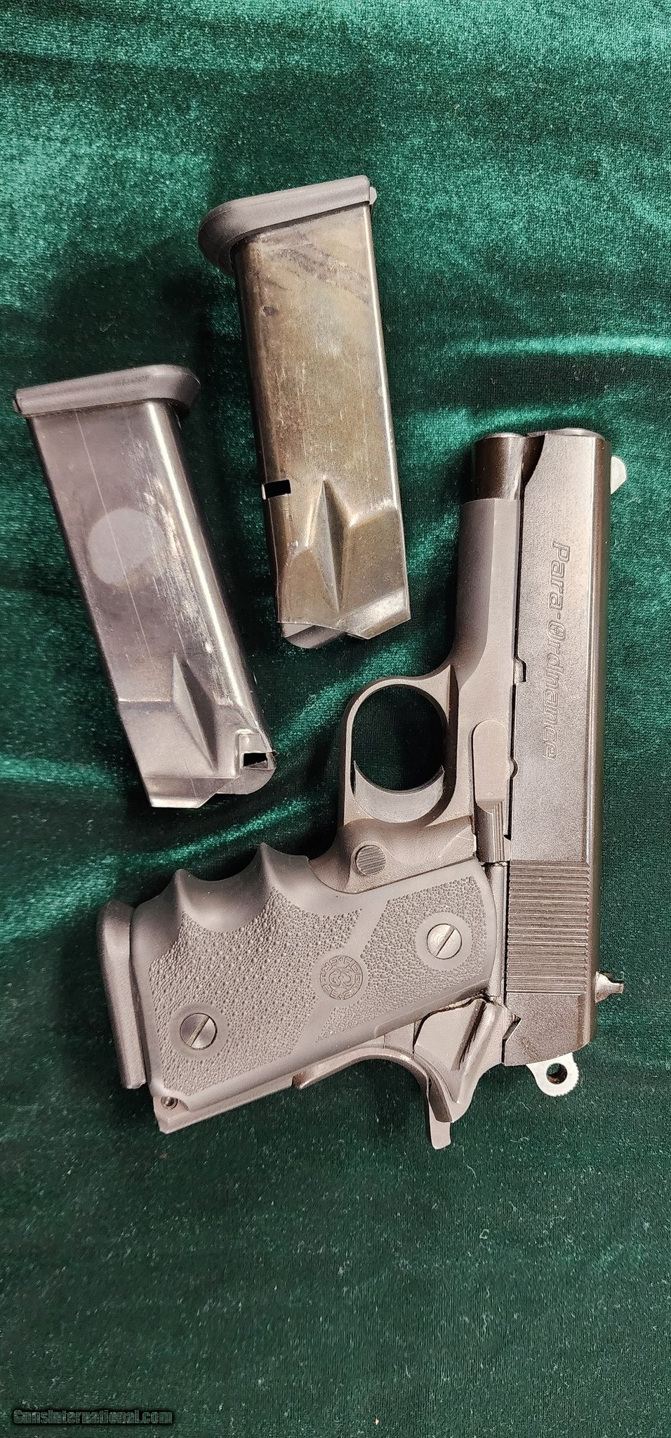 Description: Guns Listing ID: 377751 Comes with 3 mags and Hogue grips. The Para-Ordnance P12-45 is a compact, high-caliber semi-automatic pistol known for its robust performance and reliability. Designed for those who value stopping power in a smaller frame, the P12-45 packs a .45 ACP punch into a manageable and concealable package. Featuring a 12-round magazine capacity, the P12-45 offers a balance of firepower and compactness, making it a popular choice for both personal defense and carry purposes. Its construction includes a steel frame and slide, providing durability and a solid feel while ensuring consistent accuracy. The P12-45 is built with a traditional single-action trigger system, which delivers a crisp and predictable trigger pull. The pistol is equipped with an adjustable rear sight and a fixed front sight, allowing for precise targeting. Its ergonomic grip design enhances handling and control, while the overall compact size ensures that it remains easily concealable. Overall, the Para-Ordnance P12-45 is appreciated for its combination of power, capacity, and concealability, making it a reliable choice for those who need a compact .45 ACP handgun. SOLD Manufacturer: PARA-ORDNANCE Model: p12-45 Caliber Info: .45 ACP Condition: Used - Non-Certified Barrels: 4 BARREL Action: SEMI AUTOMATIC Finish: BLACK Weight: not specified |