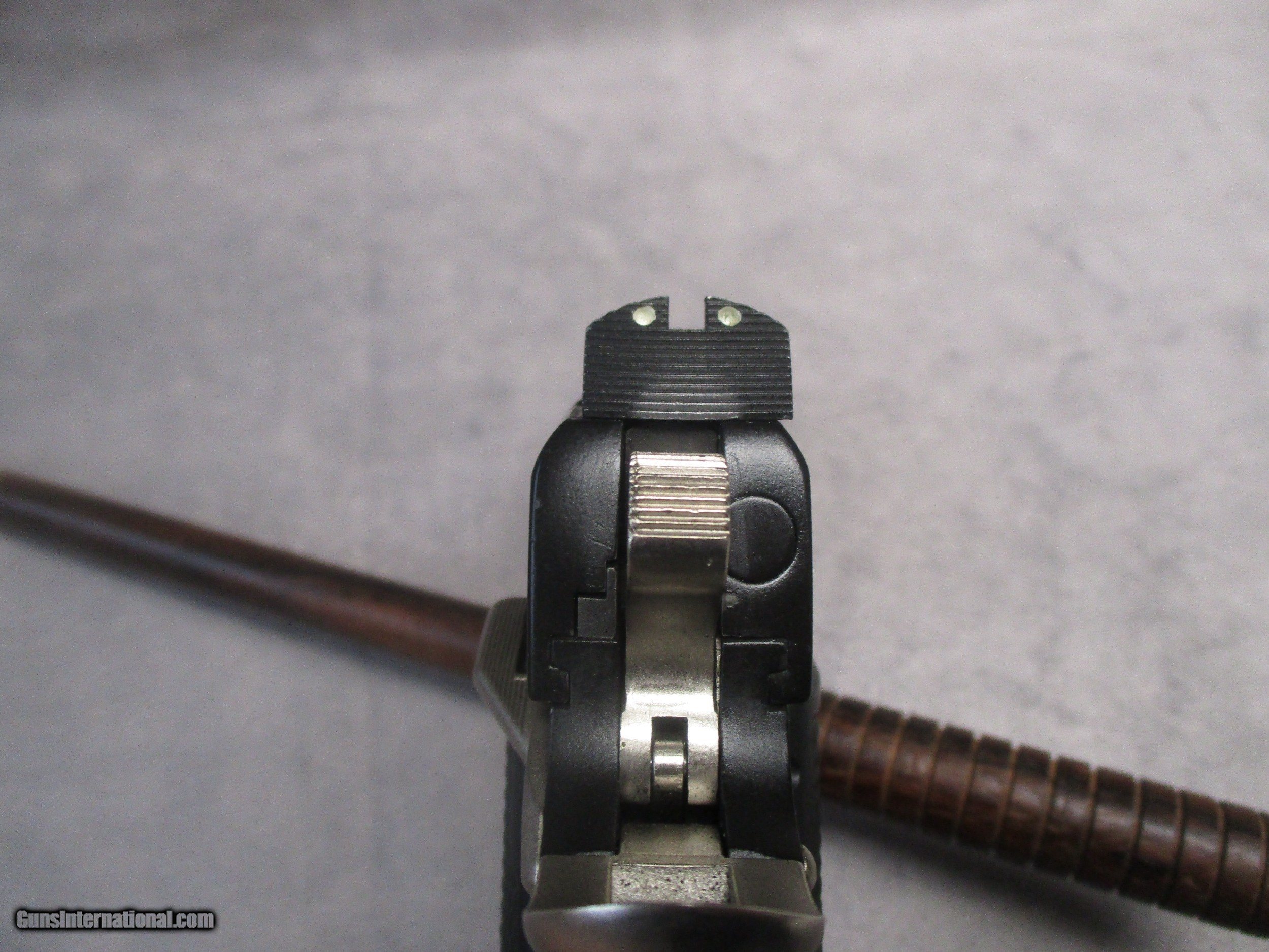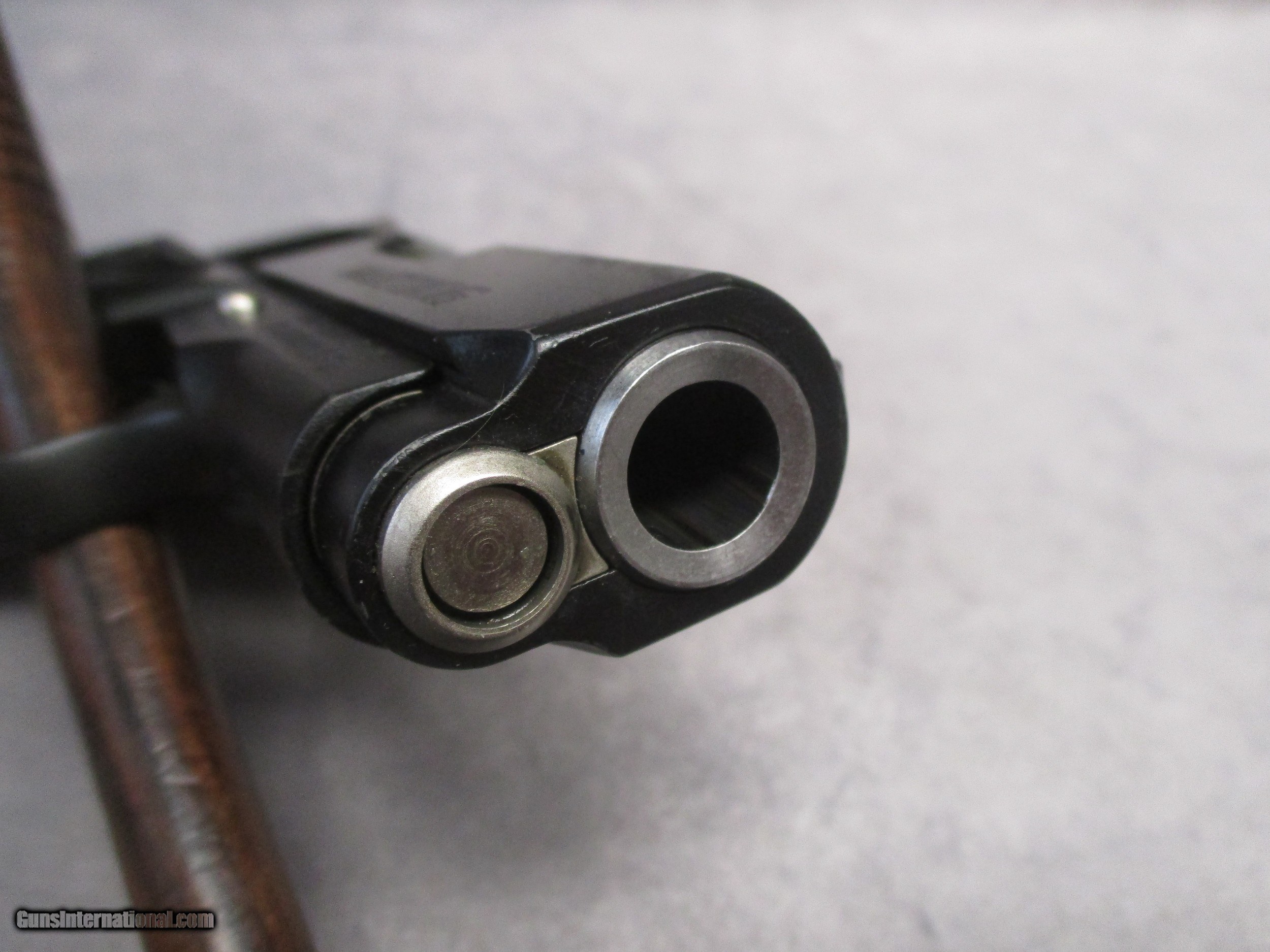 Description: The original Para Ordnance Warthog is the world’s smallest double-stack 10+1 capacity 1911-style pistol. The compact frame allowed for easy carry if not easy shooting. Granted, in a defensive situation, recoil is the last thing a person will notice, so the Warthogs potential recoil is not normally an issue. It was designed to be ultimate in .45 conceal carry handguns, and was fairly popular in its day. This one exhibits the usual signs of having been used as a carry gun as intended. The frame and slide exhibit light finish wear in certain spots, mainly on the edges or bottom of the trigger guard. One of the magazines has been fitted with a Pearce Grips PG-P10E pinky extension while the second magazine retains its original flat bottom plate. The rear sight is moved over to the right giving the appearance that it is loose, but it is in fact held in place tightly by the retention screw. The bore is in great shape with no rust or pitting. The magazine latch can sometimes be a little finicky. Slapping the magazine in will ensure this magazine is latched firmly. The Warthog comes with its original box, manual, and factory test-fire casing. There is still quite a bit of aftermarket support for the Warthog, including holsters and 13-round extended magazines with a sleeve to take up the space between the butt of the grip and the top of the magazine’s floor plate. SOLD Handgun Caliber: .45 ACP (.45 Auto) Manufacturer: Para Ordnance Model: Warthog Serial Number: P143485 Bore: Rifled, 6 LH grooves, 1 in 16” twist Condition: Good to Excellent Barrel Type: Bushingless, tilting Action: Semi-Auto, Short recoil, Locked Breech Triggers: Skeletonized Trigger Stock: Para Ordnance synthetic grips Finish: Matte black, matte silver finish on hammer, grip safety, safety, slide lock, and mag release Sights: Novak sights, sight radius 4.75 inches (121 mm) Manufacture Date: January 2005 Extras: Spare magazine Case: Para Ordnance box |