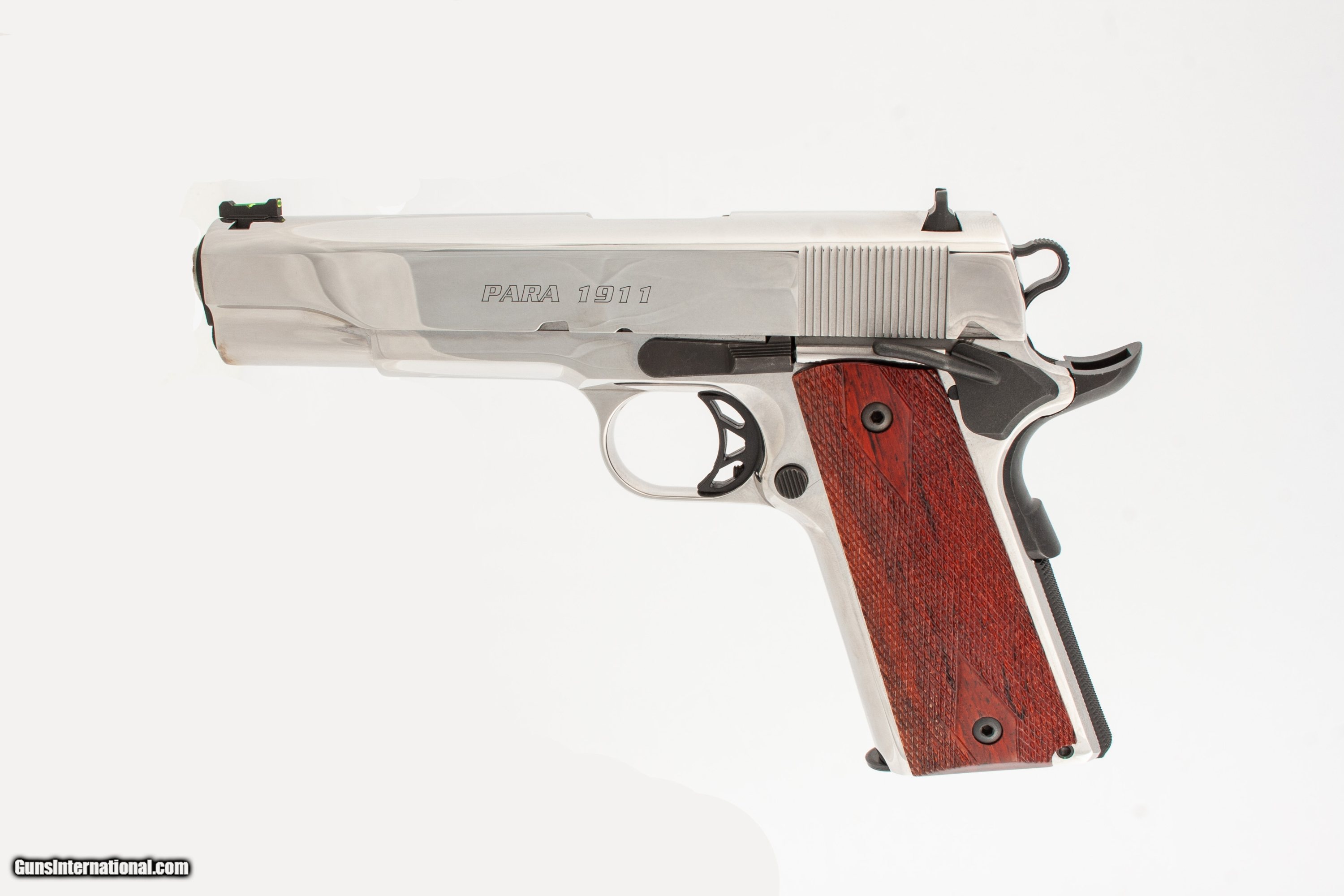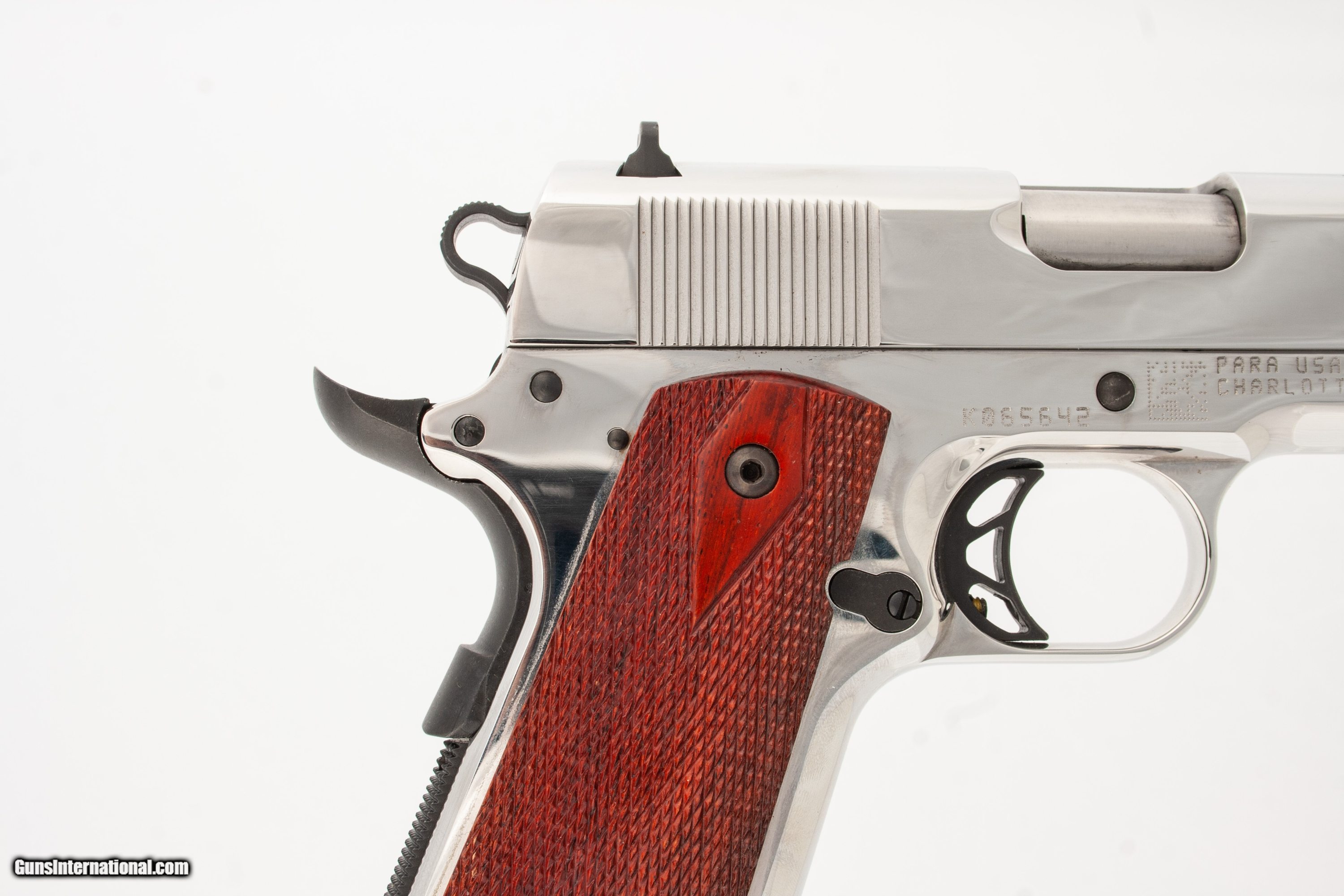 Description: A PARA USA 1911 chambered for 38 super with high polish stainless finish a 5 inch barrel with a bright and shiny bore with a case and an extra magazine. This firearm is in excellent condition and is covered by Dury's Lifetime Warranty.