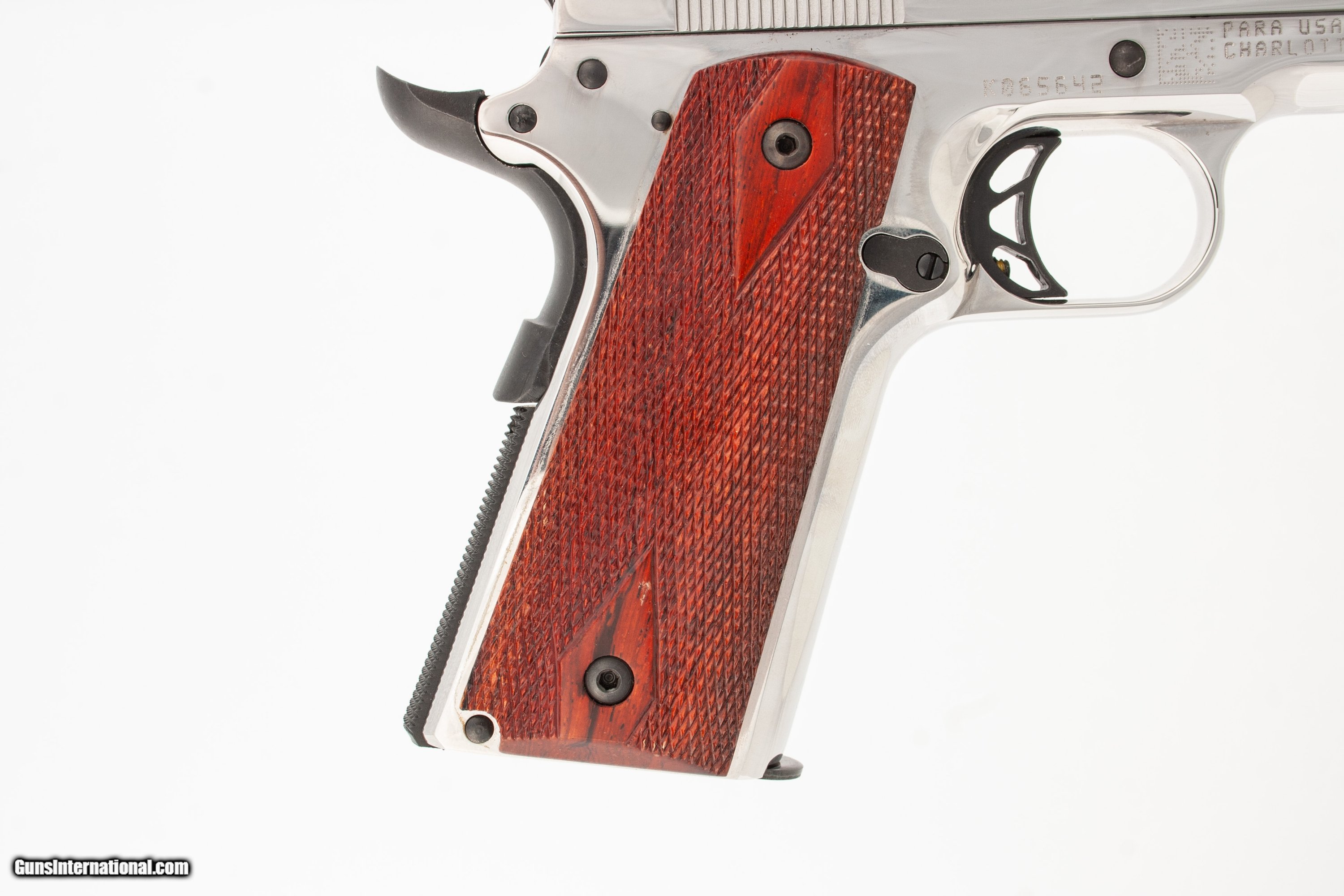 A PARA USA 1911 chambered for 38 super with high polish stainless finish a 5 inch barrel with a bright and shiny bore with a case and an extra magazine. This firearm is in excellent condition and is covered by Dury's Lifetime Warranty.