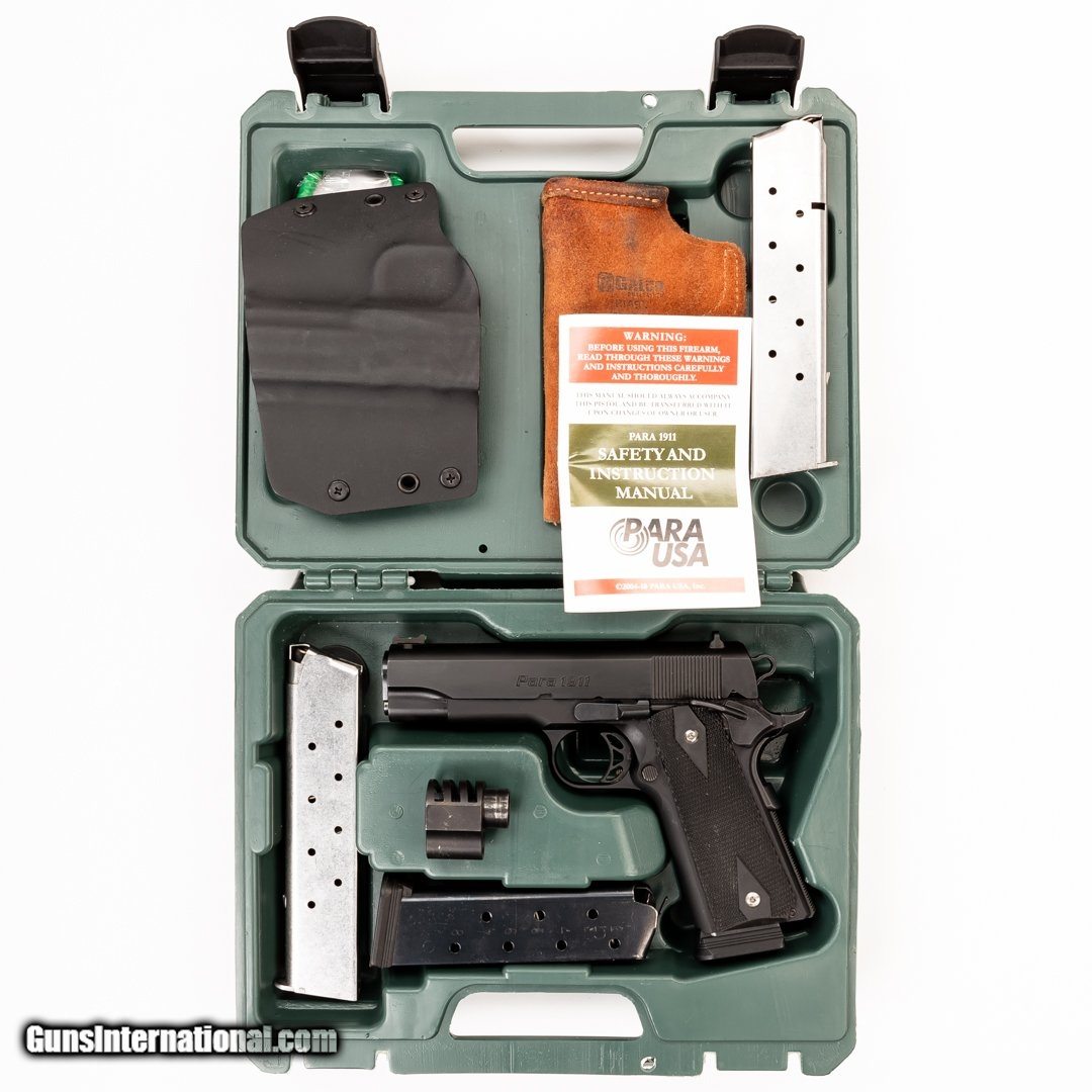 Description: Guns Listing ID: 1343238 This Para USA 1911 features two 10-round magazines, two 8-round magazines, the original case, owner‚‚s manual, a bushing compensator, Pearce grips, a Kydex right hand OWB holster and a Galco right hand IWB holster. Get the best bang for your buck when you get a Certified Used Firearm . When you see the Certified Used stamp on any of our firearms, you can be confident that you’re getting exactly what you want – a gun only in very good to excellent condition and held to the highest quality standard. All Certified Used Guns come with a ‘no questions asked’ return policy . PLUS, ALL CERTIFIED USED GUNS SHIP FREE SOLD Manufacturer: PARA USA Model: 1911 EXPERT COMMANDER Caliber Info: .45 ACP Condition: Used - Non-Certified Barrels: 4.25 BARREL Finish: BLACK |