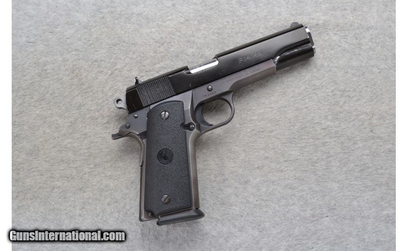 Description: This Para USA Model P14-45 is a semi-auto pistol in .45 ACP Cal. It has a 5 inch barrel with a rear serrated black slide. A blade front and notch rear sight with 3 white dots. The grip panels are a lightly textured black polymer. SOLD Caliber Info: .45 Auto Chambers: Semi-Auto 13 round magazine. Metal Condition: Very good with some minor surface handling marks. Wood Condition: Grips are in excellent condition. Bore Condition: Very good. Barrels: 5 inches with a rear serrated black slide. Triggers: Grooved. Solid. Stock: Lightly textured black polymer grip panels. Weight: 43 oz. Sights: Blade front. Notch rear. 3 white dot. Item Location: Richfield, WI |