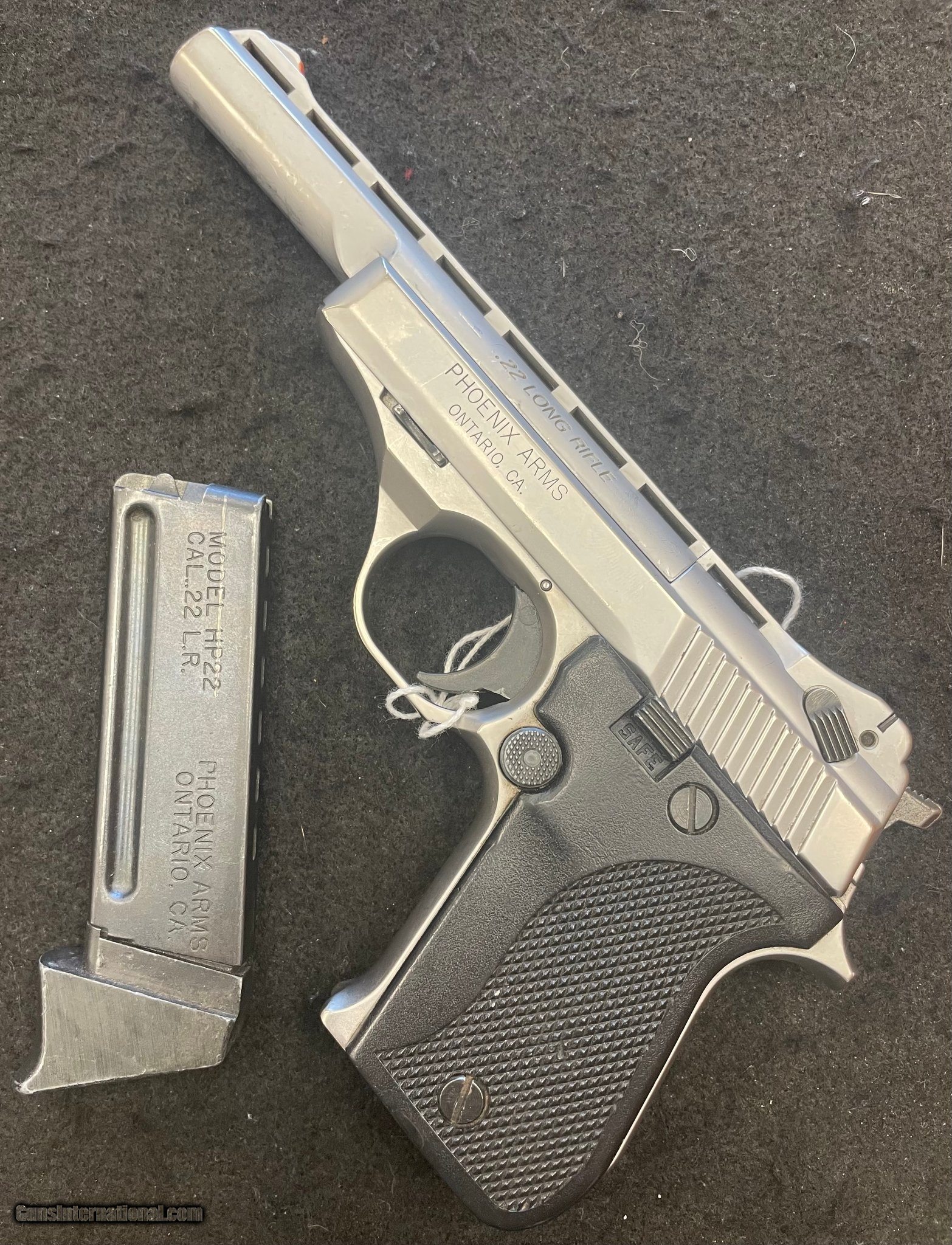 Description: Guns Listing ID: 1363154 Phoenix Arms HP22 Silver and black 19 rounds One mag 22LR Great shape #12266 SOLD Manufacturer: PHOENIX ARMS Model: HP 22 Caliber Info: .22 LR Condition: Used - Non-Certified Barrels: 3.5 BARREL Finish: SILVER AND BLACK |