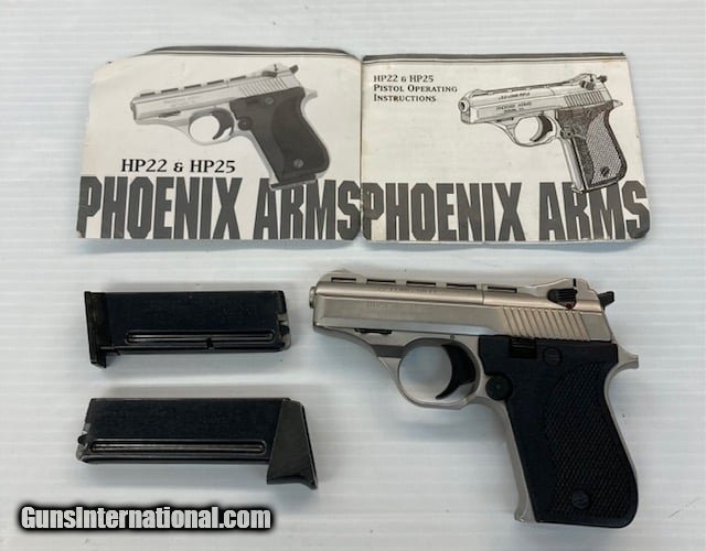 Description: Guns Listing ID: 395557 This 22LR pistol is in very good condition as you can see from the listing photos with slight wear from little use. This pistol comes with factory paperwork and 2 magazines. Buy with confidence!!! SOLD Manufacturer: PHOENIX ARMS Model: HP 22 Caliber Info: .22 LR Condition: Used - Non-Certified Barrels: 3 BARREL Action: SEMI AUTOMATIC Finish: STAINLESS Weight: not specified |