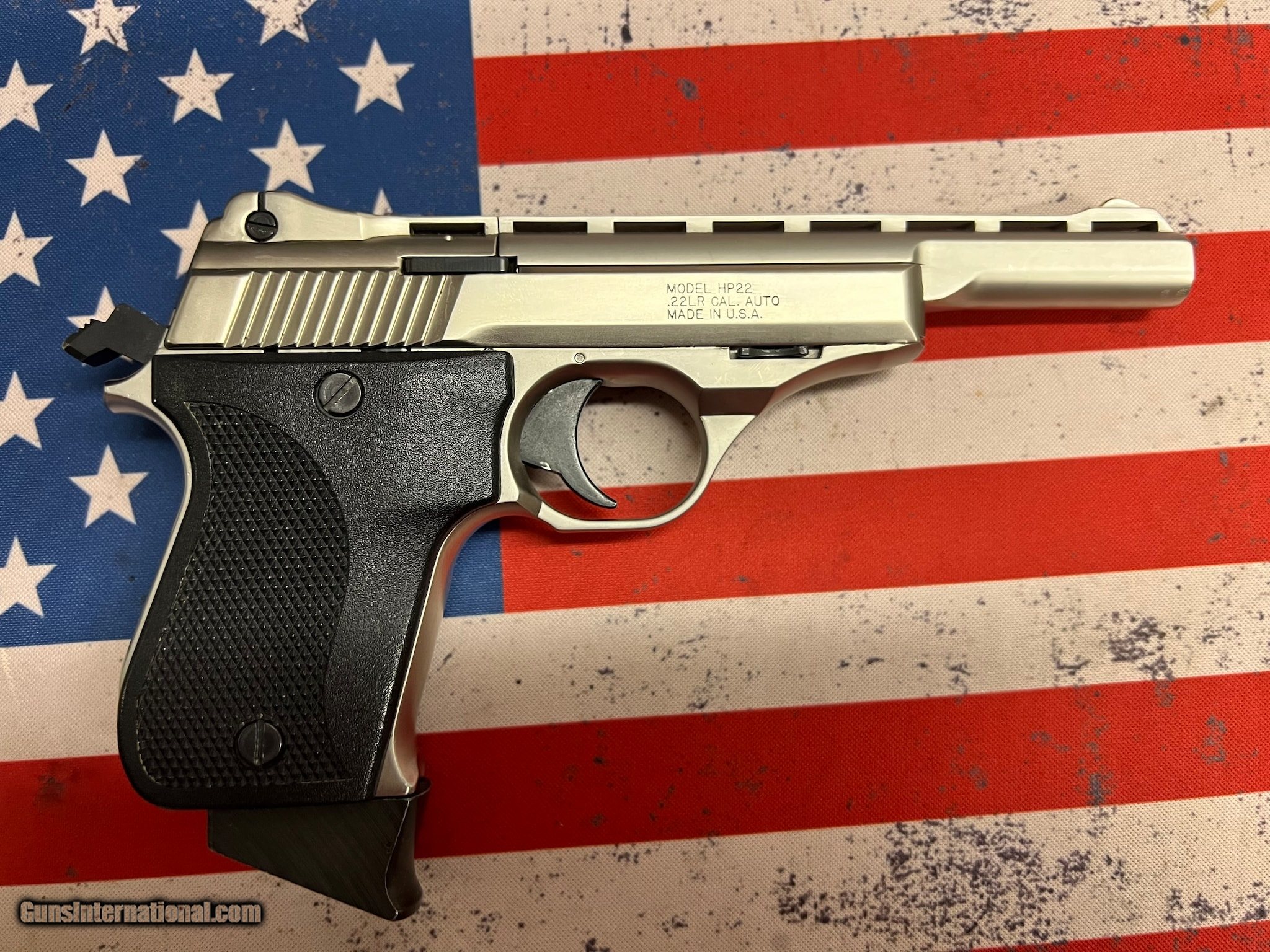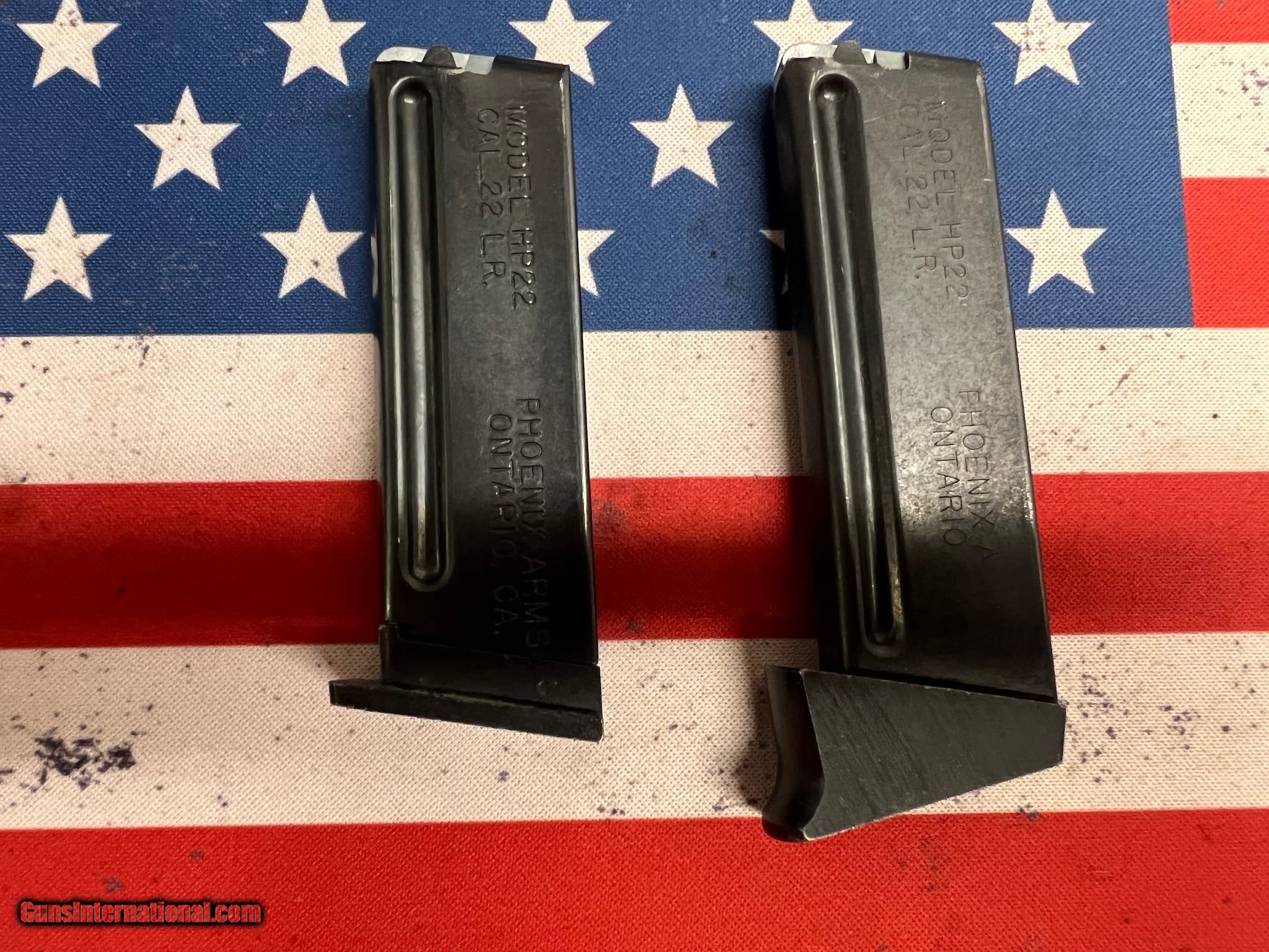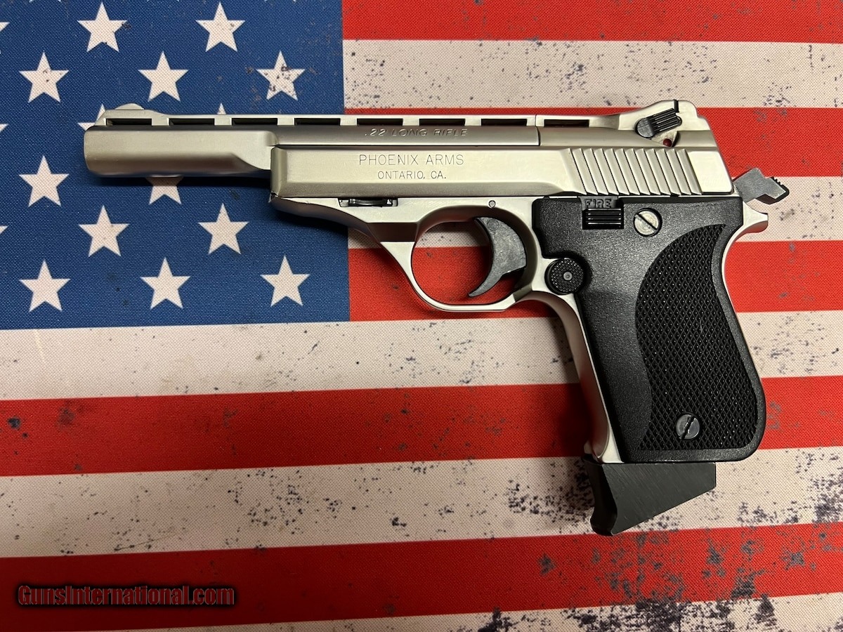 Description: Guns Listing ID: 361578 Phoenix arms HP22. 22 long rifle with a 5 inch barrel and two magazines one with a finger extension. In great shape appears the hardly been fired finishes in excellent shape. No owners manual or back. SOLD Manufacturer: PHOENIX ARMS Model: HP 22 Caliber Info: 22 LR Condition: Used - Non-Certified Barrels: 5 BARREL Finish: SATIN NICKEL |