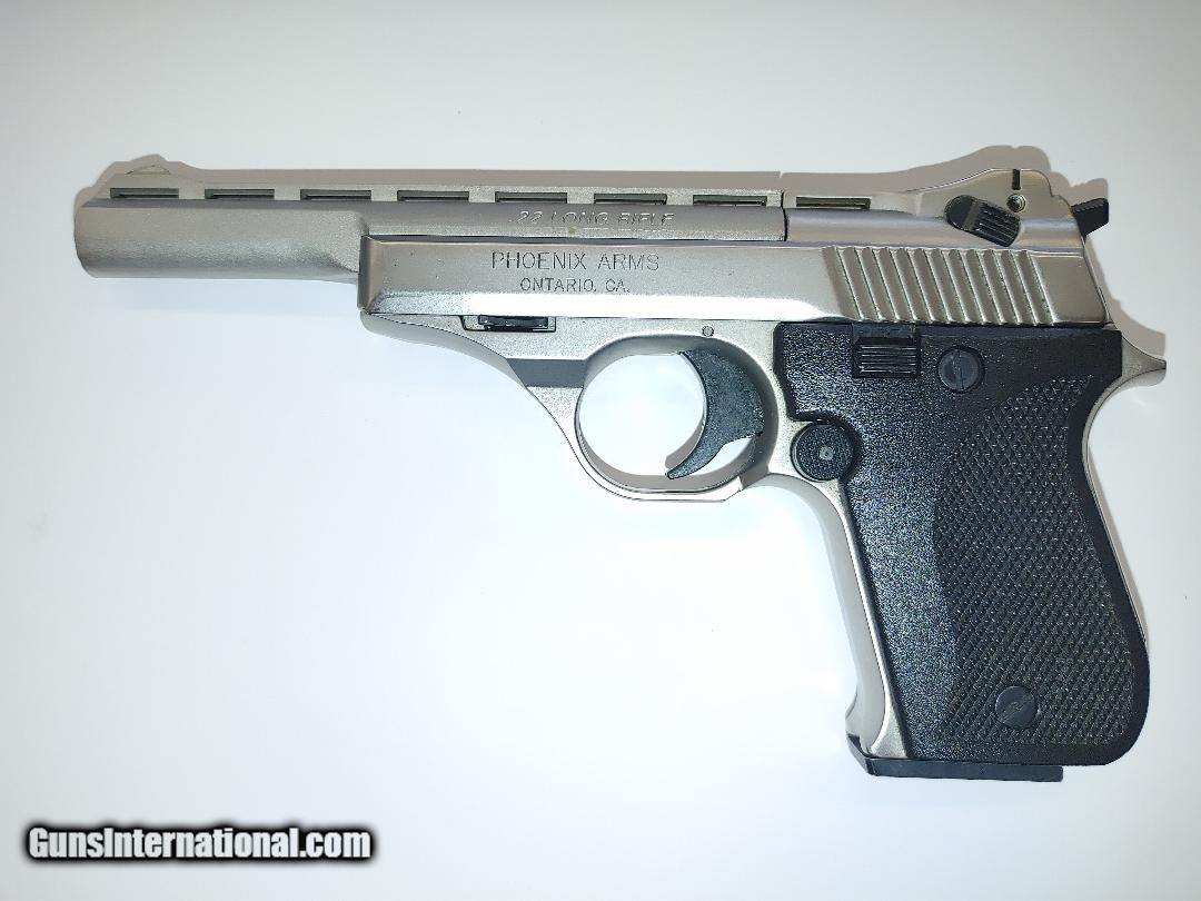 Description: Guns Listing ID: 604448 Phoenix Arms HP-22 with factory box 5\" barrel SOLD Manufacturer: PHOENIX ARMS Model: HP 22 Caliber Info: 22 LR Condition: Used - Non-Certified Barrels: 5 BARREL Finish: STAINLESS |