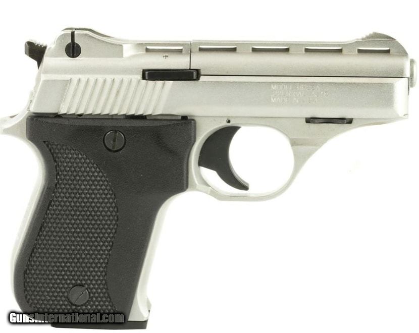 Description: Guns Listing ID: 22411 The Phoenix Arms HP22A is a single action semi-automatic pistol chambered in 22 LR that owes its compact 4.1 by 5.5 size in part to its staggered magazine. This handgun additionally features an alloy frame plastic grips and a vented rib 3 barrel. The HP22A also offers a serrated trigger adjustable rear sight magazine interlock with manual slide hold open external hammer and firing pin block safety. This pistol is designed for high velocity ammunition. Details PHX HP22 22LR 1RD 3IN NKLBLK NICKEL FINISH SOLD Manufacturer: PHOENIX ARMS Model: HP22 Caliber Info: .22 LR Condition: new Barrels: 3" barrel Finish: BLACK AND NICKEL |
