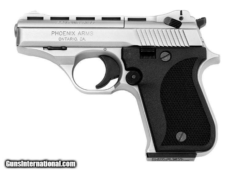 Description: Guns Listing ID: 52667 The Phoenix Arms HP22A is a single action semi-automatic pistol chambered in 22 LR that owes its compact 4.1 by 5.5 size in part to its staggered magazine. This handgun additionally features an alloy frame plastic grips and a vented rib 3 barrel. The HP22A also offers a serrated trigger adjustable rear sight magazine interlock with manual slide hold open external hammer and firing pin block safety. This pistol is designed for high velocity ammunition. Details PHX HP22 22LR 1RD 3IN NKLBLK NICKEL FINISH SOLD Manufacturer: PHOENIX ARMS Model: HP22 Caliber Info: .22 LR Condition: new Barrels: 3" barrel Finish: BLACK AND NICKEL |