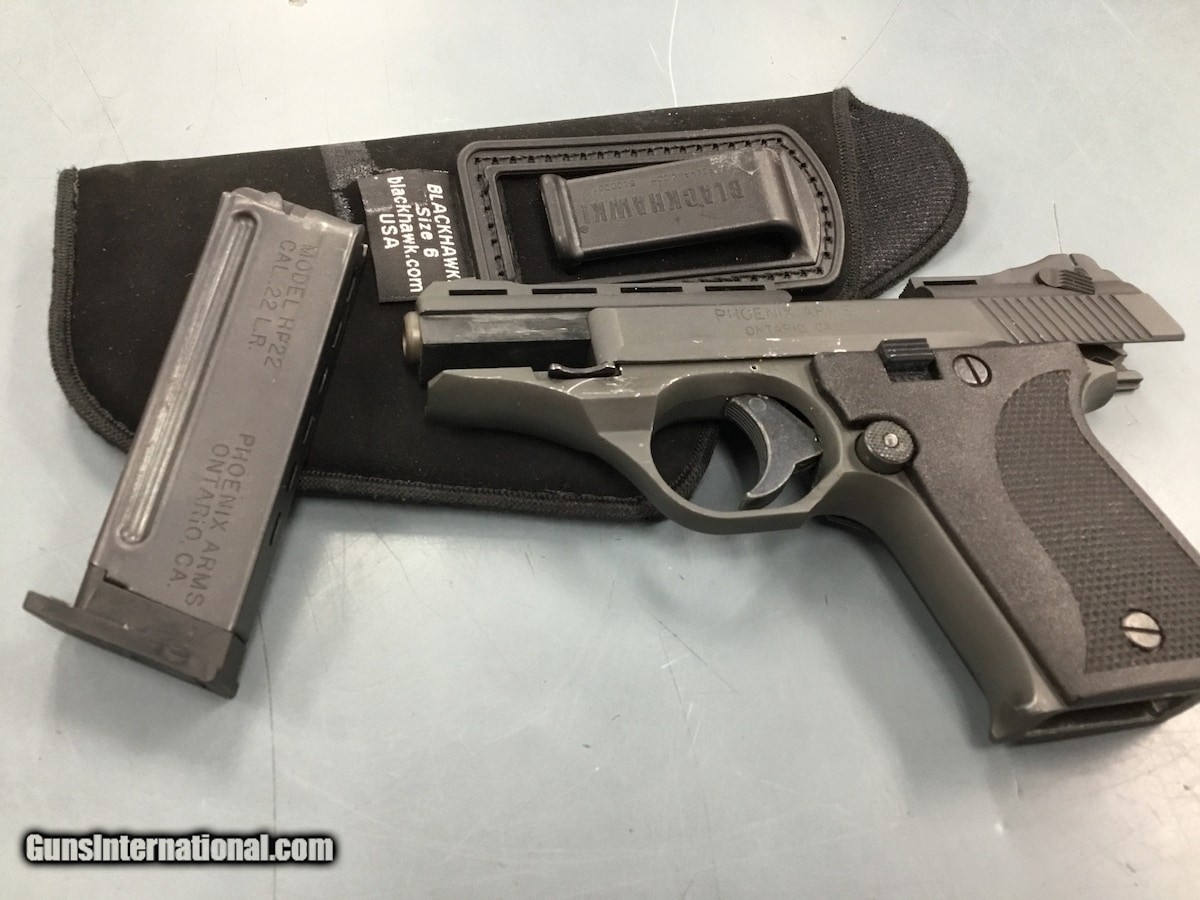 Description: Guns Listing ID: 668870 Comes only with a Blackhawk holster SOLD Manufacturer: PHOENIX ARMS Model: HP22A Caliber Info: 22 LR Condition: Used - Non-Certified Barrels: 3 BARREL Finish: BLACK |
