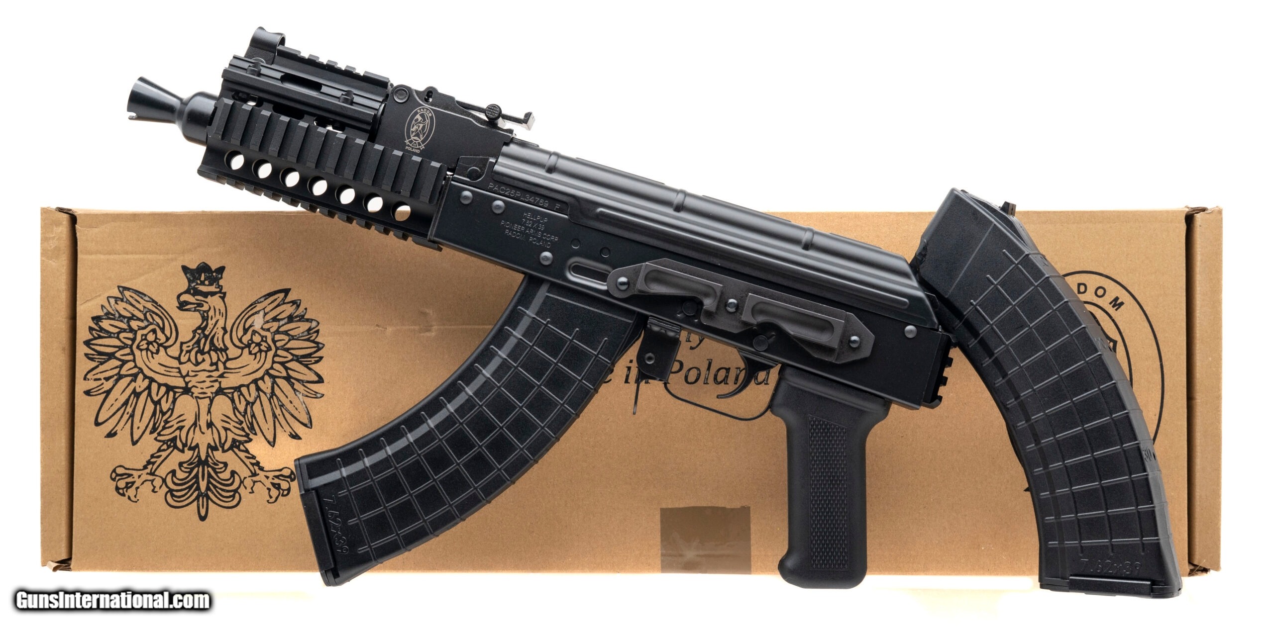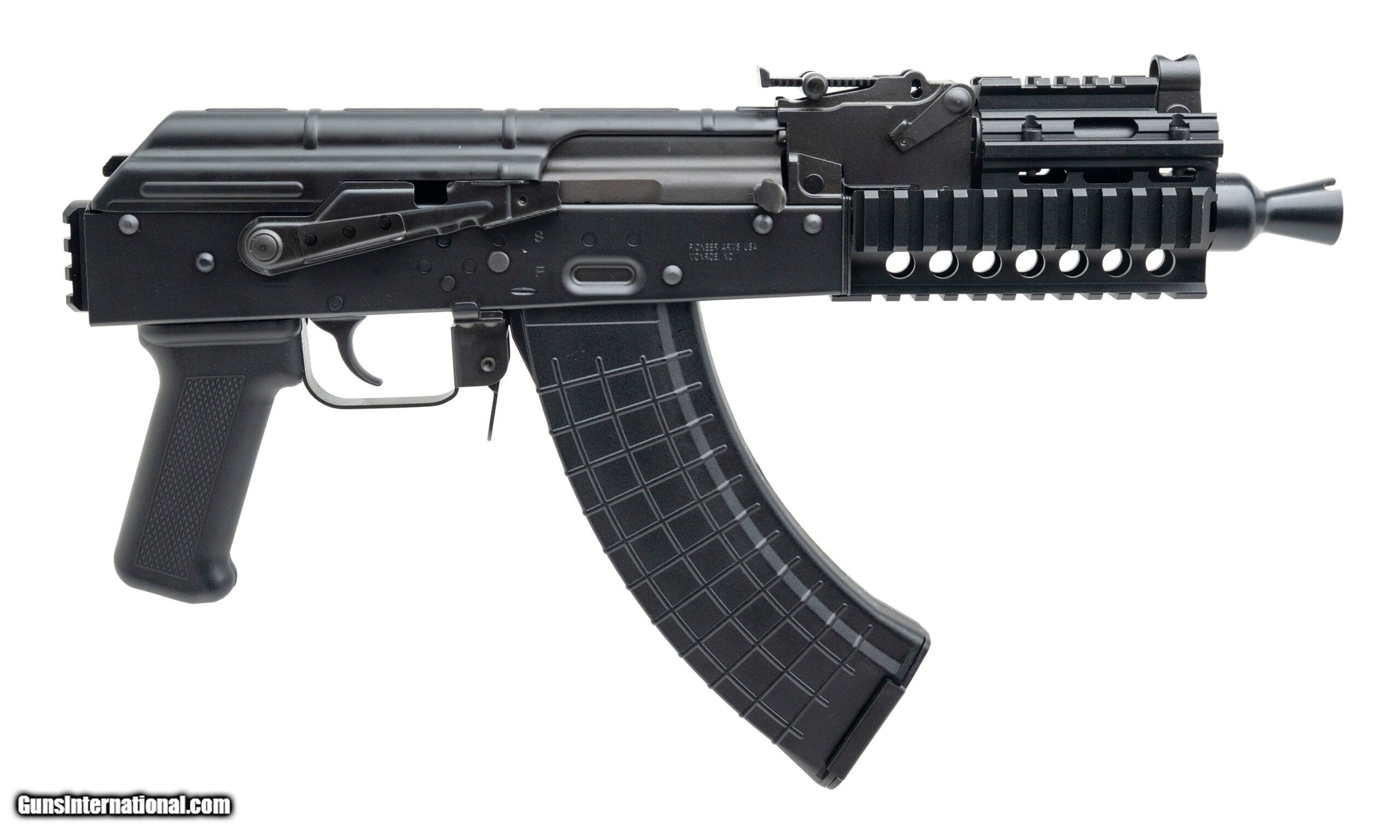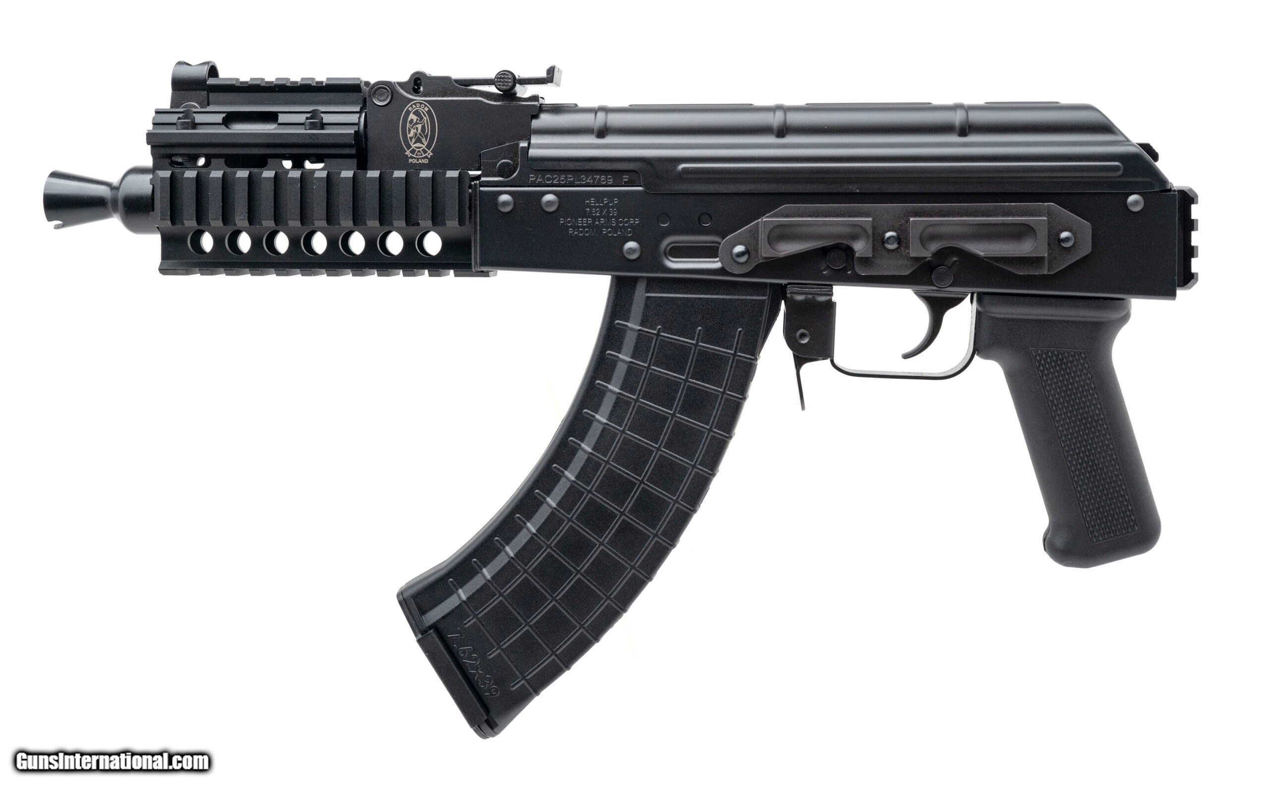 Description: "Polish Made Semi-Auto Tactical AK Pistol with a 7"" Barrel w/Flash Hider. Side Mounting Optic Rail, Picatinny Quad Rail Handguard, Blued Finish, and Black Synthetic Pistol Grip. Includes 2-30rd Magazines. NEW. UPC: 850045874803 (STOCK PHOTO) SOLD |