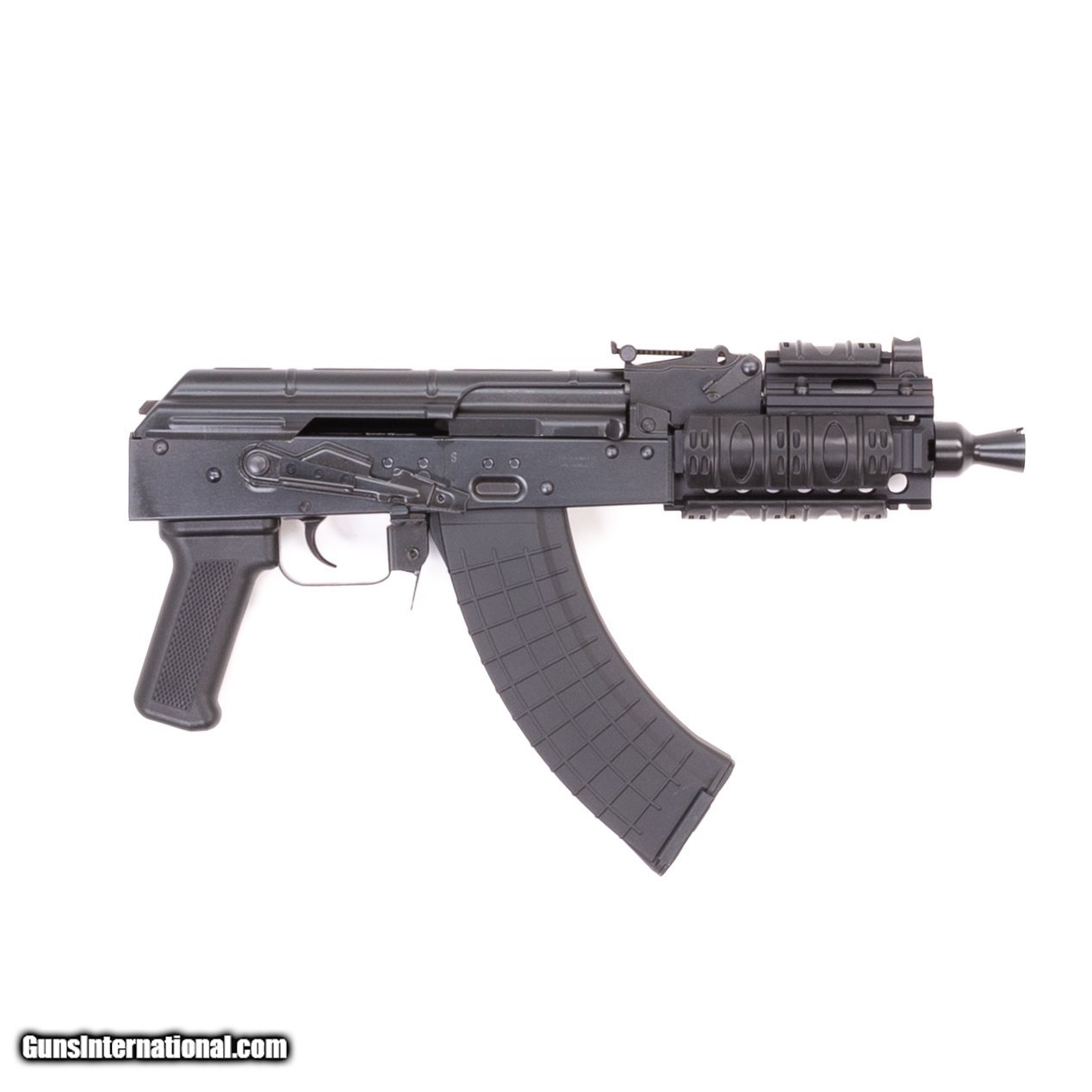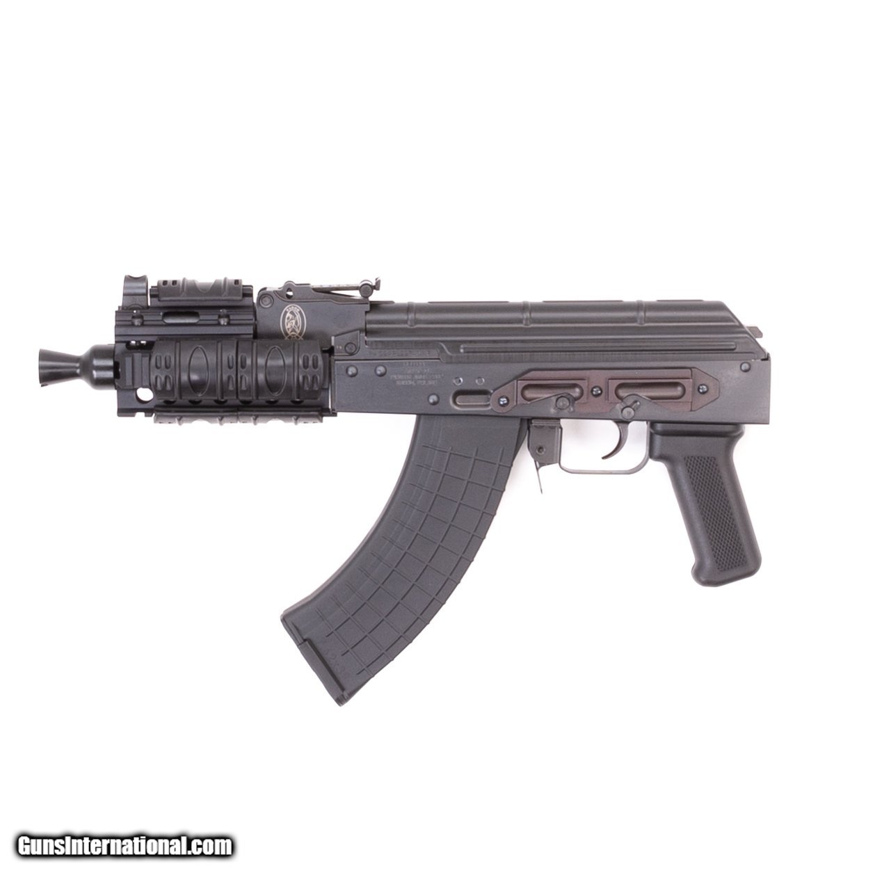 Description: Guns Listing ID: 396414 Imported Polish AK47 Hellpuppy Pistol. Semi automatic AK47 pistol with a 7\" barrel. This compact model of the popular Hellpup AK47 pistol features a quad rail with rail covers and a traditional side optic rail. Short & Sassy this little pistol packs a punch and will really turn heads at the range & is a great option for a SBR RIfle. Manufactured in Radom Poland this well built AK47 has all of the features you need and expect. Comes with traditional rear sight and additionally, a rear sight picatinny optics rail. This makes for a great truck, home defense or sporting gun. Comes with 4-30 round magazines. Polish AK47 Hellpuppy Pistol AK0031-K-R UPC 850045874636 7.62x39 Semi Automatic 7\" Barrel Nitride treated 14x1 left thread Quad Rail for mounting Rail Covers Forged barrel trunnion Bolt hold open safety Side Optic Rail Mini Booster Muzzle Device Threaded Barrel Traditional Rear Sight Rear Sight Picatinny Optics Rail Stamped 1mm Receiver 4-30 Round Magazines SOLD Manufacturer: PIONEER ARMS CORP. Model: HELLPUPPY Caliber Info: 7.62X39MM Condition: new Barrels: 7 BARREL Action: SEMI AUTOMATIC Finish: BLACK Weight: 6.5 LBS. |