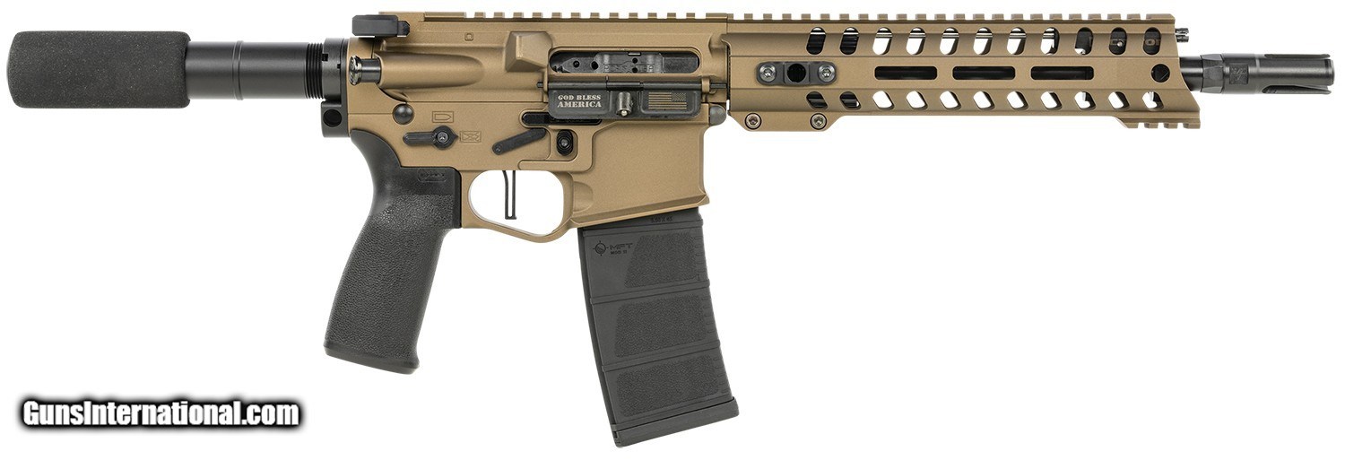 Description: Patriot Ordnance Factory 01793 Renegade + Direct Impingement 5.56x45mm NATO Caliber with 10.50" Barrel, 30+1 Capacity, Burnt Bronze Metal Finish, Buffer Tube Stock, Black Polymer Grip, 9" M-LOK Handguard & Gen4 Lower Right Hand ON ITS BEST PRICE! BUY NOW!! The Renegade Plus Pistol embodies everything a direct impingement AR-15 can be. POF has taken the same specs and features and condensed it into the best AR Pistol on the market. With improvements such as our roller cam pin and patented heat sink barrel nut, these upgrades go well above mere aesthetics often found in firearms today. Put simply, the Renegade Plus Pistol addresses all of the weak points of the direct impingement system. The Dictator 9-position adjustable gas block gives you ultimate control of your pistol, whether tuning for ammo load or suppressor use. The straight gas tube eliminates heat build up from the weak points of standard gas tubes. And the roller cam pin ensures a smooth and more reliable relationship with the upper receiver. The Renegade + Pistol is built off of our Gen 4 billet lower receiver. This receiver is completely ambidextrous and includes our flat 3.5 lb match grade trigger with KNS Precision anti-walk pins. The Renegade + Pistol comes with our M-LOK compatible Renegade rail, covering the 10.5 nitride heat-treated barrel.