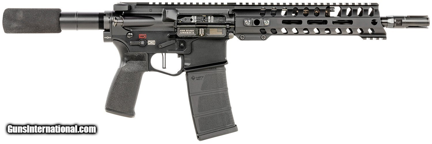 Description: Patriot Ordnance Factory 01796 Renegade + Direct Impingement 300 Blackout Caliber with 10.50" Barrel, 30+1 Capacity, Black Anodized Metal Finish, Buffer Tube Stock, Black Polymer Grip & 9" M-LOK Handguard Right Hand ON ITS BEST PRICE! BUY NOW!! The Renegade Plus Pistol embodies everything a direct impingement AR-15 can be. POF has taken the same specs and features and condensed it into the best AR Pistol on the market. With improvements such as our roller cam pin and patented heat sink barrel nut, these upgrades go well above mere aesthetics often found in firearms today. Put simply, the Renegade Plus Pistol addresses all of the weak points of the direct impingement system. The Dictator 9-position adjustable gas block gives you ultimate control of your pistol, whether tuning for ammo load or suppressor use. The straight gas tube eliminates heat build up from the weak points of standard gas tubes. And the roller cam pin ensures a smooth and more reliable relationship with the upper receiver. The Renegade + Pistol is built off of our Gen 4 billet lower receiver. This receiver is completely ambidextrous and includes our flat 3.5 lb match grade trigger with KNS Precision anti-walk pins. The Renegade + Pistol comes with our M-LOK compatible Renegade rail, covering the 10.5 nitride heat-treated barrel.