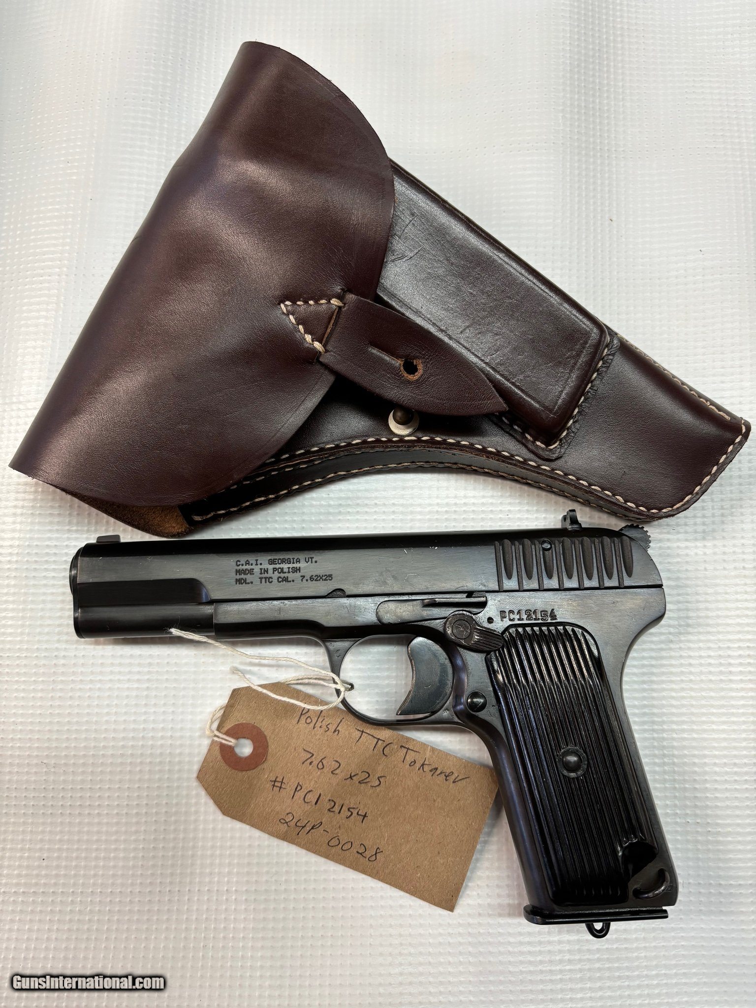 Description: Guns Listing ID: 1302973 This is a super nice Polish TTC Tokarev pistol, chambered in 7.62x25mm Tokarev. Comes with two 7 round capacity magazines and its original holster. This specific example was produced at the Radom factory in 1952, and has a matching slide and frame. Has a deep blued finish and a great single action trigger. Is an awesome and very shootable piece of both World War 2 and Cold War European history. SOLD Manufacturer: F.B. RADOM Model: TTC Tokarev Caliber Info: 7.62X25MM TOKAREV Condition: Used - Non-Certified Barrels: 4.6 BARREL Finish: BLUED |