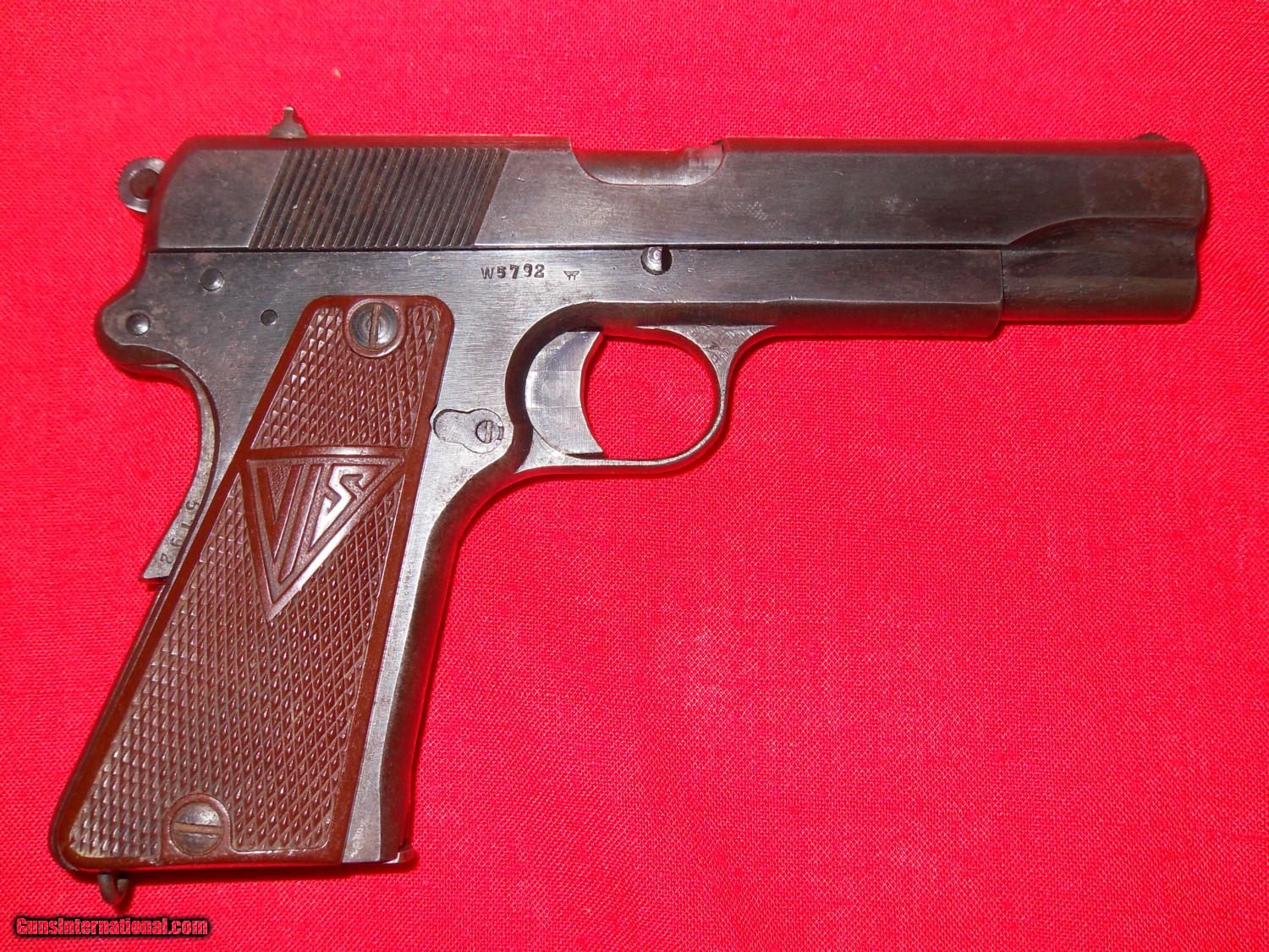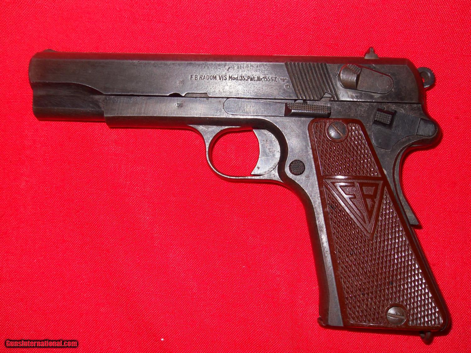 Description: F.B. Radom, VIS Mod 35, 9mm, Serial W5792, ALL numbers match, ALL German markings correct, correct mag, type 2 rough finish, checkered brown grips with FB on left, VIS on right, bore very good, function fine. Questions 270-354-6279 SOLD Curio/Relic: Yes Manufacturer: F.B. Radom Model: VIS 35 Serial Number: W5792 Caliber Info: 9mm Condition: VERY GOOD |