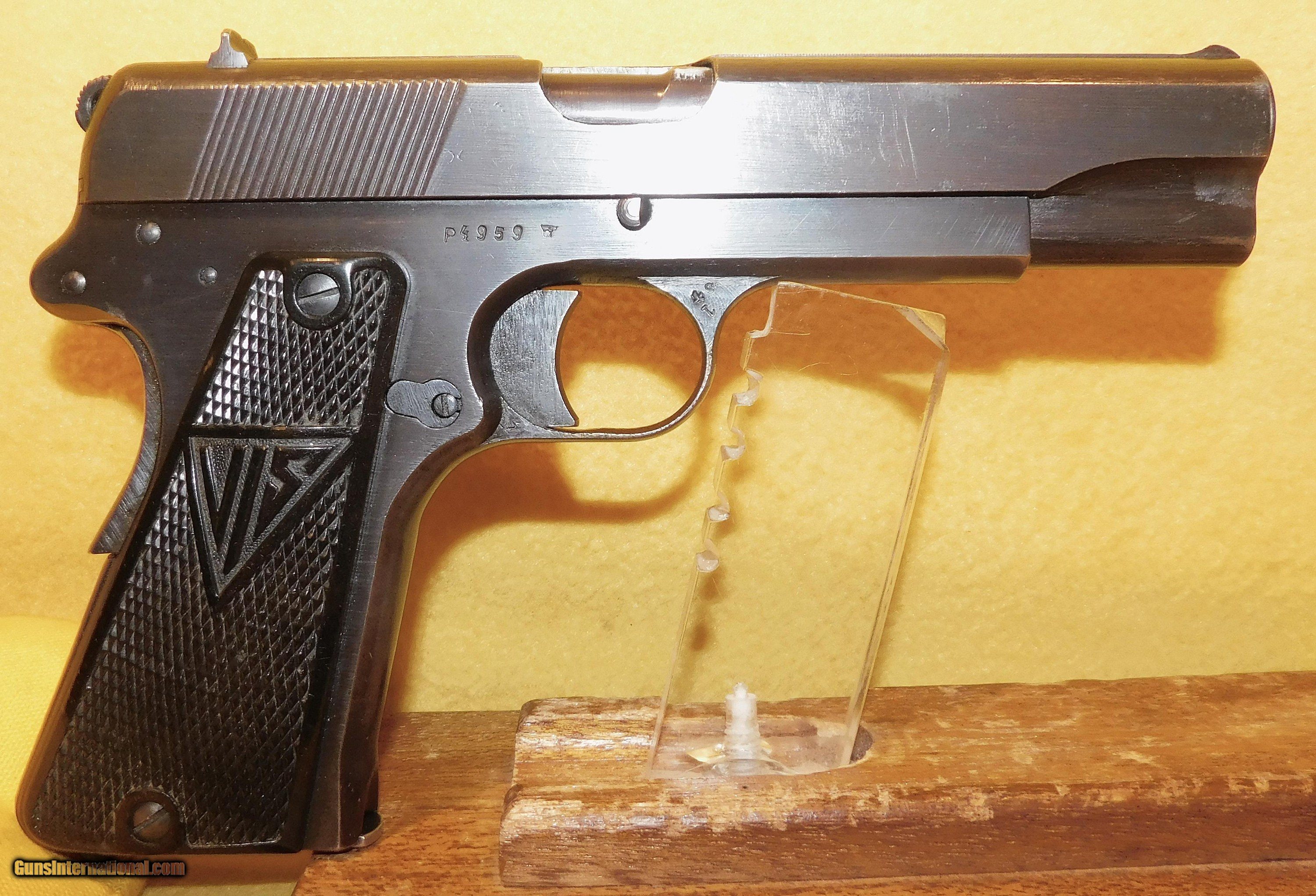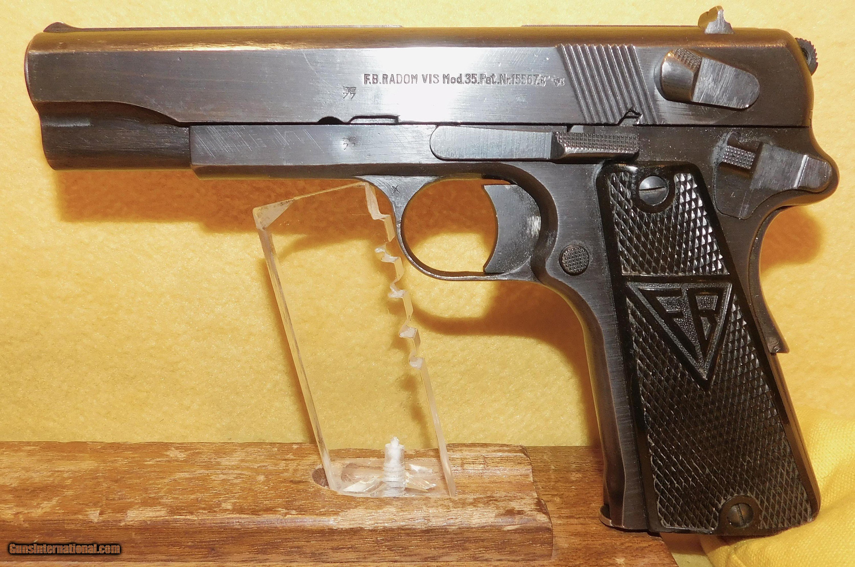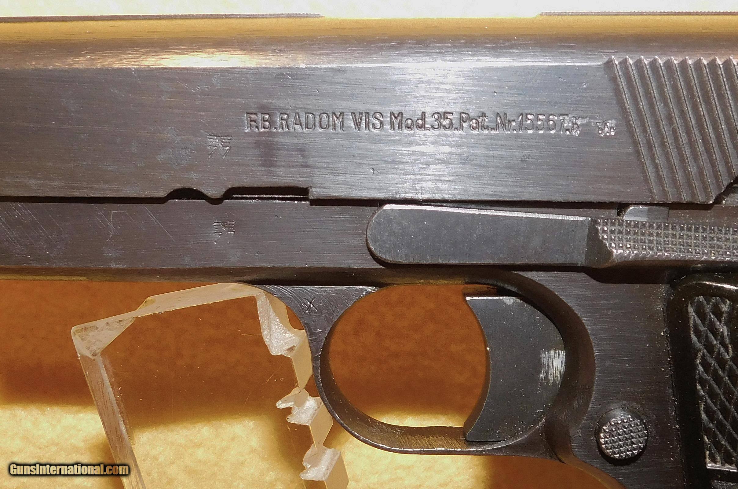 Description: F.B. RADOM VIS P35 (RADOM) IN 9MM CAL., WITH 4 .5" BARREL. COLOR BLUE. CONDITION 95%+. SERIAL NUMBER P4959. F.B. RADOM VIS MODEL P35 9MM CALIBER, MIRROR BORE, GRIP PANELS EXCELLENT, PROPER WAFFEN MARKS, COMES WITH TWO ORIGINAL FACTORY MAGAZINES, 95%+ OVERALL CONDITION, OUR STOCK # D7823. SOLD |