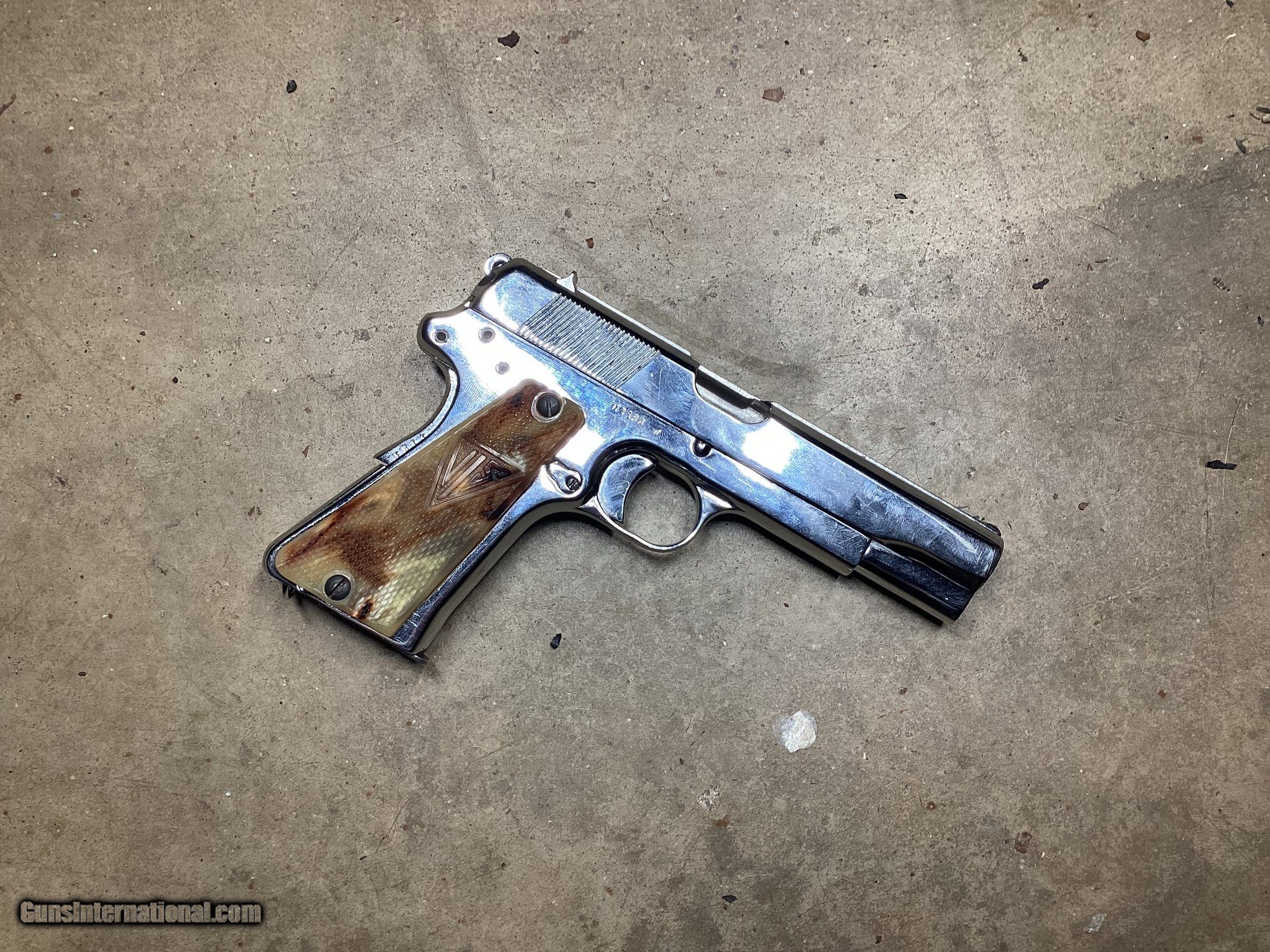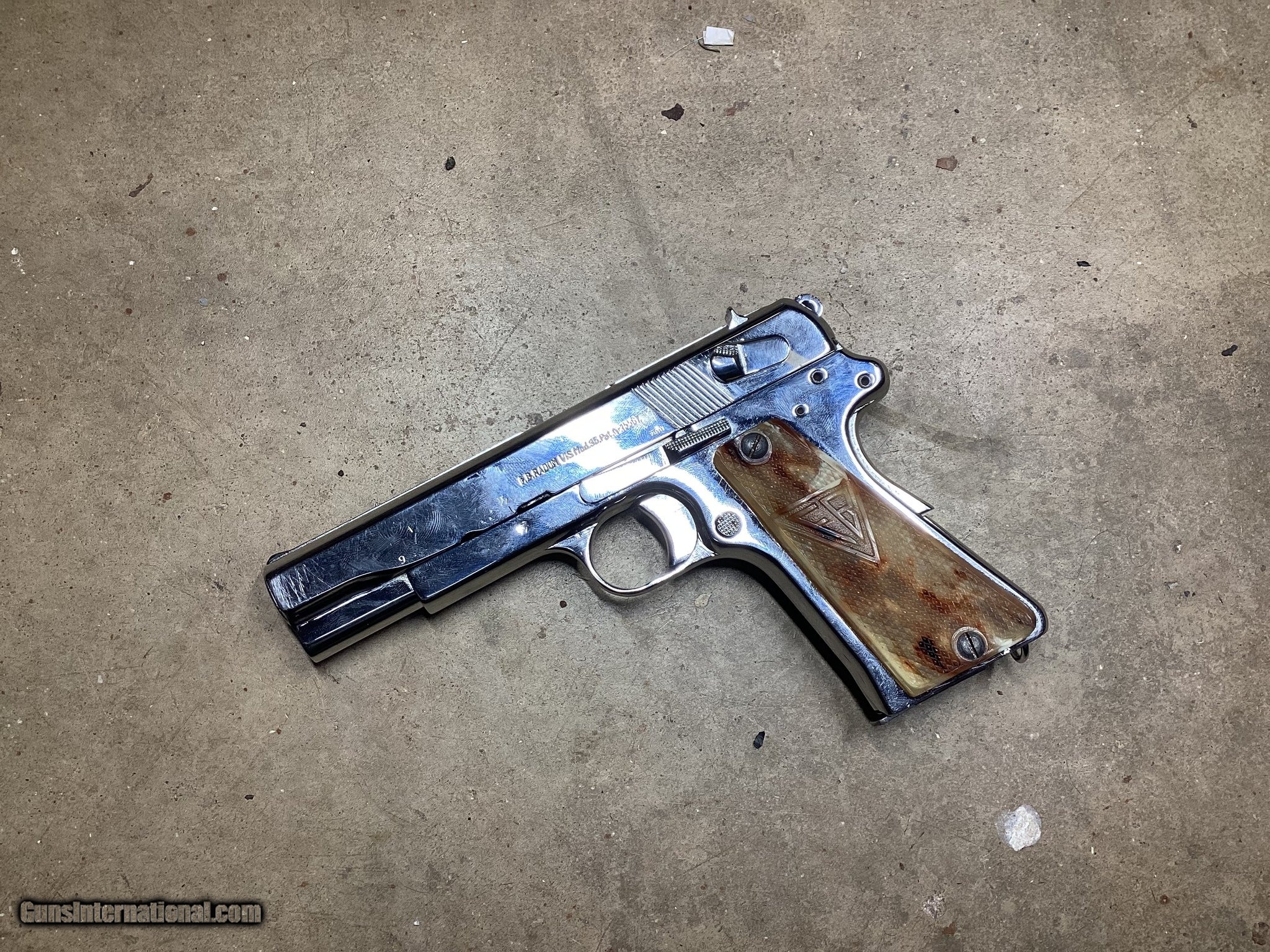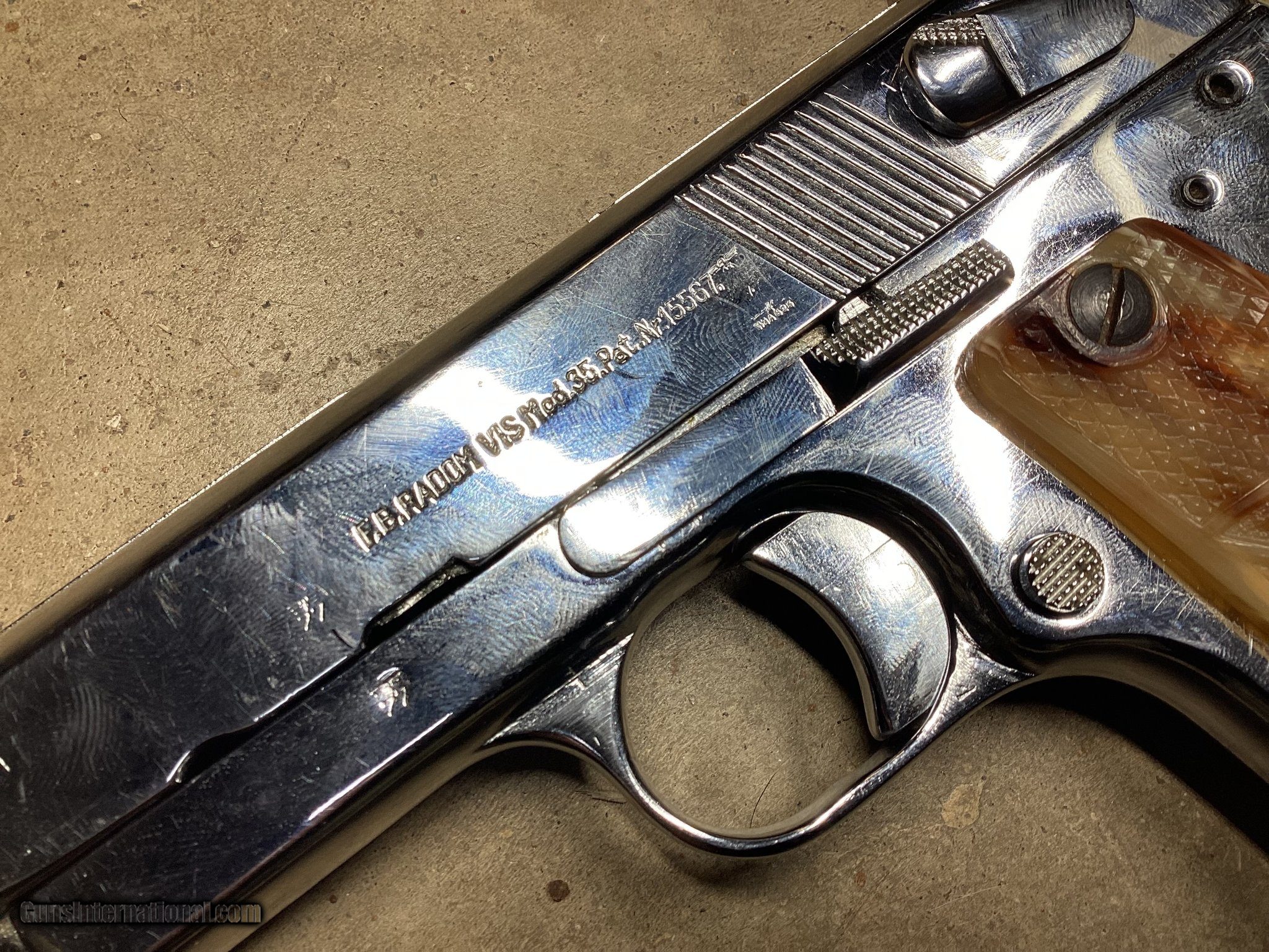 Description: Guns Listing ID: 496349 Wow! Just Wow! This may truly be a one of a kind piece! This iconic Polish pistol, made at the FB Radom factory in Radom Poland was made late during WWII under German occupation and has the marks to prove it! This is a type 3 which can be indicated by the pins in place of the rear takedown lever. It was refinished with a Chrome finish, and has what appear to be custom grips! It is a unique piece that is sure to be a conversation starter! Don’t miss out! SOLD Manufacturer: F.B. RADOM Model: WWII Chrome Finish Custom VIS 35 Caliber Info: 9MM LUGER (9x19 PARA) Condition: Used - Non-Certified Barrels: 4.7 BARREL Action: SEMI AUTOMATIC Finish: chrome |
