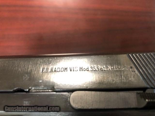 Description: This Radom VIS is a real beauty, blued finish at 90%. Model 35 15567, serial 7908, with eagle 77 stamps, lanyard ring, 3 lever, black grips, 1 magazine. Exceptionally good condition, fully functioning. Make an offer! SOLD Curio/Relic: Yes Manufacturer: Radom Model: 35 Caliber Info: 9 mm Condition: Very good |