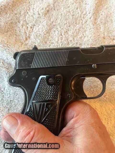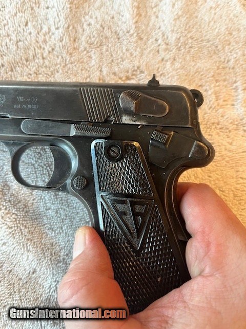 Description: Here's an original numbers matching Polish Eagle vis 35 9mm with original holster and mag. Functions perfectly, but has some pitting on both sides of the slide, bluing is thinning on some areas, but overall still lots of bluing. Grips are original and in perfect condition, bore is in good condition also. Slide, barrel and frame all matching numbers. Zelle, Cashiers, USPS MO, Debit/Credit add 3% SOLD |