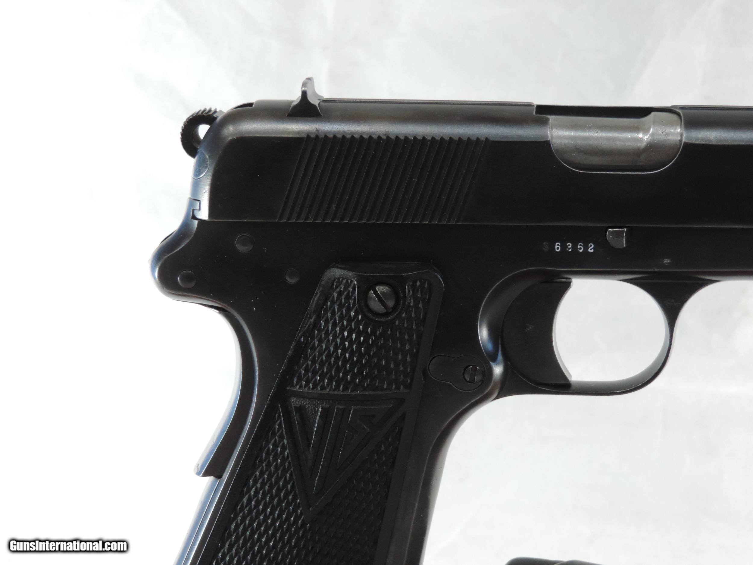 Description: INV. 8905 POLISH EAGLE RADOM VIS P.35, CAL. 9MM, SER 36362. THIS RARE BEAUTY HAS RETAINED ABOUT 98% OF A PROFESSIONAL RESTORATION. ALL PARTS, THE SLIDE, FRAME AND BARREL, MATCH. THE REPLACEMENT GRIPS AND GRIP SCREWS ARE IN PERFECT CONDITION. THE SLIDE RAILS, BOLT FACE AND FEED RAMP SHOW LITTLE IF ANY USE. THE BORE IS SUPER, MIRROR BRIGHT WITH RAZOR SHARP RIFLING AND JUST A WHISP OF LIGHT FROST. IT COMES WITH ONE ORIGINAL VIS 35 MAGAZINE. THIS IS A GREAT OPPORTUNITY FOR THE THE COLLECTOR THAT WANTS A NICE EXAMPLE OF THIS RARE PRE-NAZI ICON WITHOUT HAVING TO SELL THE FARM. MODESTLY PRICED.....$3895.*** ***100% SATISFACTION GUARANTEED. To purchase this firearm or if you want to request more information contact us at: Email ckguns[at]ymail[dot]com Phone 201-512-0002 Cell 201-575-6838 FAX 201-215-4759 We accept most major credit cards. Prices shown are Discounted 3% for Cash or Check. The buyer must be familiar with all the laws governing the purchase and the ownership of firearms in their own city and state. The Yankee Armorer, Inc is not responsible for any failure to comply with or observe these laws. The Yankee Armorer, Inc will only ship after full payment and receipt of all required documents. Shipping: Add $35.00 for handguns, $45.00 for long guns. New Jersey buyers are subject to a 7% sales tax. The Yankee Armorer, Inc offers a 3 day inspection period with full refund upon return of intact firearm and in the original condition. The Yankee Armorer, Inc offers a no interest lay away program - 25% down; 25% in 30 days; 25% in 60 days; and full payment in 90 days. Any violation of this policy is subject to restocking and forfeiture of all payments. Any variation from this policy must be agreed to in advance. Unshipped Cancelled sales are subject to a 20% restocking fee. Be advised that all firearms sold by The Yankee Armorer, Inc. or the Gun Exchange, LLC (SELLER) are sold as collector’s items. They have not been fired or tested for safety and must be examined by a license gunsmith prior to use. By purchasing any item from the (SELLER), you are agreeing to hold the (SELLER) free from any damages or lawsuits of any nature. Any item left for transfer or storage will be charged to $25.00 per month, per item from the day of its receipt. Any variation from this policy must be agreed to in advance. Store hours 10:00 am to 5:00 pm Tuesday -Saturday. It's always best to call for appointment. Store 201-512-0002, cell 201-575-6838. SOLD |