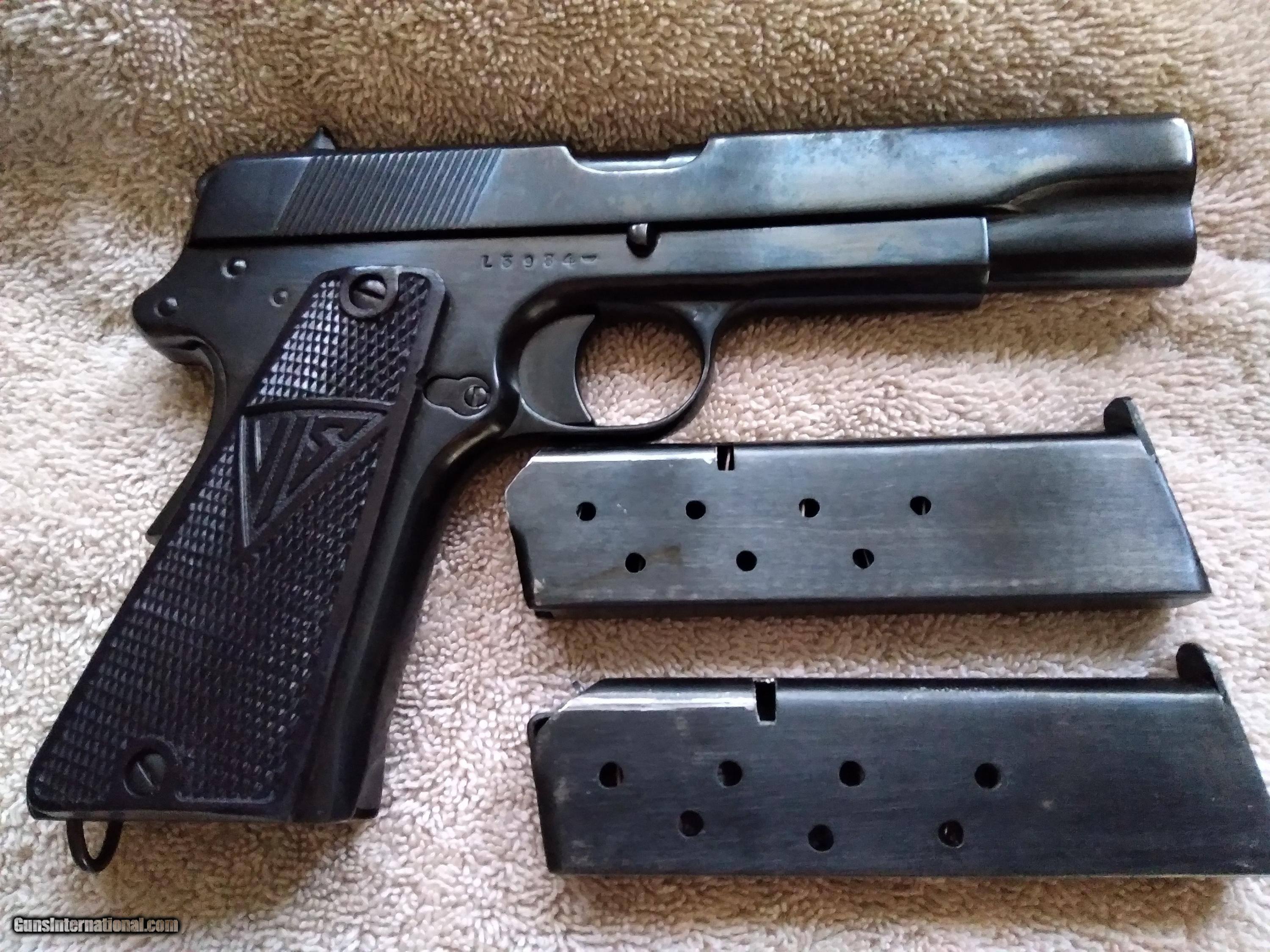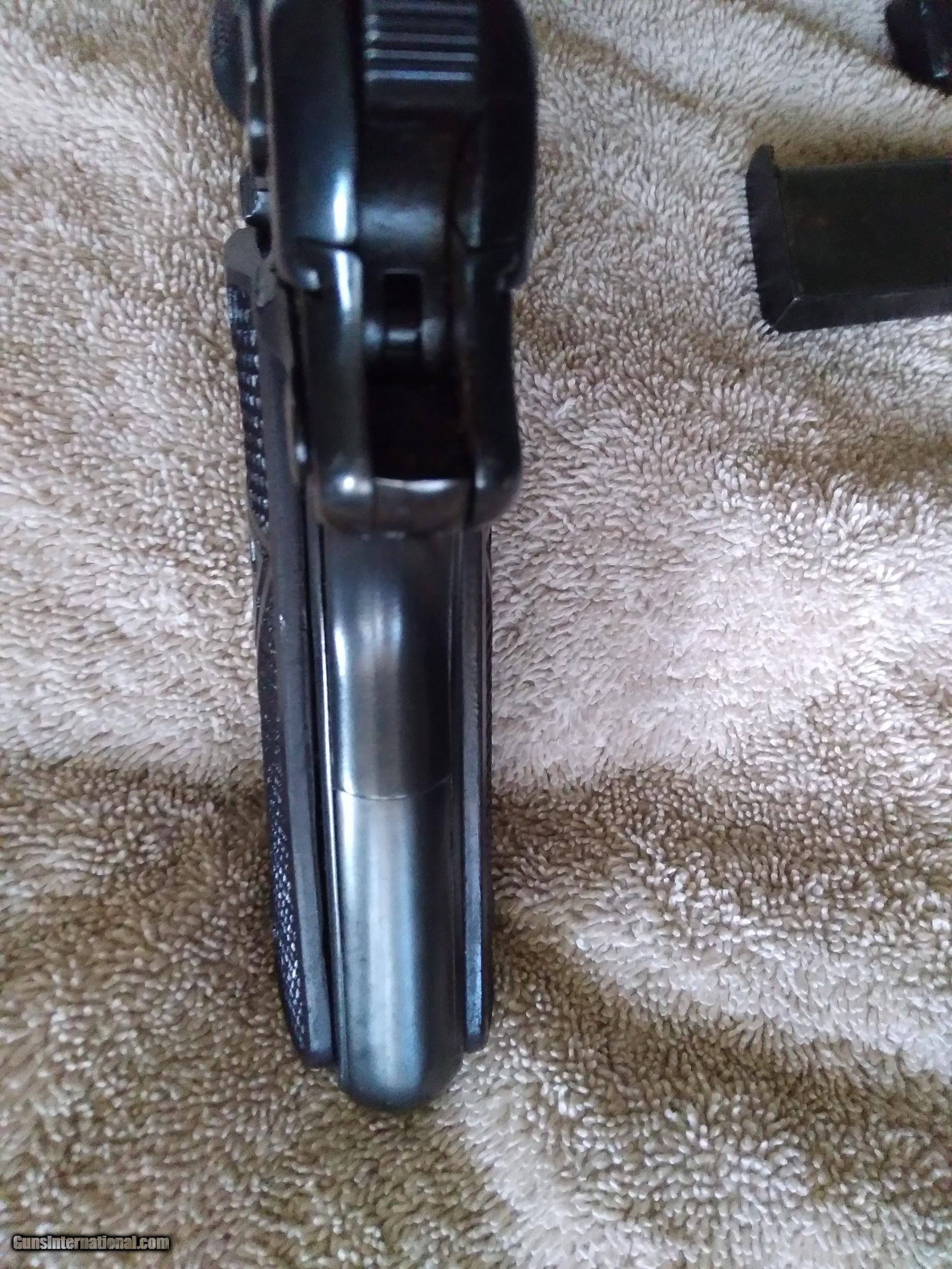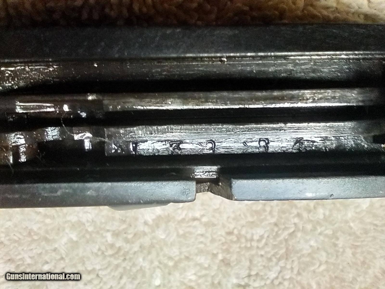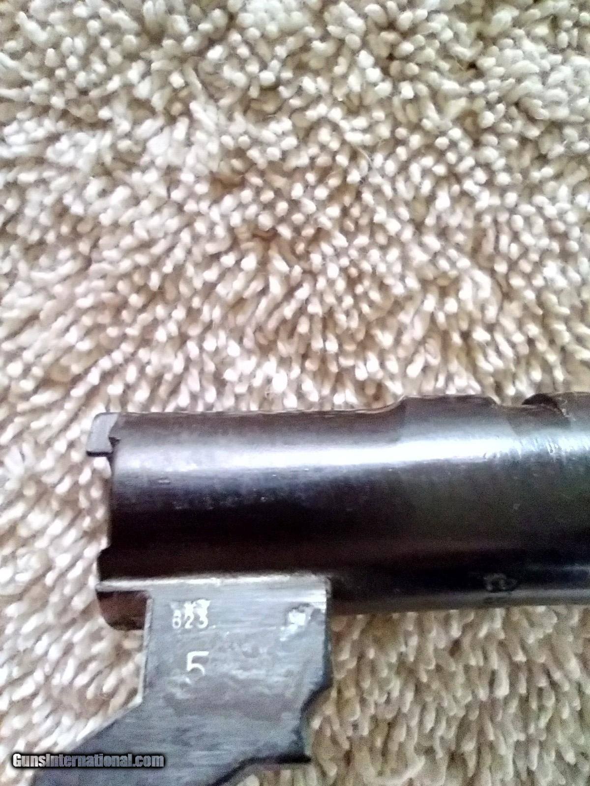 Description: POLISH/ GERMAN F.B. RADOM VIS 35 SEMI AUTOMATIC PISTOL 9mm S/N L3984 RIGHT SIDE OF FRAME ABOVE TRIGGER S/N L3984 INSIDE LEFT SLIDE RAIL GROOVE BELOW SLIDE STOP LATE WAR PRODUCTION 1944/1945 R 35 NAZI RADOM TYPE II THREE LEVER ( HAMMER DROP, TAKEDOWN AND SLIDE STOP ) NOT SLOTTED FOR SHOULDER STOCK REBLUED ( POSSIBLY HOT DIPPED ) WAFFENAMT WaA 77 ON LEFT SIDE OF SLIDE AND FRAME DIFFICULT TO SEE CLEARLY ( SEE PHOTOS ) WAFFENAMT WaA 833 ON LEFT SIDE OF SLIDE IN FRONT OF SLIDE SERRATION DIFFICULT TO SEE CLEARLY ( SEE PHOTOS ) S/N 984 WITH EAGLE WAFFENAMT ON LEFT SIDE OF BARREL LUG WAFFENAMT 823 OVER 5 ON RIGHT SIDE OF BARREL LUG BARREL HAS 883 IN FRONT OF BARREL LUG EXCELLENT BORE NO WEFFENAMT MARKS ON FRAME UNDER GRIPS BLACK PLASTIC FB GRIPS IN EXCELLENT SHAPE HAS LANYARD LOOP WITH A ( S AND G ) EITHER SIDE OF LAYNARD LOOP HAMMER DROP MUST BE PUSHED DOWN FIRMLY PITTING UNDER BLUING LEFT SIDE OF SLIDE ALONG HIGH EDGE PITTING UNDER BLUING RIGHT SIDE OF SLIDE ALONG HIGH EDGE FOR A INCH IN FRONT OF EJECTION PORT MAGAZINES ARE REPLACEMENT AFTERMARKET NOT ORIGIONAL WHITE NAIL POLISH ON FRONT SIGHT HAS BEEN REMOVED Shipping $20.00 USPS SOLD Curio/Relic: Yes Handgun Caliber: 9x19mm Parabellum (9mm Luger, 9x19mm NATO) Manufacturer: RADOM Model: VIS 35 Serial Number: L3984 Barrel Length: 4.75 in Bore: STRONG RIFLING Condition: GOOD Metal Condition: GOOD Bore Condition: Excellent Manufacture Date: 1944-1945 |