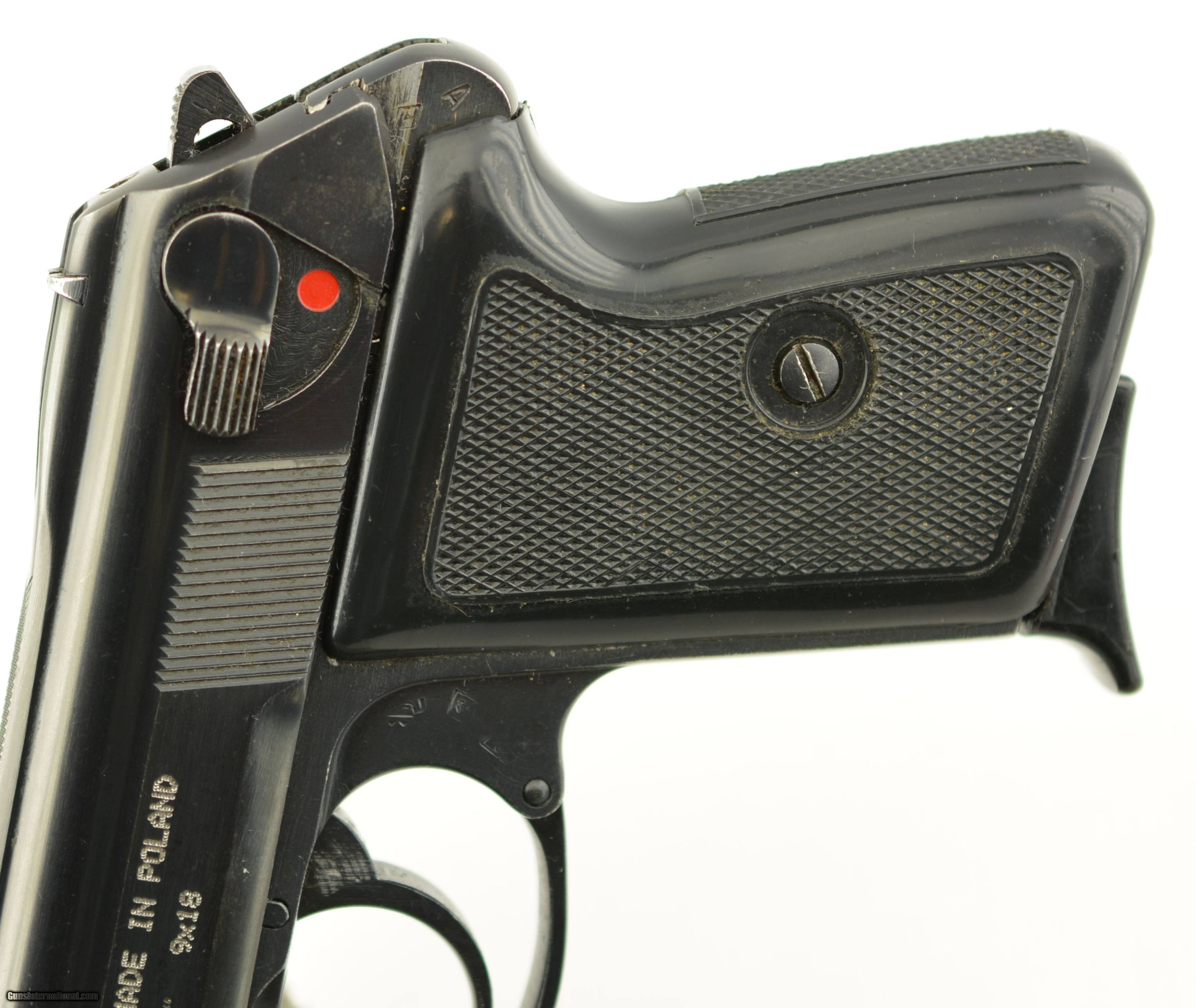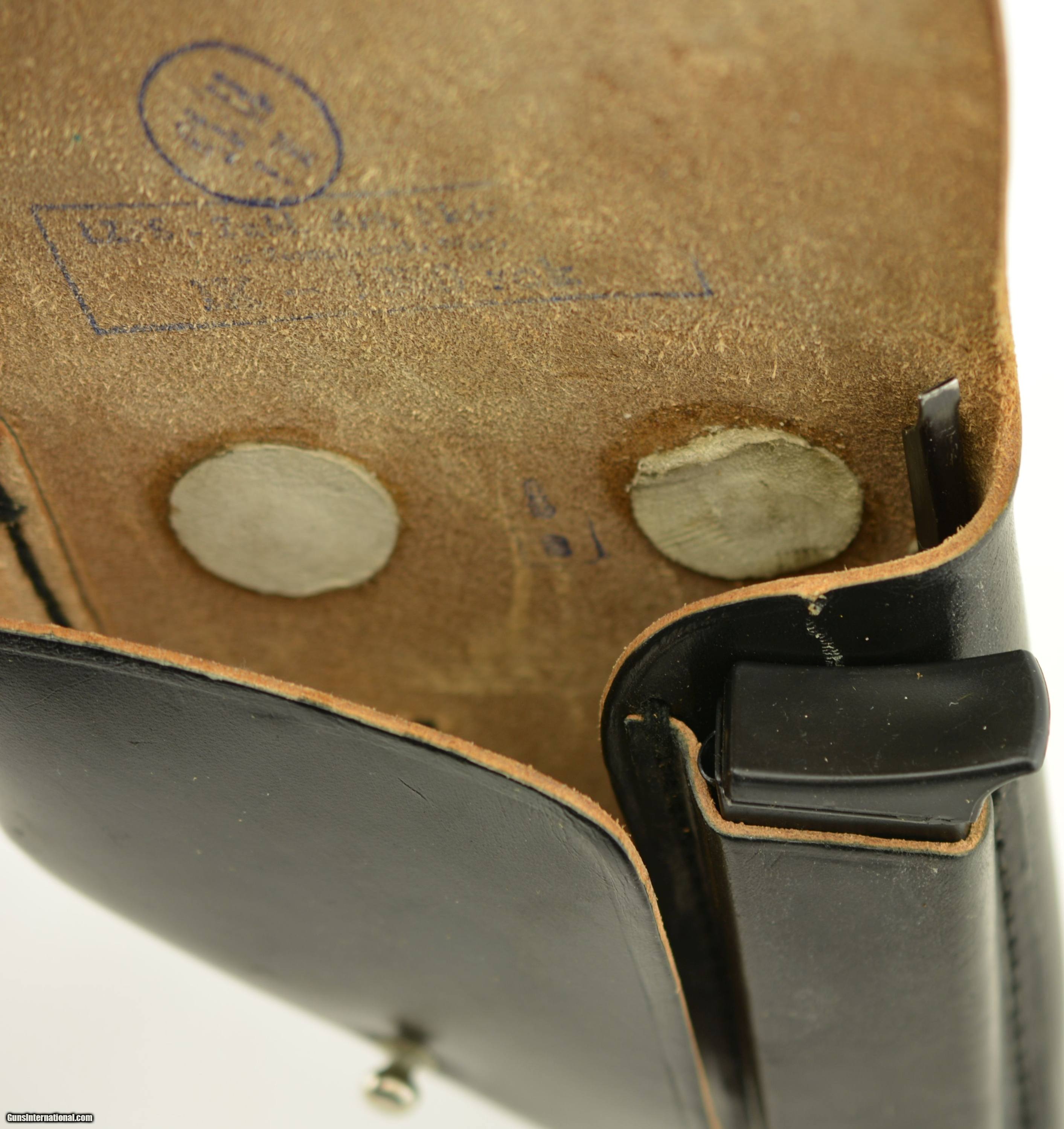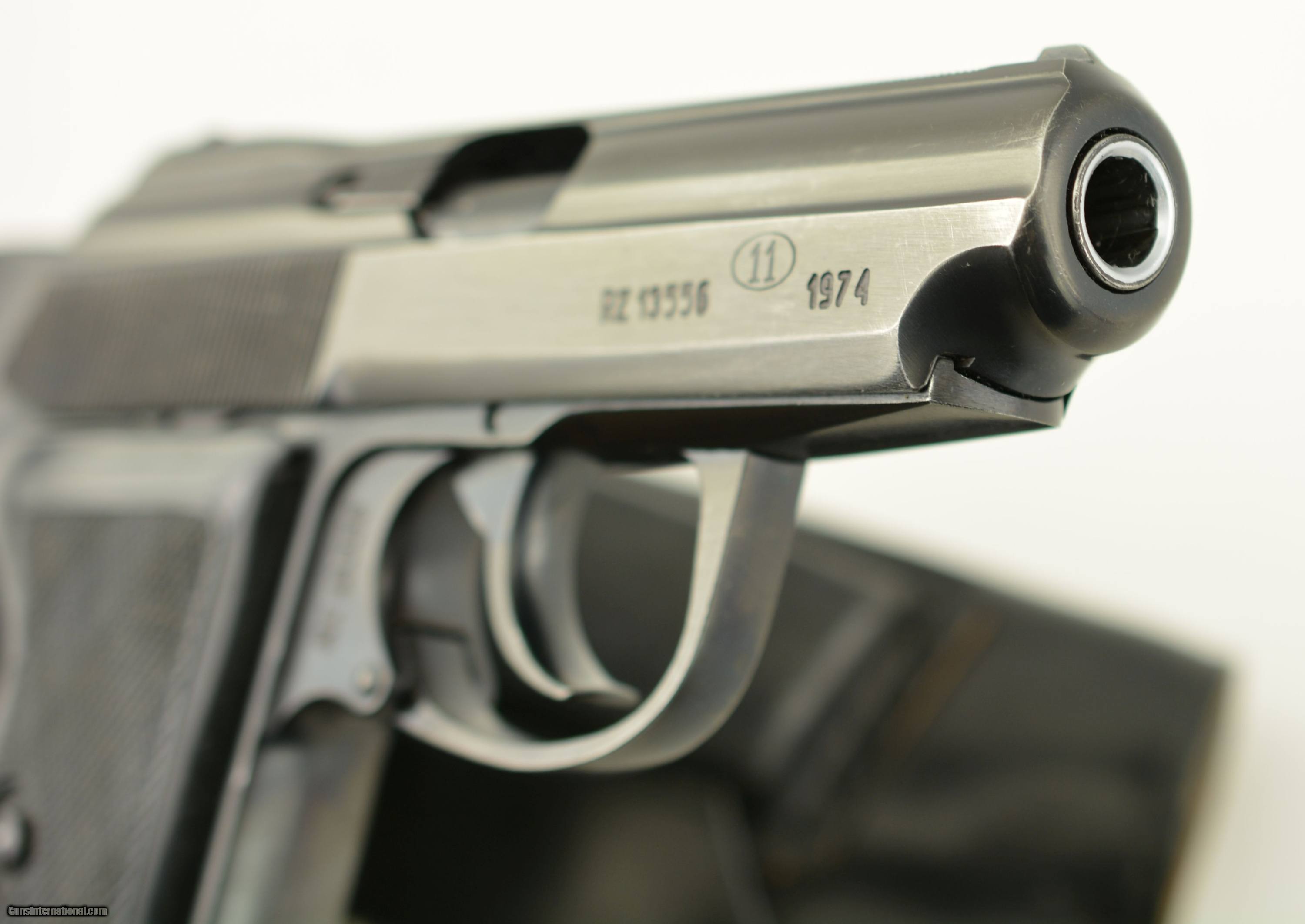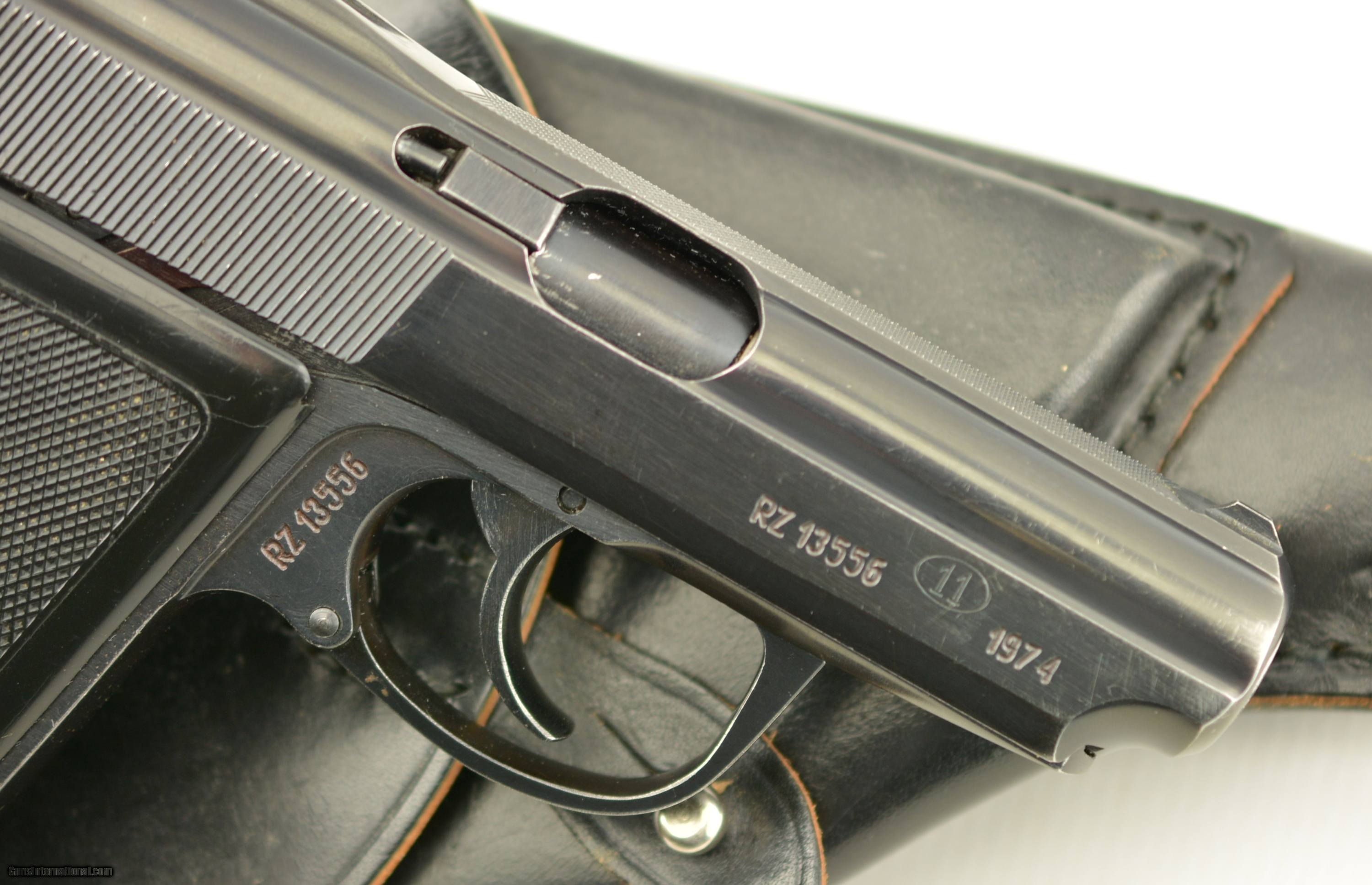 Description: Serial #RZ13556, 9mm Makarov, 3 1/4" barrel with an excellent, bright bore. This is a seldom encountered, “11" marked (Radom factory code), 1974 dated pistol, import marked on the left side of the slide. The metal retains 95-97% of the original blue finish with some very mild silvering along the high edges, and at the muzzle. The checkered black resin grips are in fine-excellent condition with minor handling marks and blemishes on either side. The pistol comes with two original finger-rest magazines, is housed in an original black leather holster with combination cleaning rod/screwdriver, and is an excellent example of a very well-made, Cold War era, Eastern Bloc service pistol. FFL SOLD Manufacturer: Radom Model: P-64 Serial Number: RZ13556 Caliber Info: 9mm Gauge Info: 9mm |