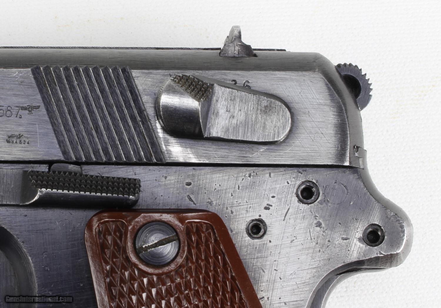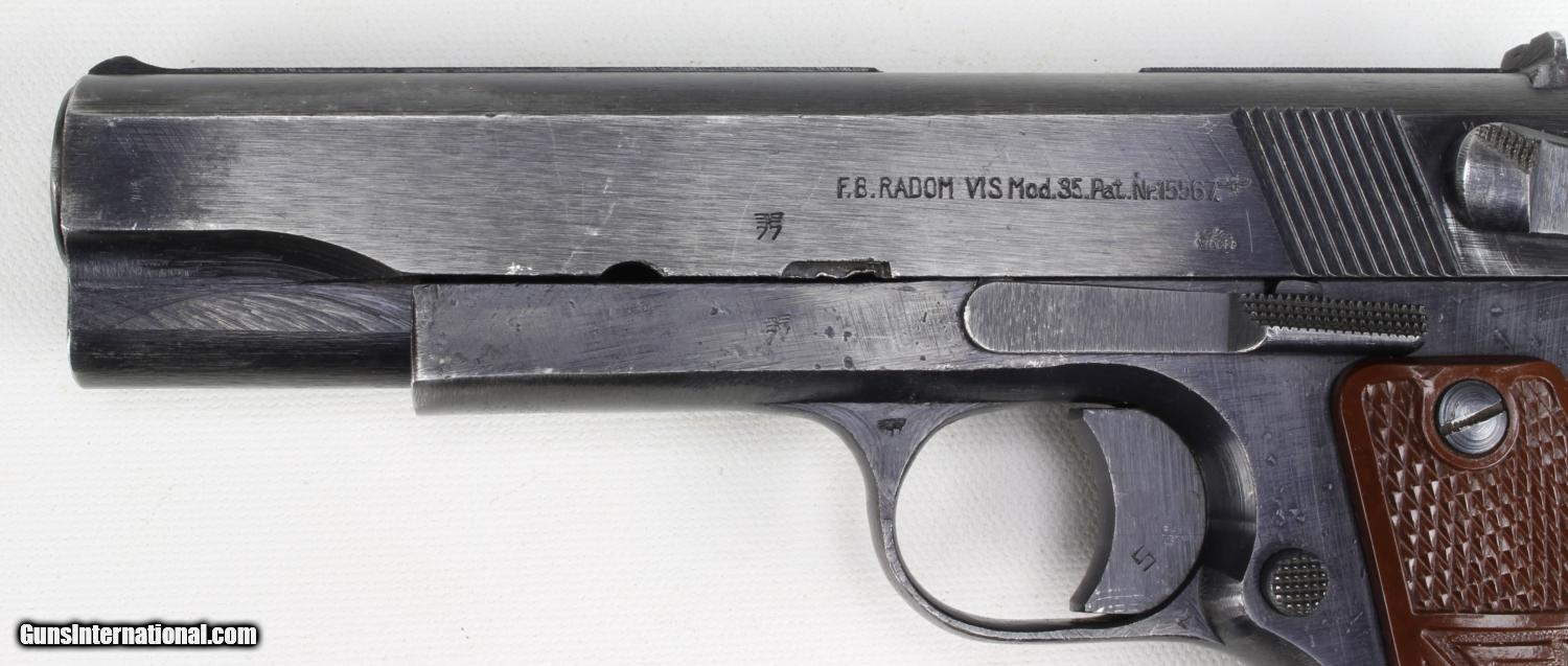 Description: This is a POLISH RADOM, VIS MODEL 35, 9MM Luger, 4 1/2" Barrel, Excellent Conditon, Late 1943-44 Production, Bright Bore, Two Mags, Holster. SN#E3498. All Numbers Match, Additional hJ0436, Stamped on slide, Probablly a unit Designation. Grips have small Cracks around screw heads, Repairable. WaA623, Nazi Proofs. Ships to Lower 48 for $30.00 SOLD Model: VIS Model 35 Serial Number: E3498 Caliber Info: 9MM Condition: VG Barrels: 4 1/2 |