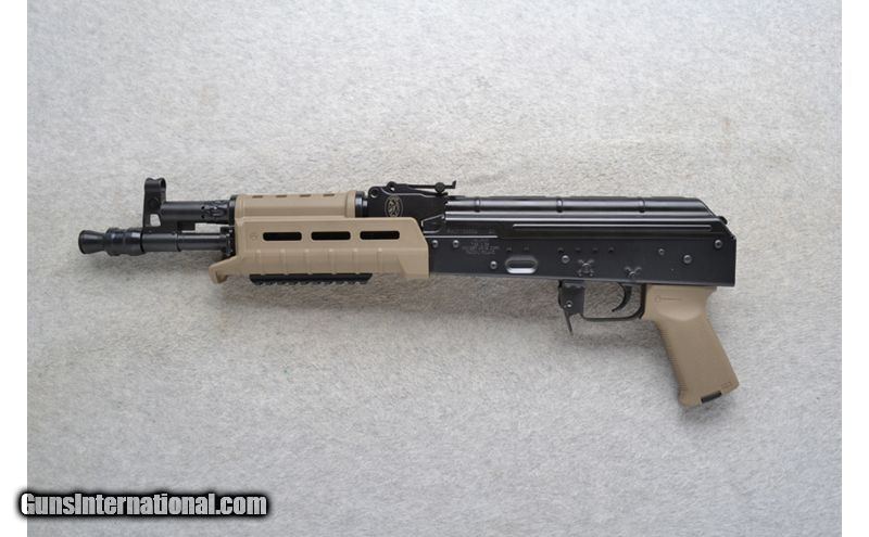 Description: This Radom Pioneer Arms Corp. Model Hellpup is a right hand semi-auto pistol in 7.62x39mm Cal. It has a 12 inch barrel plus a flash director. The front sight is an open top hooded adjustable post. The middle sight is a numbered sliding adjustable notch. It has a Magpul textured tan polymer full pistol grip. The forearm is a ribbed grip tan polymer with top and side vent holes. It has a right side and bottom accessory rail. 7.62X39mm SOLD Chambers: Semi-Auto 30 round magazine. Metal Condition: Excellent. Bore Condition: Excellent. Barrels: 12 inch barrel. Fore End: Ribbed grip top and side vented tan polymer. Weight: 6 Lb. 2 Oz. Sights: Open top hooded adjustable post front. Numbered sliding adjustable notch middle. Item Location: Richfield, WI |
