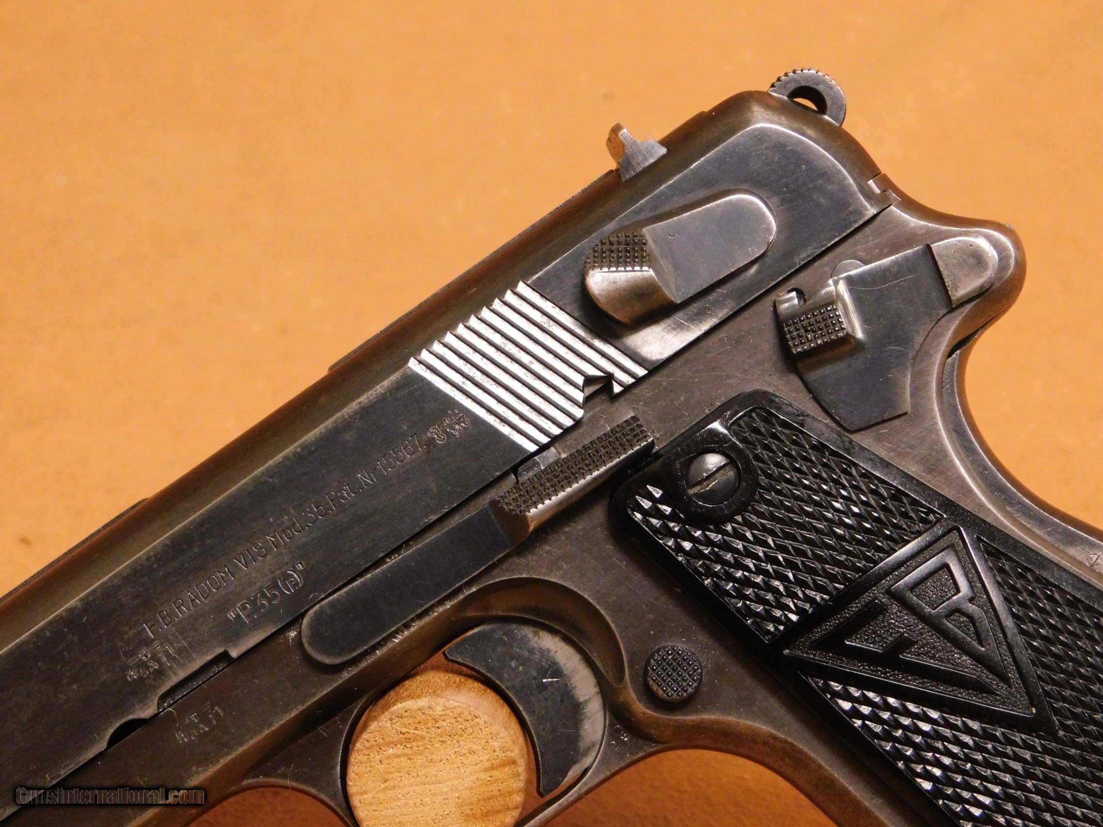 Description: This is a nice example of a completely original and matching Radom P.35 with an early, slotted frame. The high-polish blue on the pistol rates at about 90% with holster wear present along the high edges and some thinning on the straps. There is also minor freckling along the high edge of the slide on the left side. This gun comes equipped with excellent, original grips and one original magazine. All items are also available for sale in our brick & mortar store and are subject to prior sale. Think long, think wrong. We are always buying unique and collectible single firearms and collections. Please give us a call at 859-278-8370 to discuss what you have available. We also offer free appraisals and guarantee TOP DOLLAR PAID for your unique and collectible firearms. Payment On firearms, we typically only accept credit cards or money orders/cashier's checks.